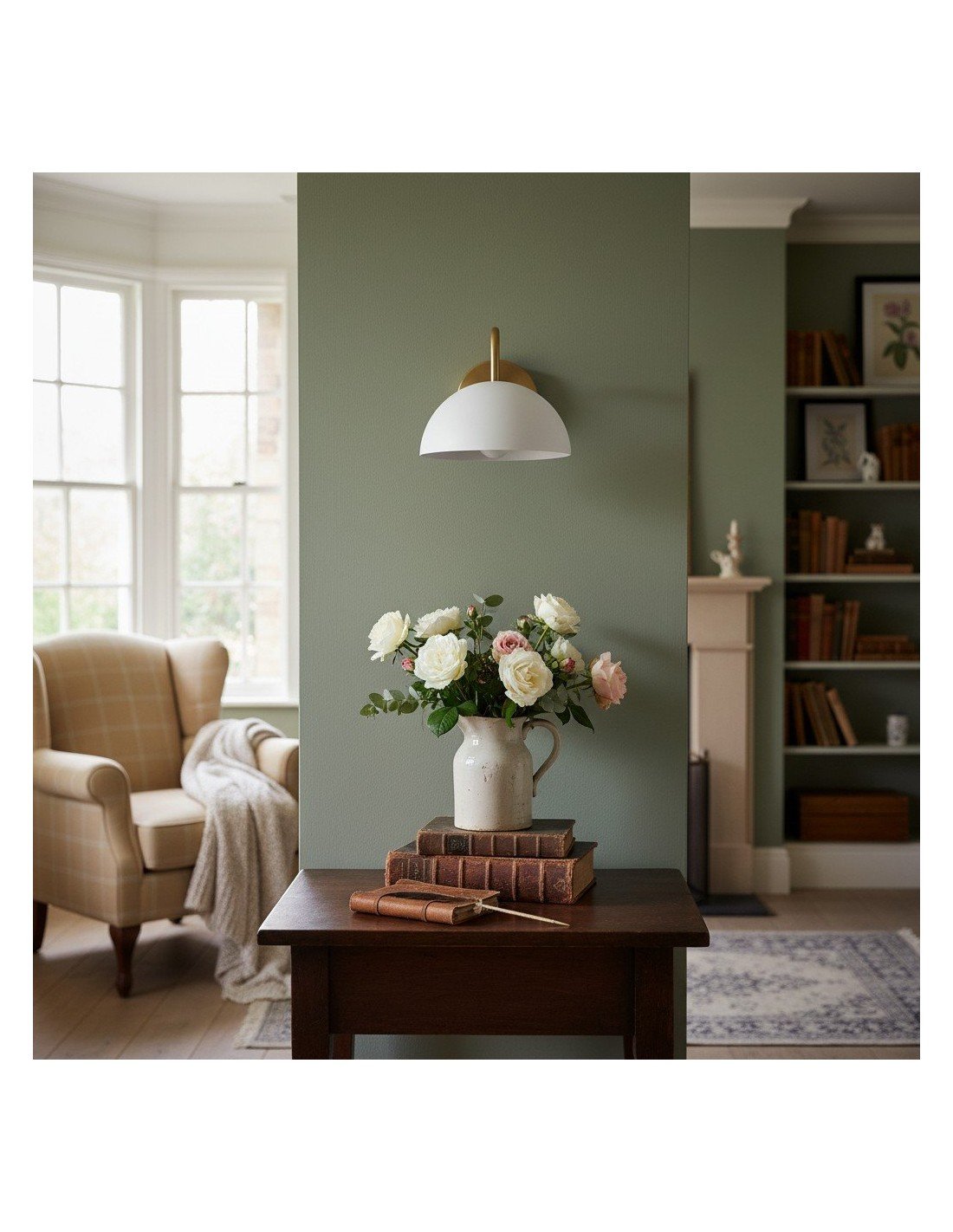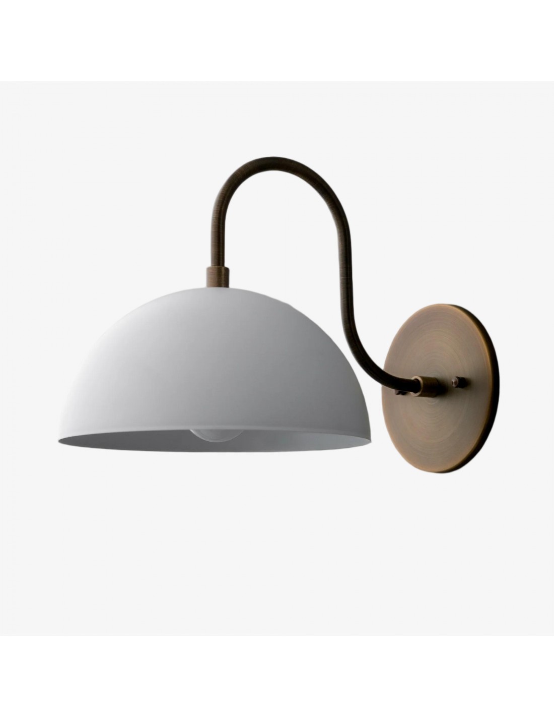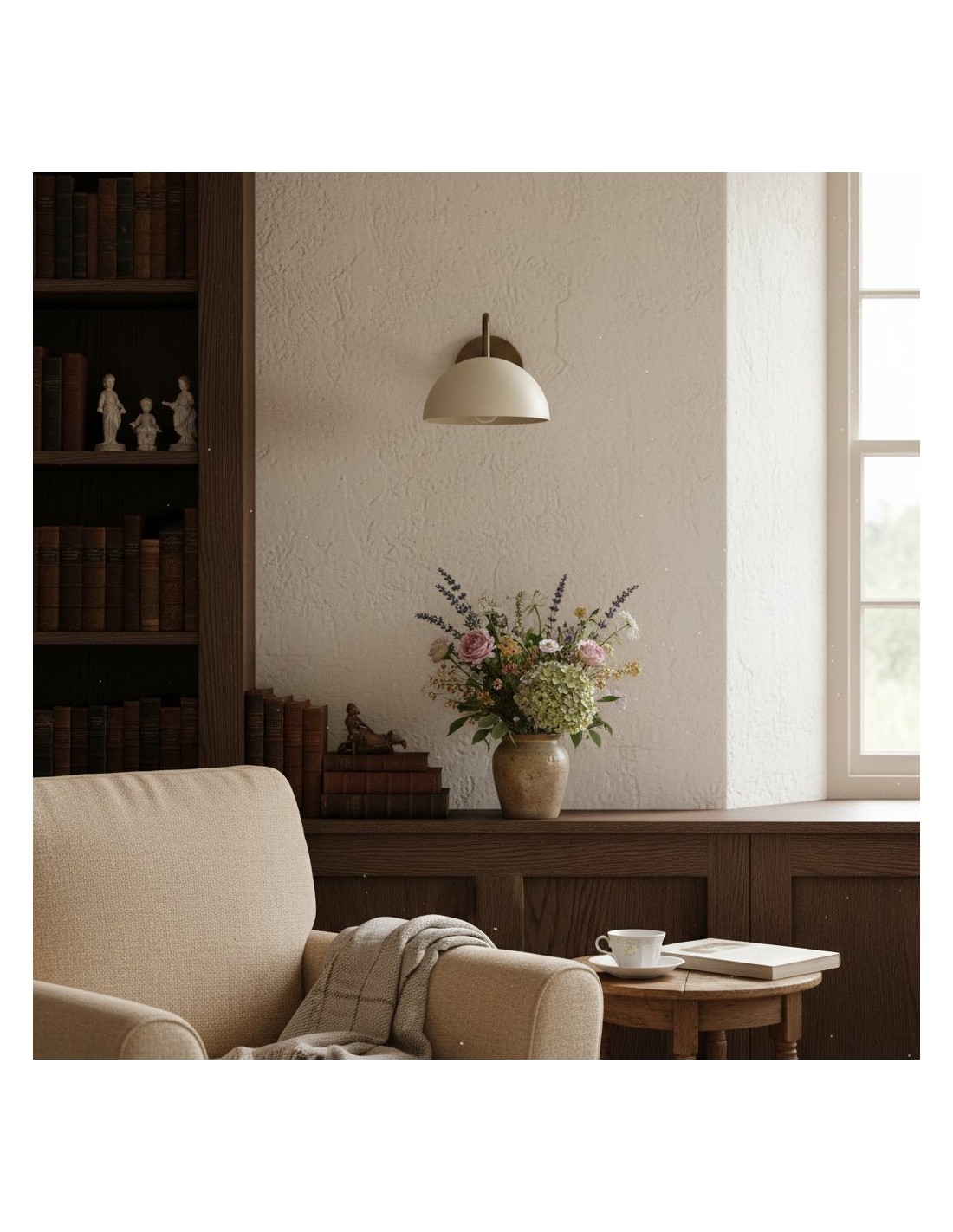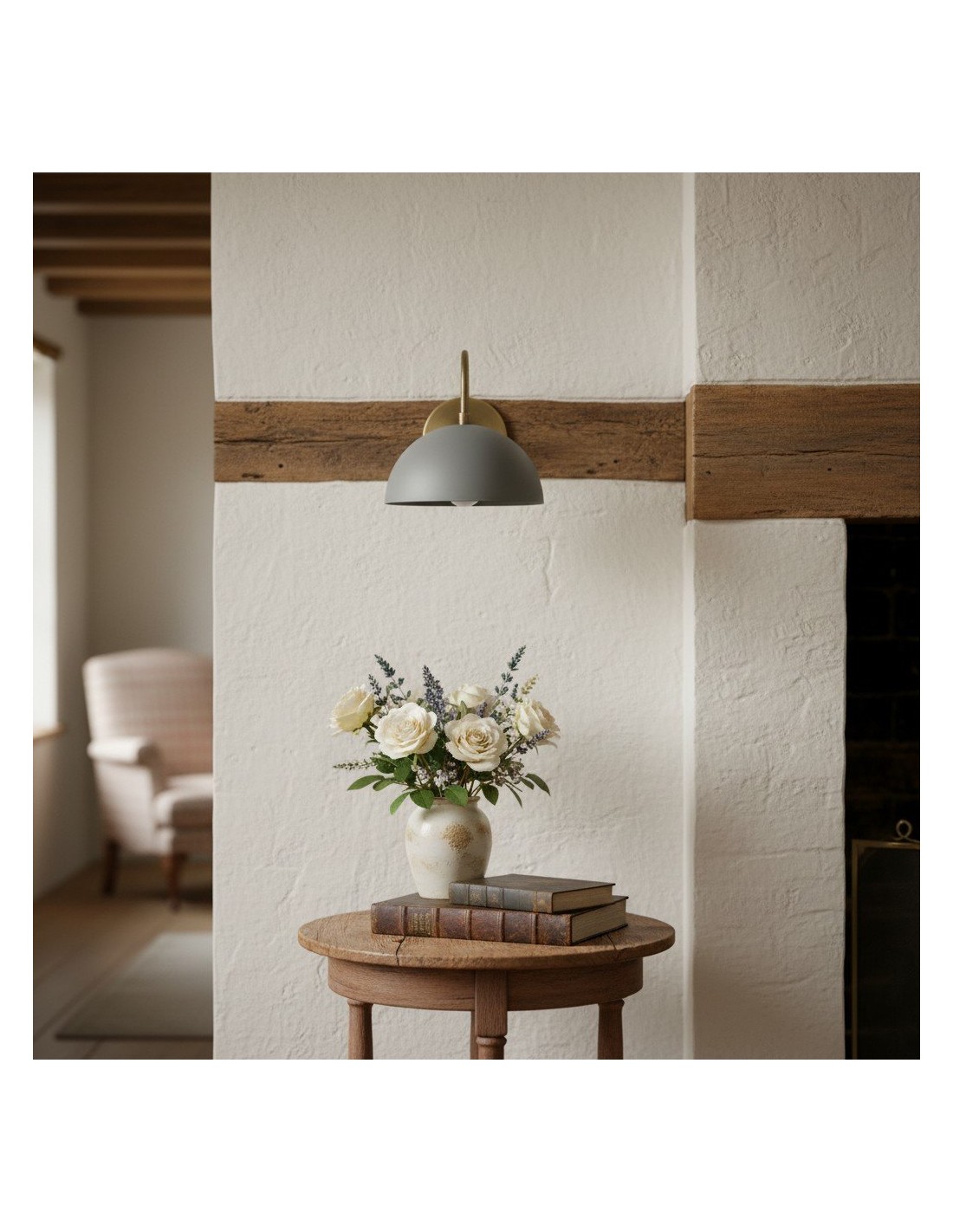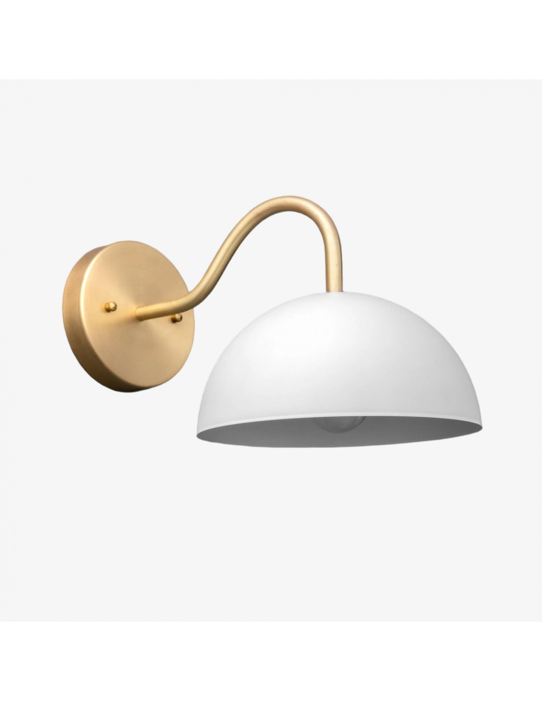 Aporta una elegancia discreta a tu decoración con este versátil aplique de pared. El brazo arqueado de latón sostiene una pantalla abovedada martillada que proyecta una luz sutil y concentrada hacia abajo. Ideal para superponer luces en pasillos, crear un ambiente acogedor junto a la cama o añadir profundidad a los espacios de estar. Una elegante mezcla de influencias modernas y vintage.