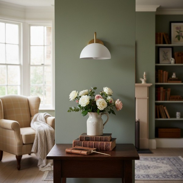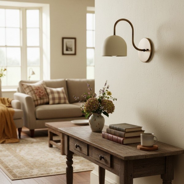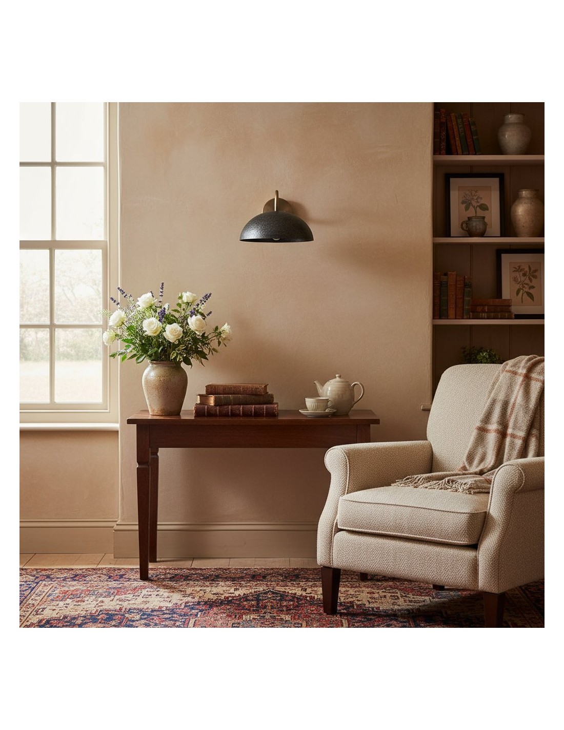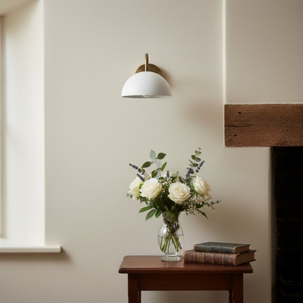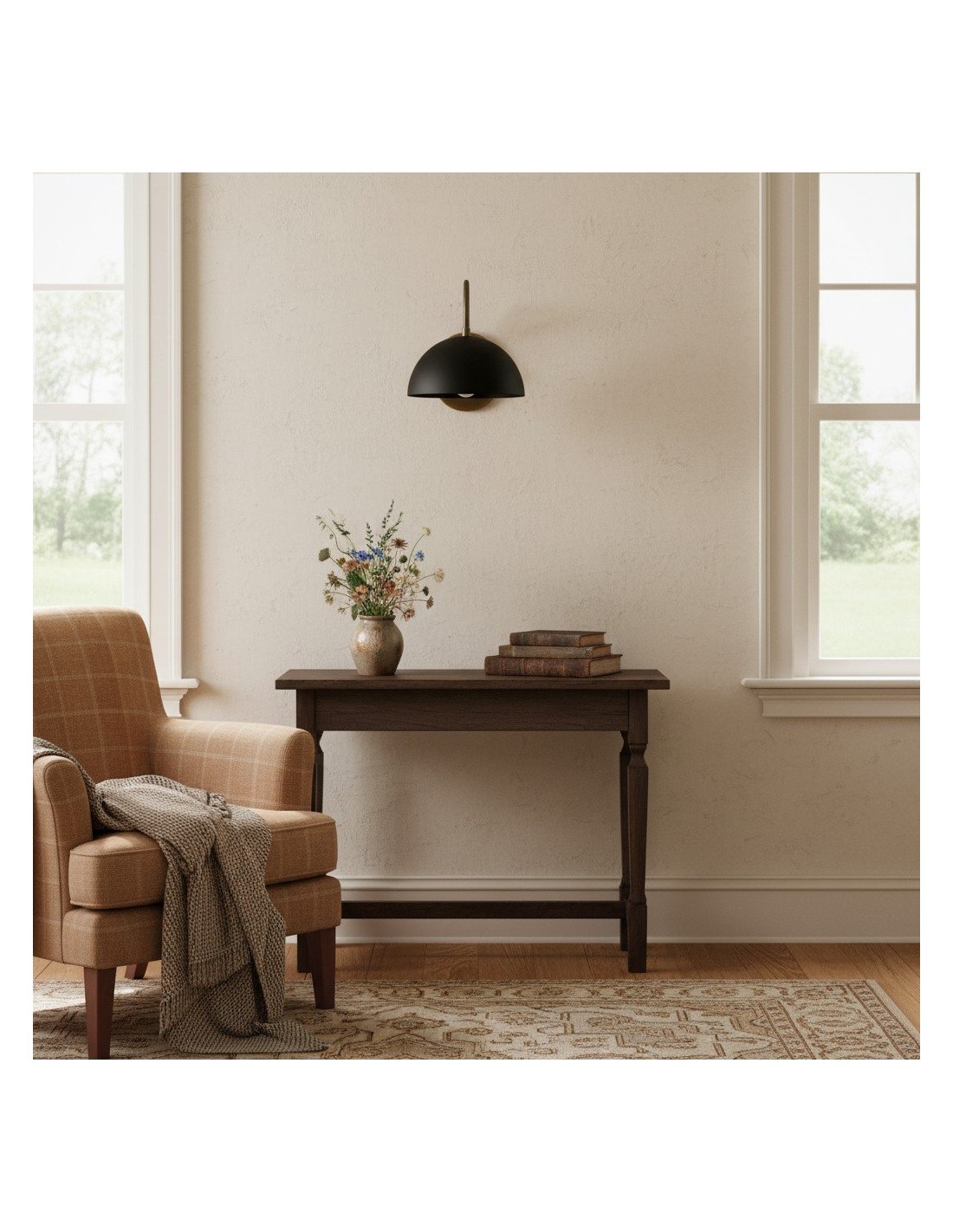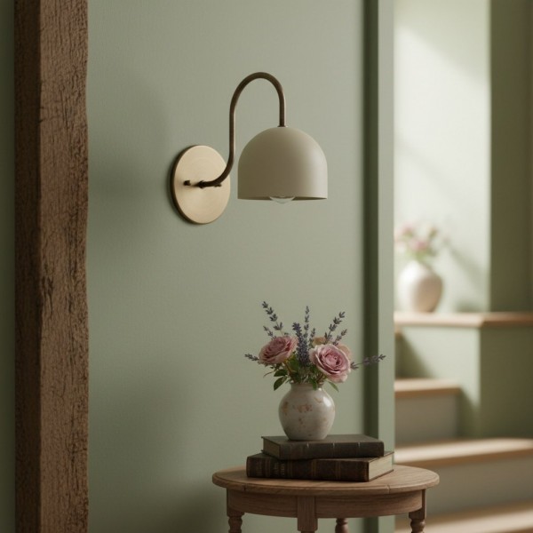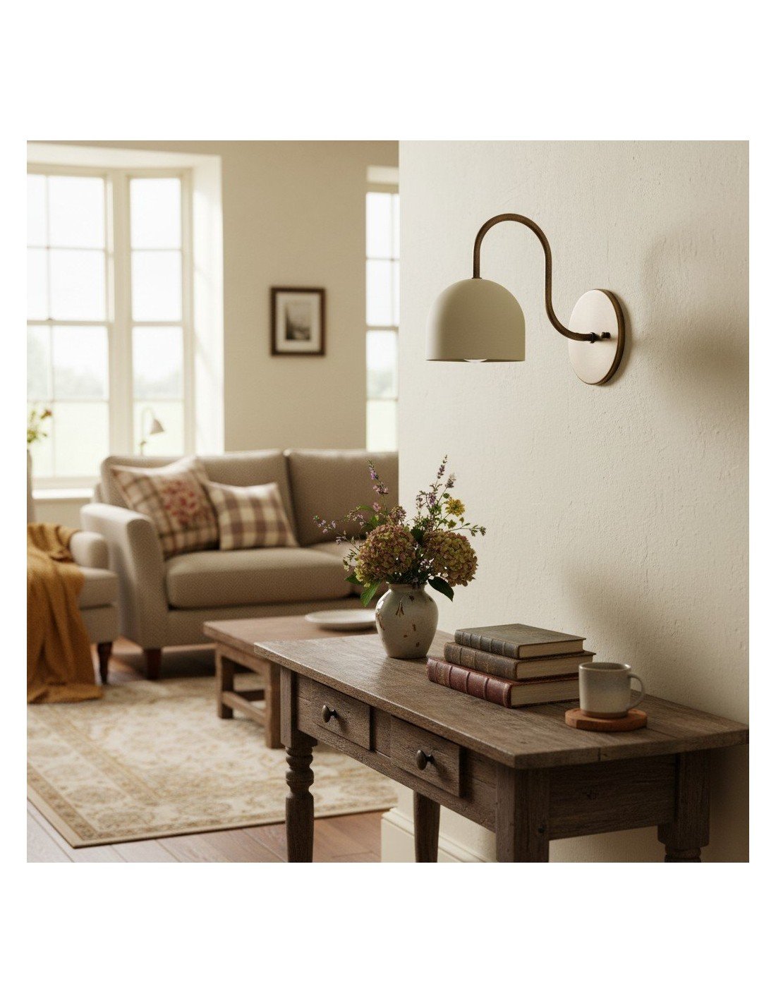 Aporta una elegancia discreta a tu decoración con este versátil aplique de pared. El brazo arqueado de latón sostiene una pantalla abovedada martillada que proyecta una luz sutil y concentrada hacia abajo. Ideal para superponer luces en pasillos, crear un ambiente acogedor junto a la cama o añadir profundidad a los espacios de estar. Una elegante mezcla de influencias modernas y vintage.