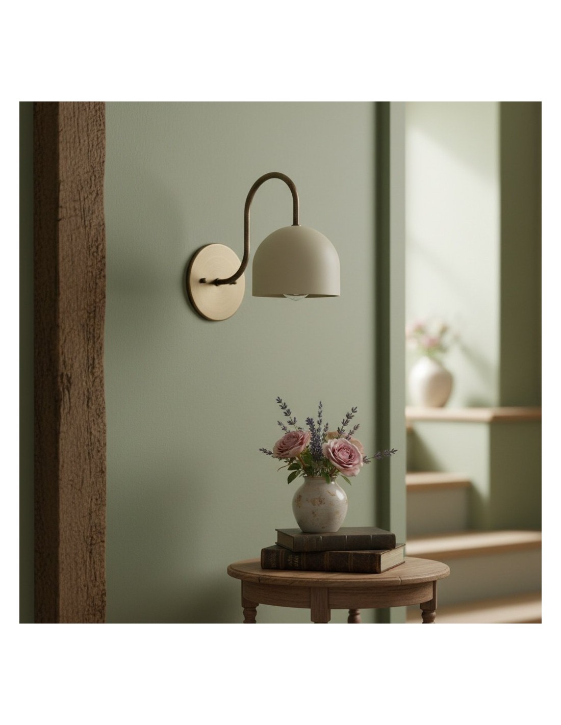 Aplique de pared industrial de metal Curva - Brazo curvo de latón - Luminaria de cúpula martillada KL1521