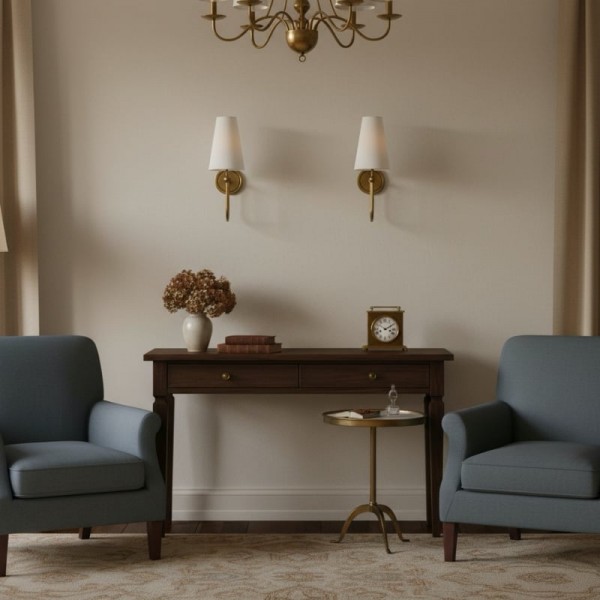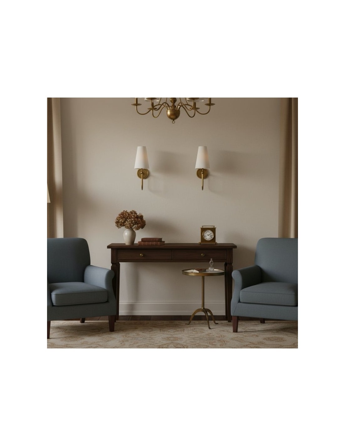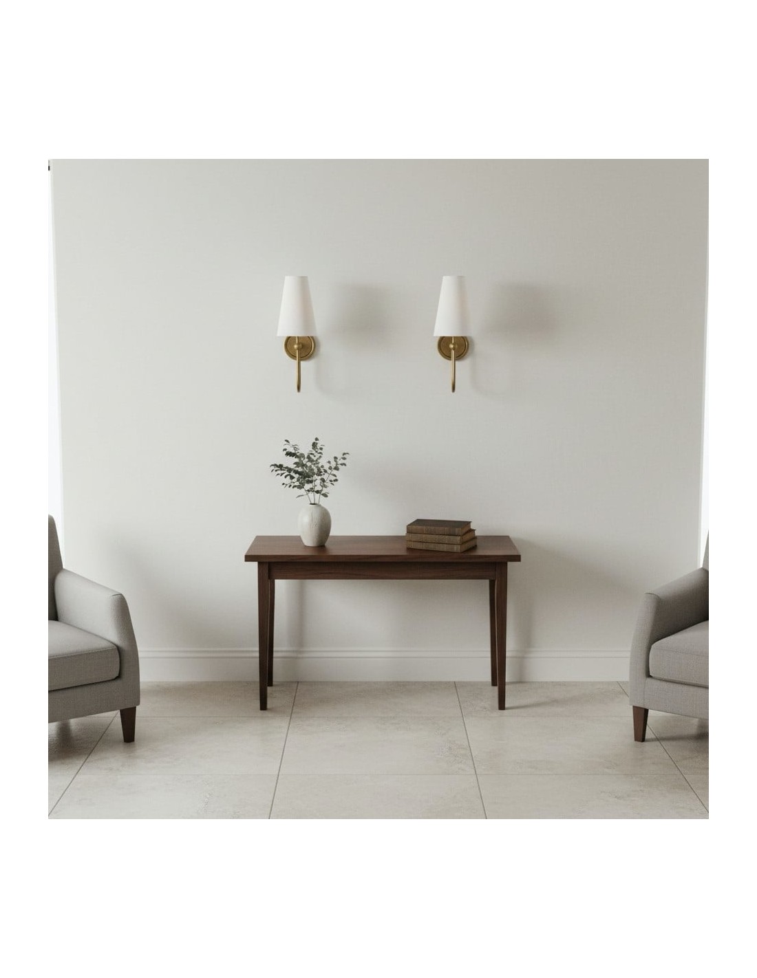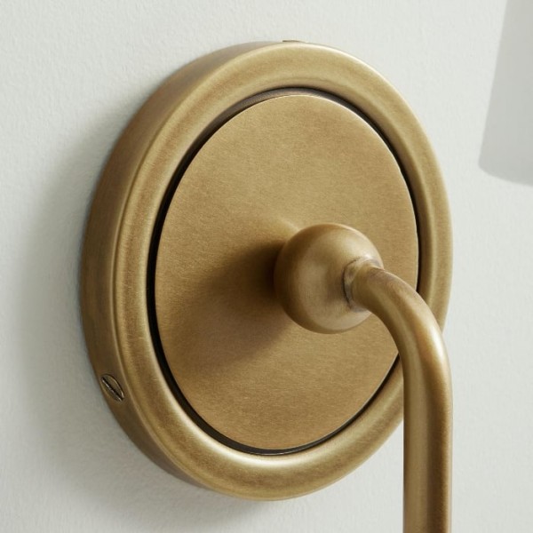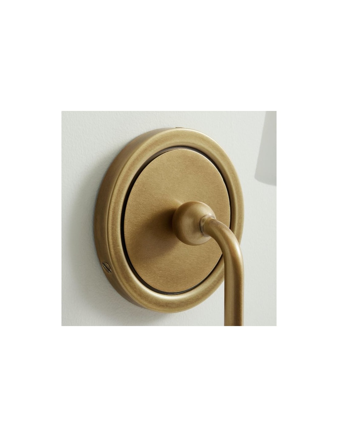 - Material: Hierro con acabado latón vintage / Pantalla de lino blanco