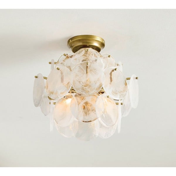 Lámpara de techo Sevra con disco de vidrio en cascada, redonda, de latón vintage, KL1354
