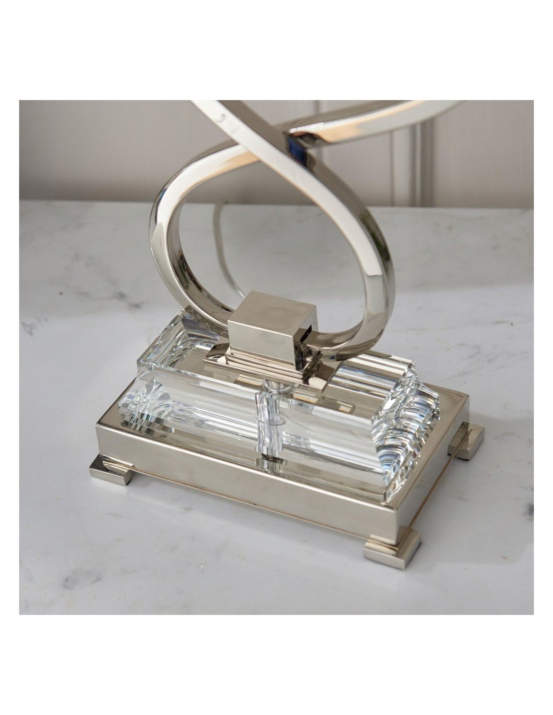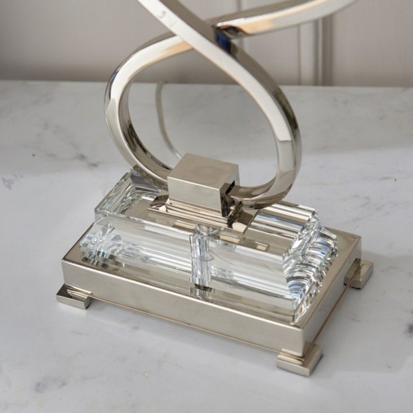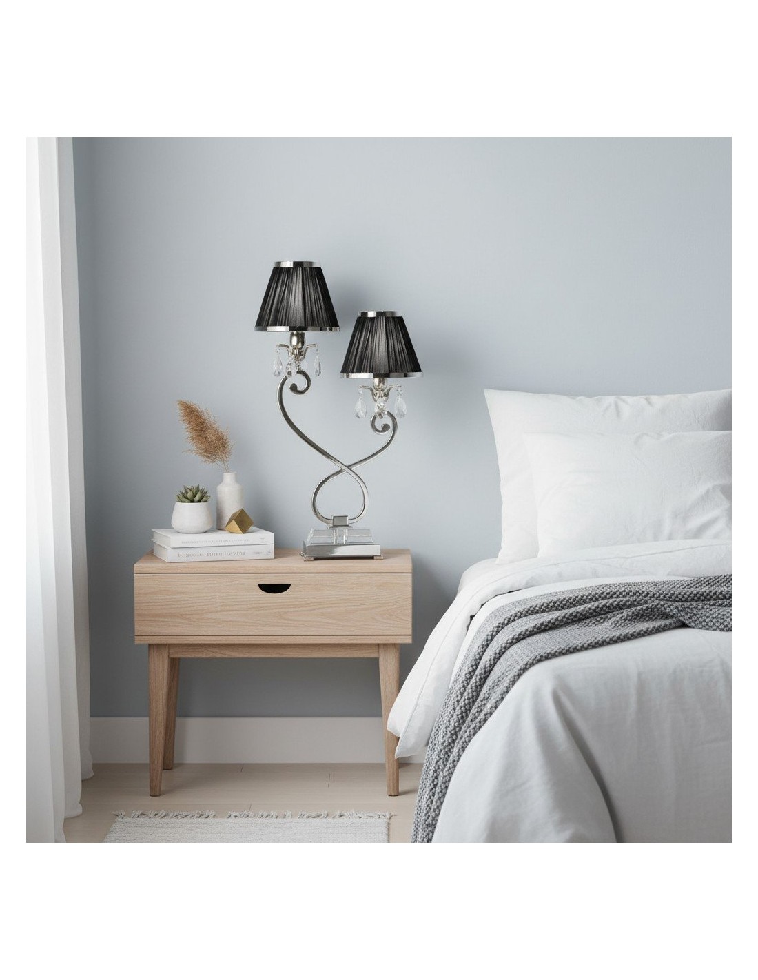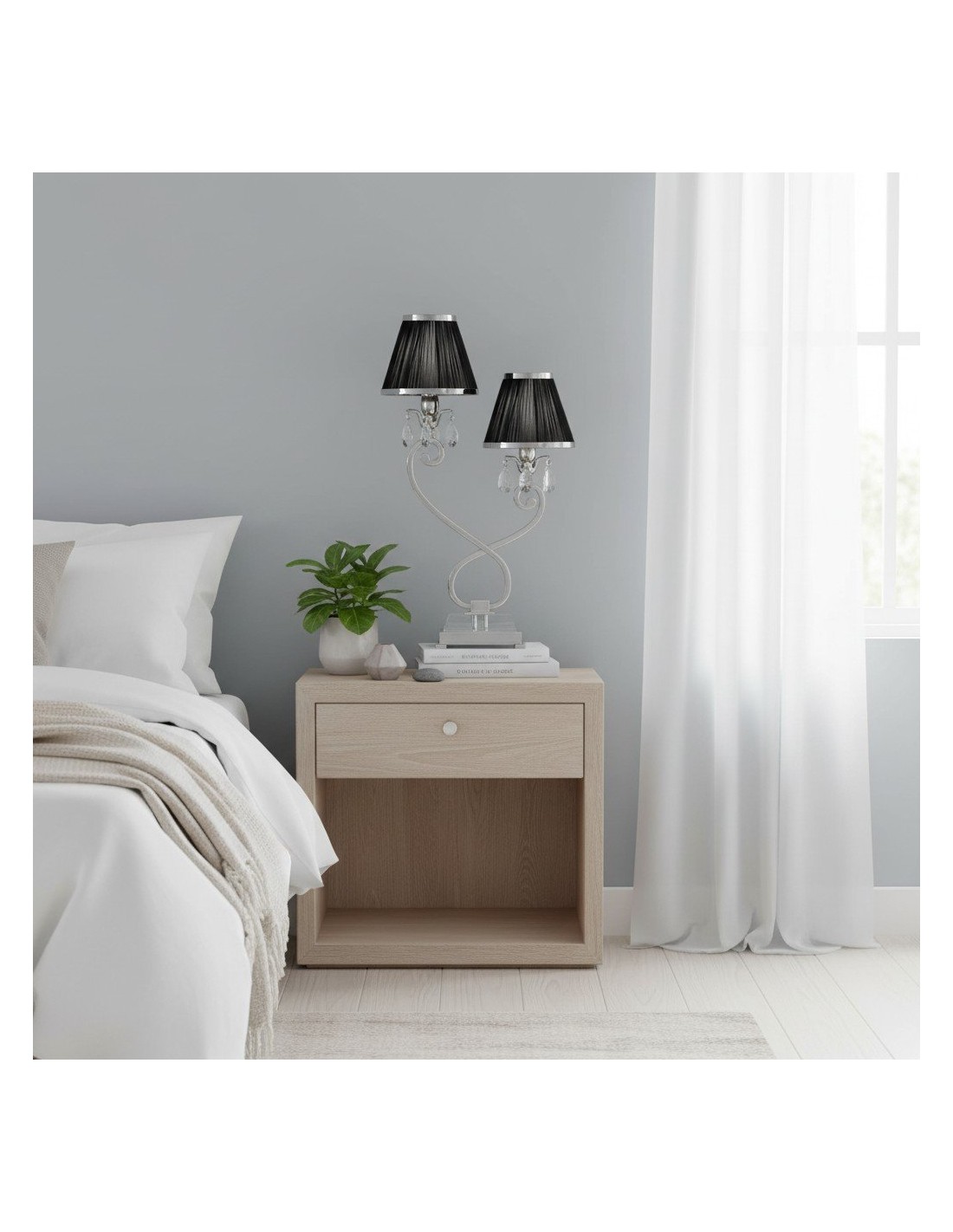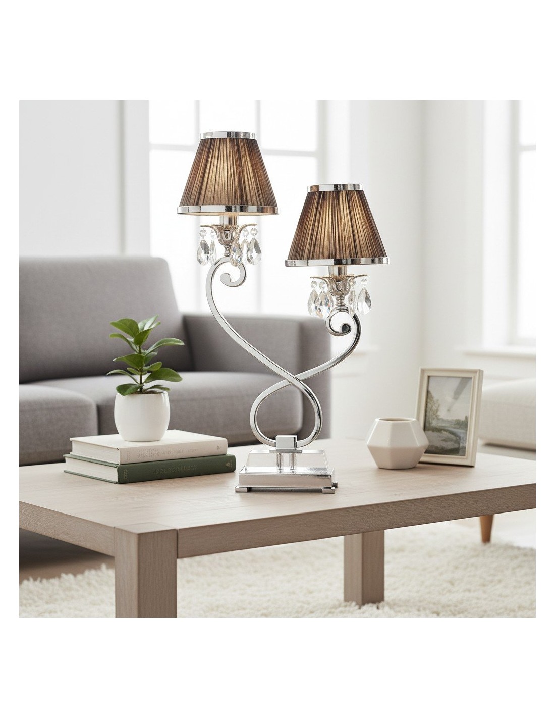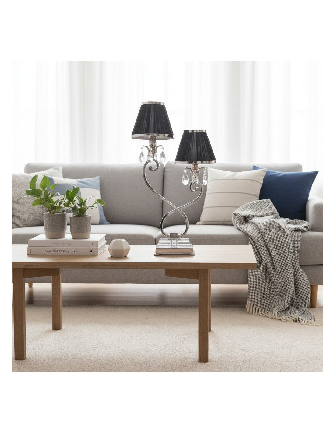 La lámpara de mesa doble combina dos pantallas con una base metálica estilizada para una iluminación ambiental equilibrada y una presencia escultural. Su silueta de dos brazos y su refinado acabado se adaptan a interiores modernos, de transición o clásicos; ideal para mesitas de noche, aparadores, escritorios de estudio o suites de hotel.