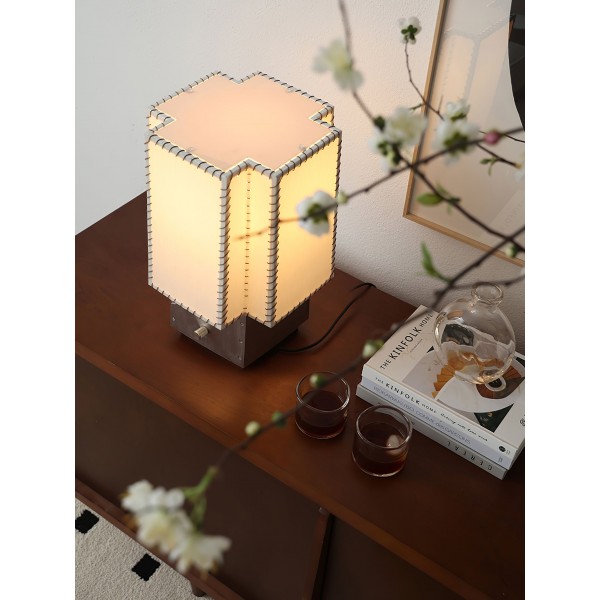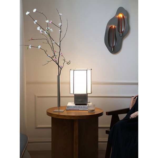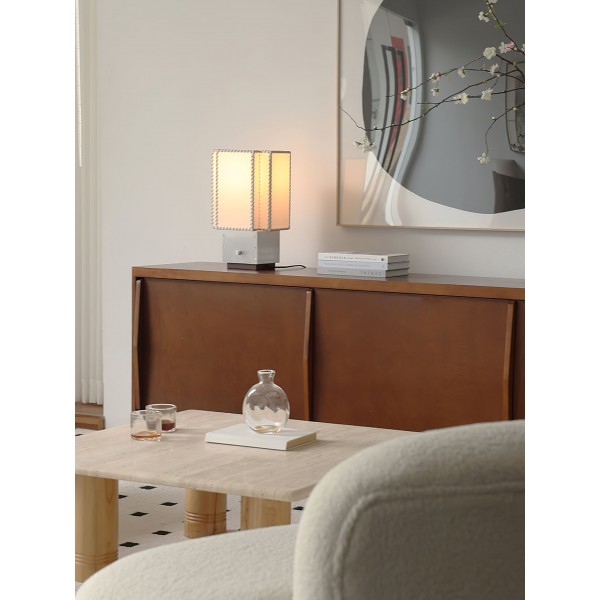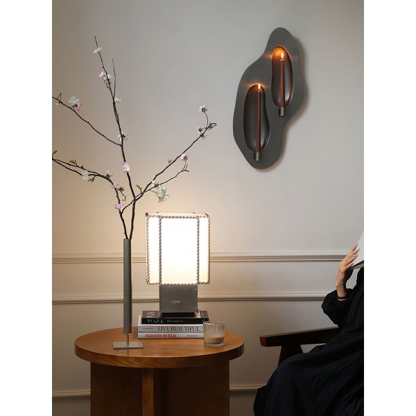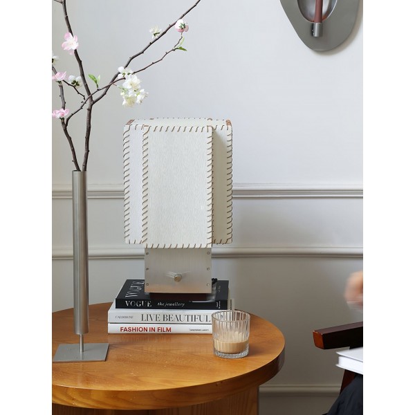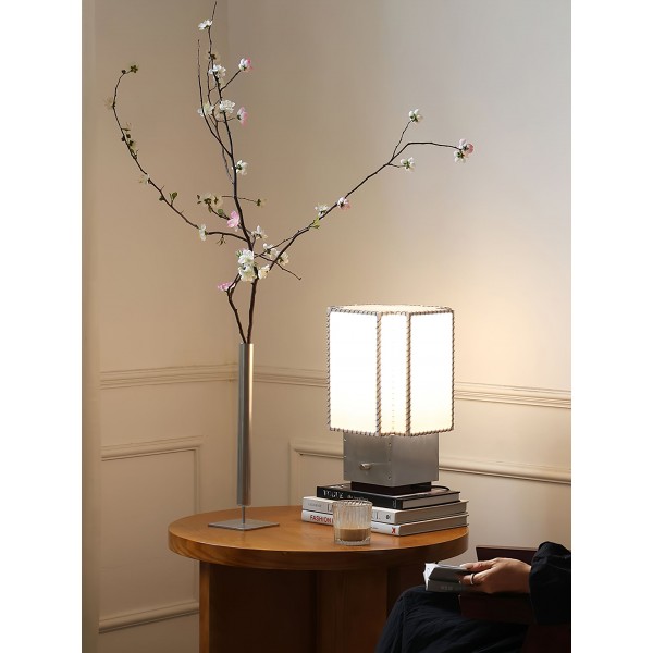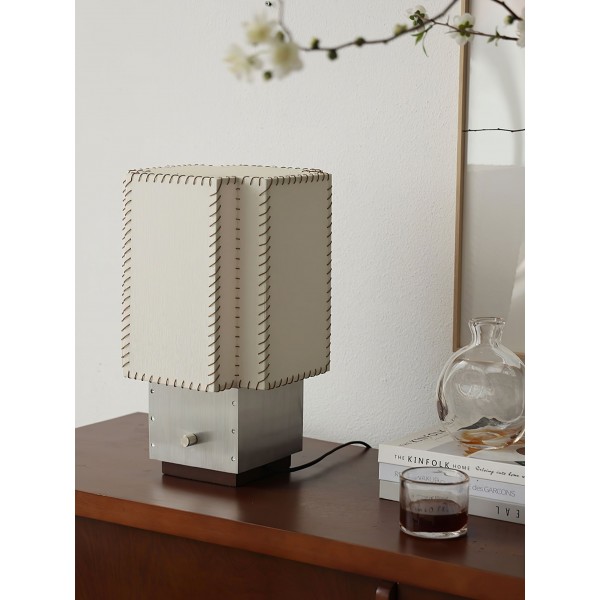 Una fusión perfecta de encanto artesanal y precisión industrial. La lámpara de mesa Tanu Stitch presenta una suave pantalla rectangular envuelta en tela texturizada, acentuada por distintivas costuras rojas cosidas a mano. Sobre una base de metal cepillado con un cálido toque de madera, aporta una combinación única de artesanía y minimalismo contemporáneo a tu espacio.