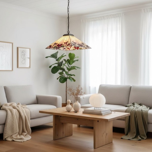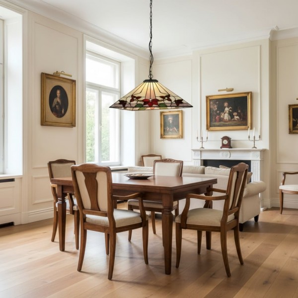 La lámpara colgante TF Camillo con estampado vintage presenta una pantalla de vitral artesanal con patrones detallados que proyecta una cálida luz ambiental. Perfecta para dormitorios, pasillos, salas de estar o comedores, combina el encanto vintage con la elegancia artística.