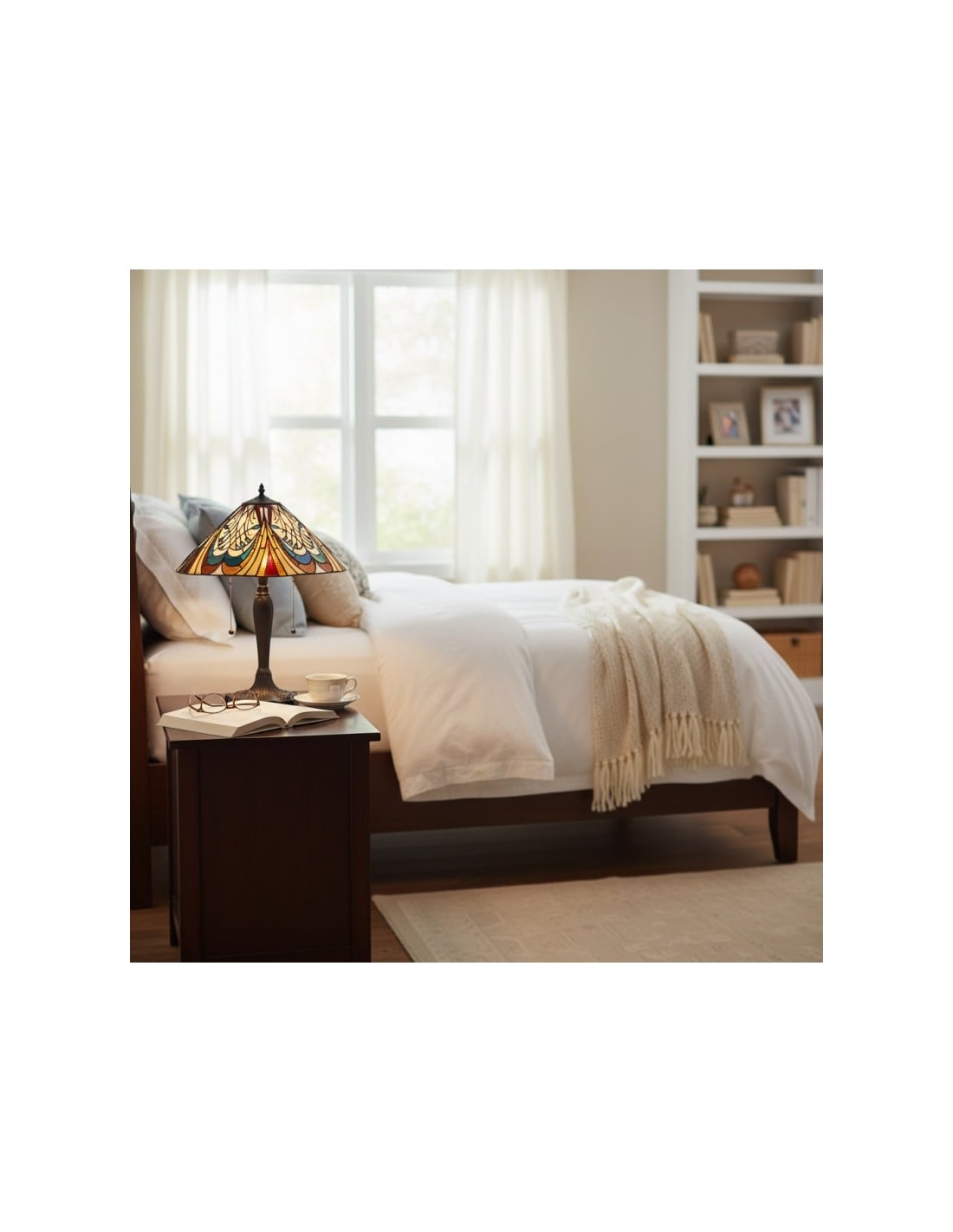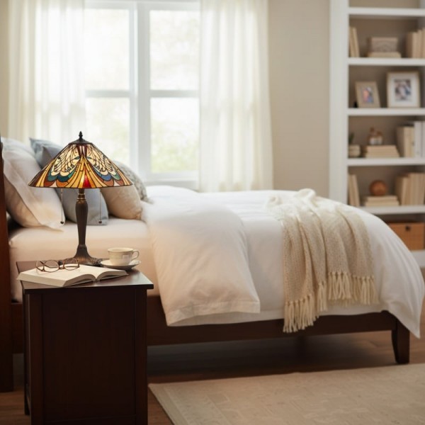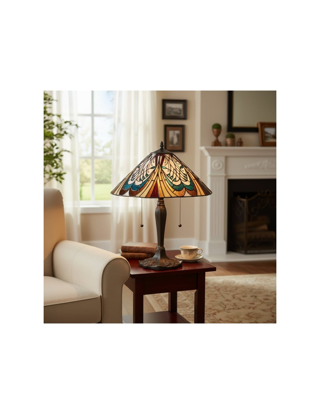 Esta lámpara cuenta con una pantalla de vitral artesanal adornada con patrones Art Nouveau en espiral que crean una luz cálida y colorida. Su diseño atemporal añade un toque de encanto artístico a salas de estar, dormitorios, comedores o espacios de trabajo, convirtiéndola en una hermosa lámpara decorativa para cualquier hogar.