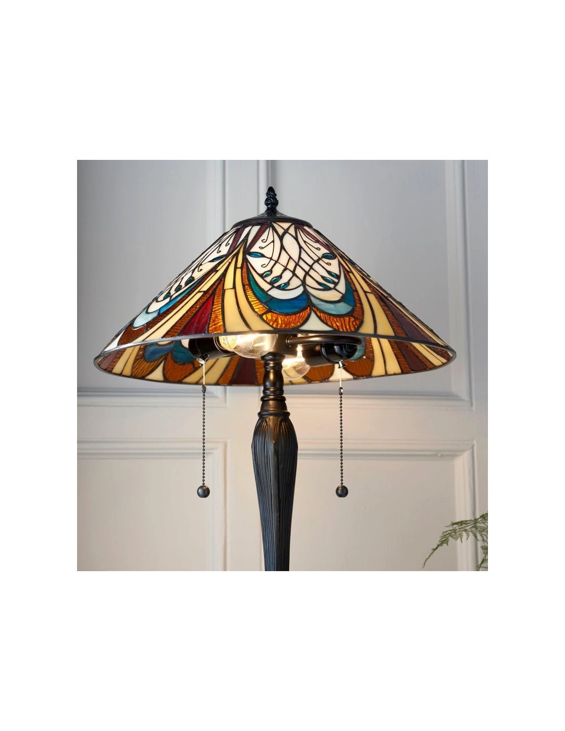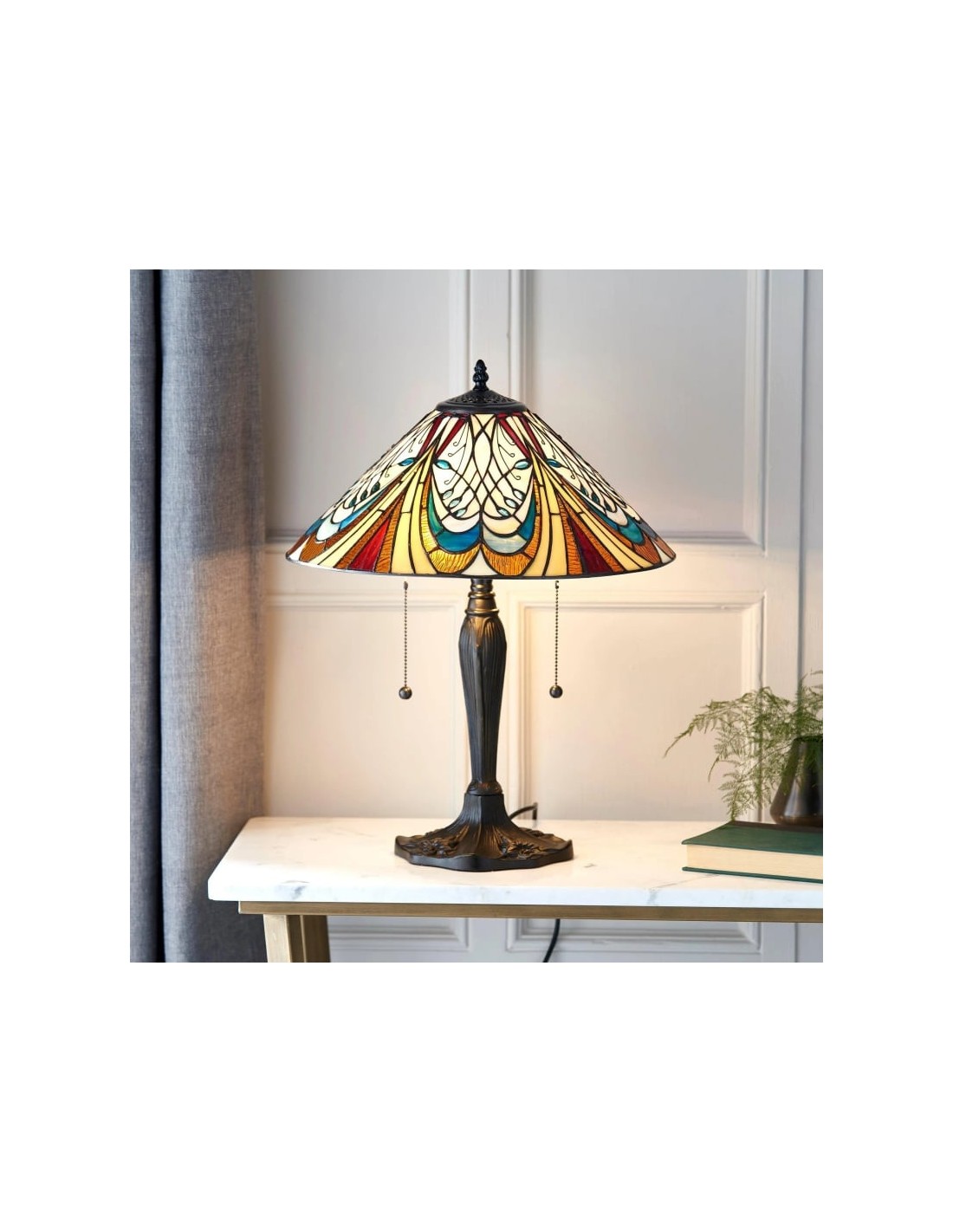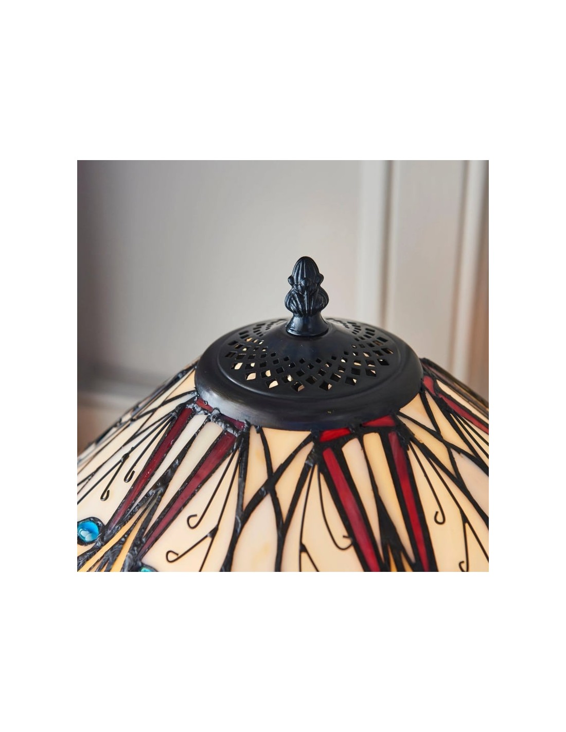 Esta lámpara cuenta con una pantalla de vitral artesanal adornada con patrones Art Nouveau en espiral que crean una luz cálida y colorida. Su diseño atemporal añade un toque de encanto artístico a salas de estar, dormitorios, comedores o espacios de trabajo, convirtiéndola en una hermosa lámpara decorativa para cualquier hogar.