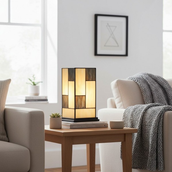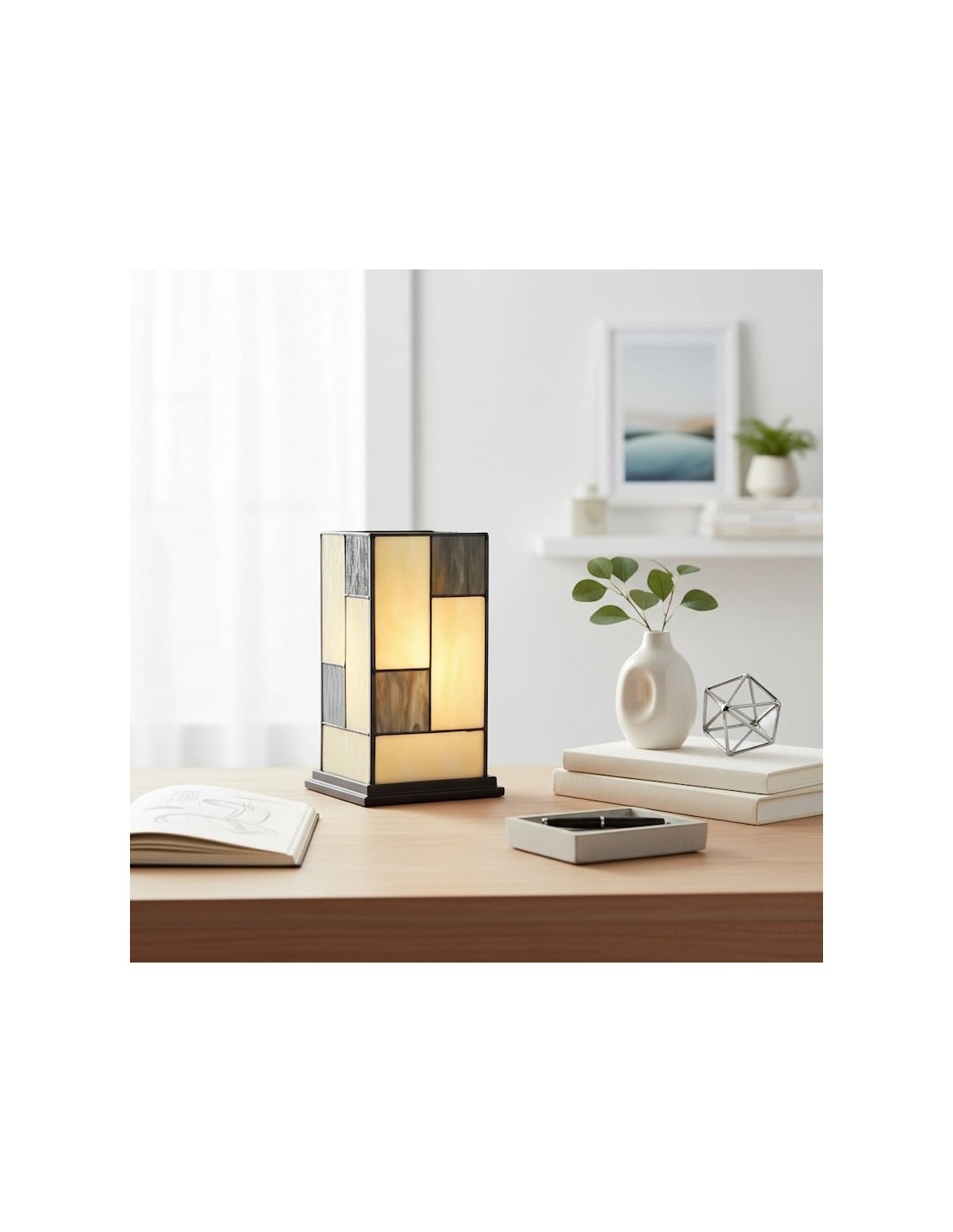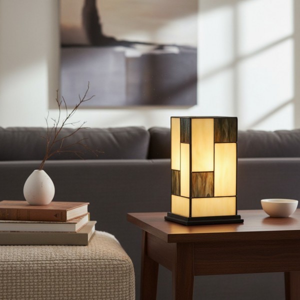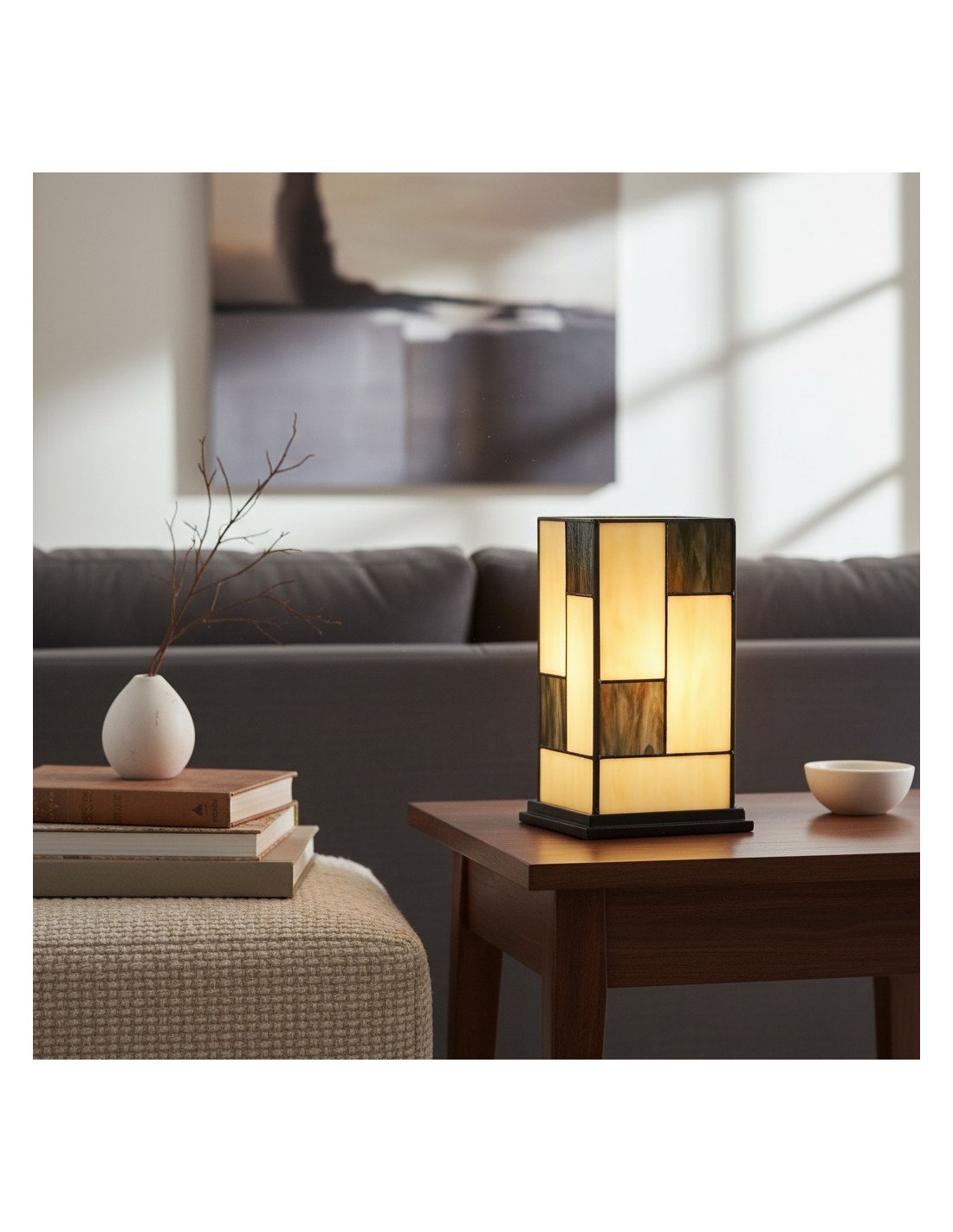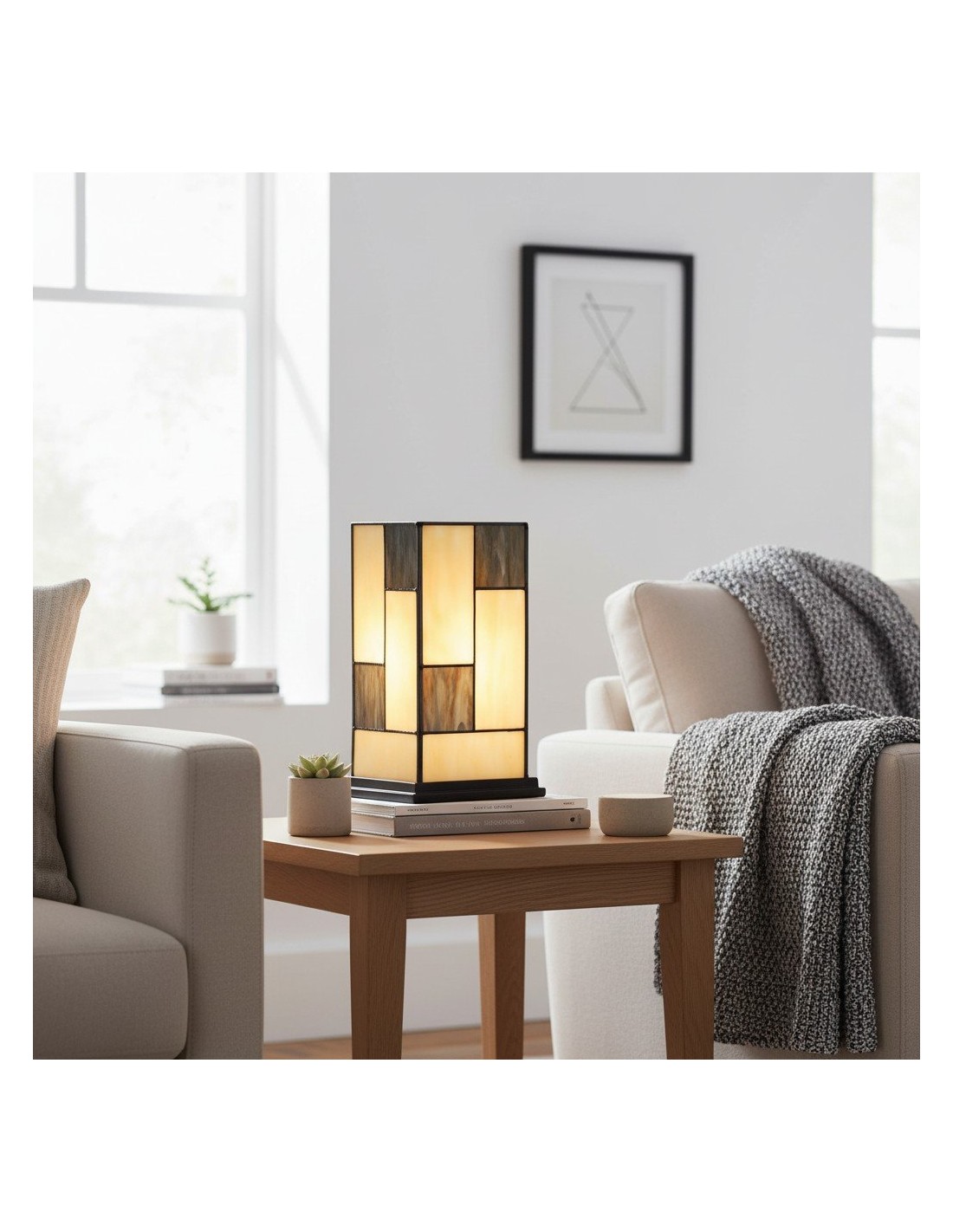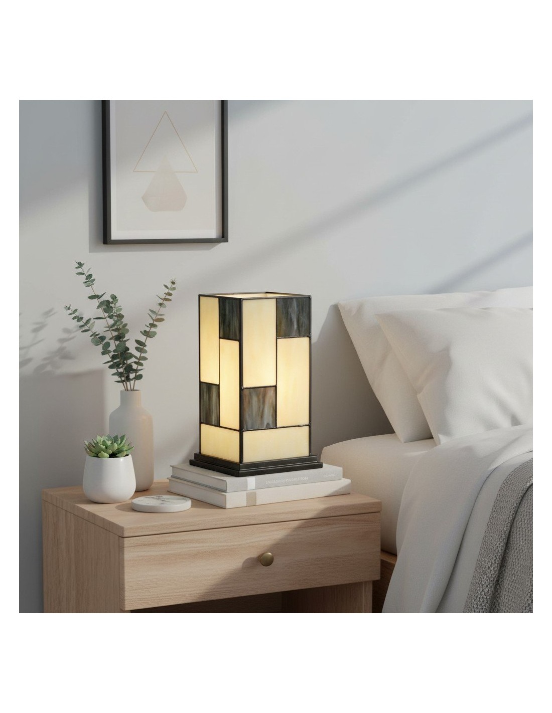 Con una hermosa pantalla cuadrada invertida, esta clásica lámpara de mesa cuadrada de vitral para sala de estar es una obra maestra de artesanía. Cada pieza de vitral se selecciona cuidadosamente y se ensambla formando un llamativo patrón geométrico, ideal para una consola de entrada, una mesa auxiliar de sala de estar o un acogedor rincón de lectura.