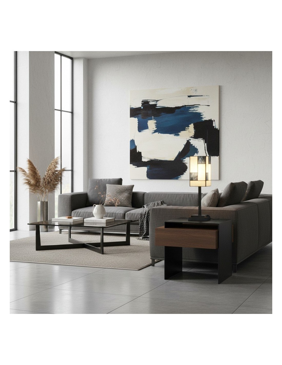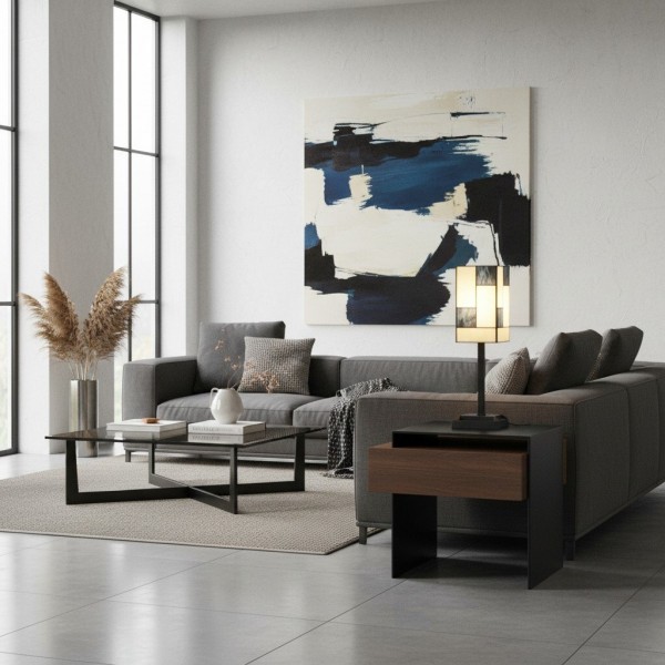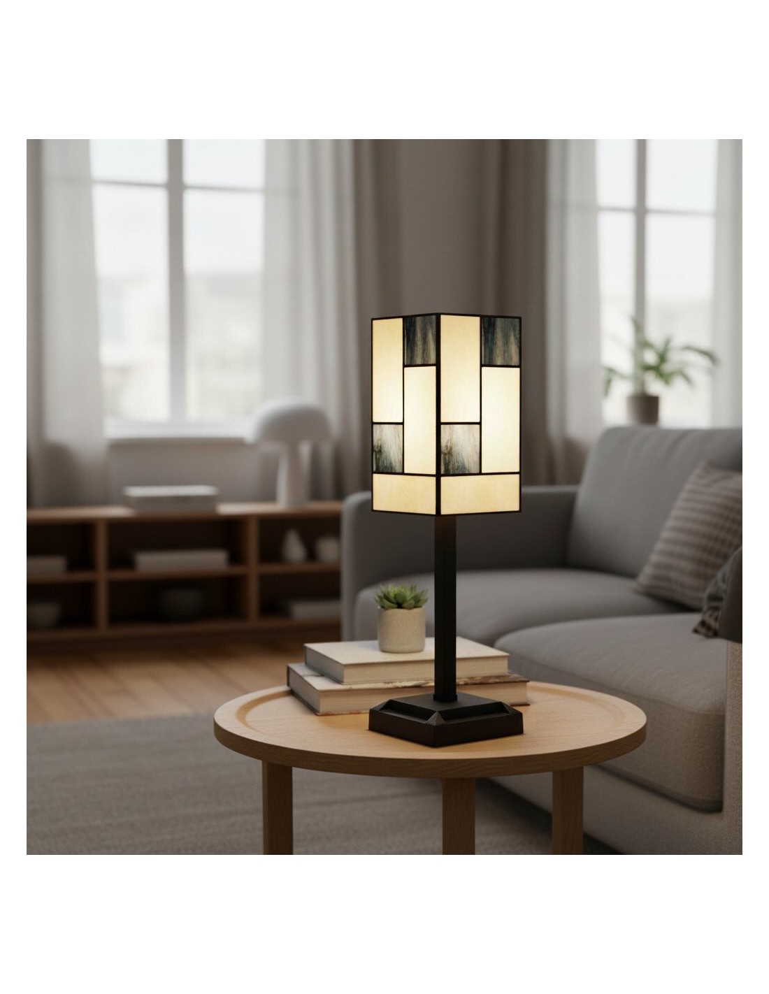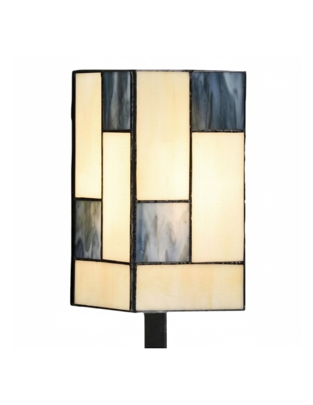 Ilumina tu espacio con la elegancia atemporal de esta lámpara de mesa de vitral. Esta lámpara de escritorio cuenta con una impresionante pantalla artesanal hecha con piezas individuales de vitral. Su diseño geométrico, en una paleta de tonos cálidos y acogedores, crea un cautivador mosaico de luz al iluminarse. Su pequeño tamaño la convierte en el complemento perfecto para una mesita de noche o un escritorio de estudio en tu hogar.