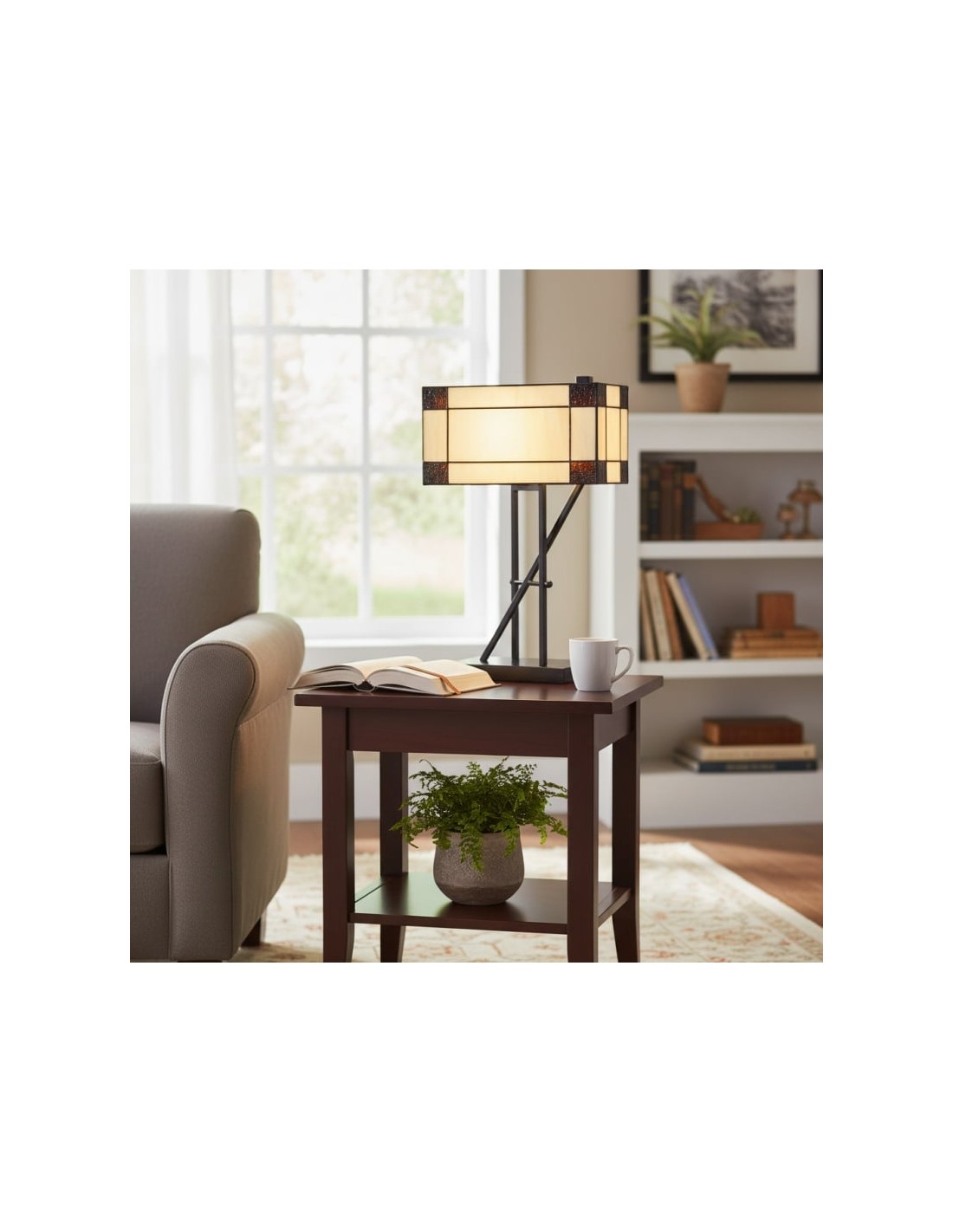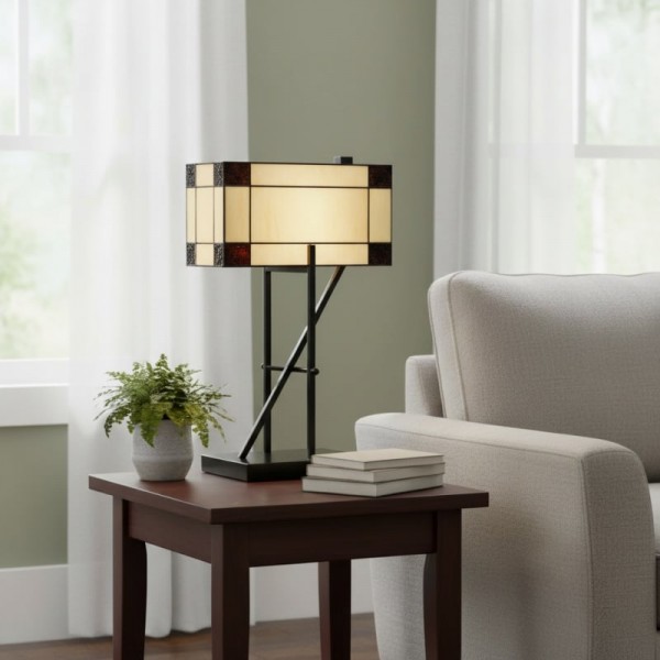 La lámpara de mesa TF Manchester luce una clásica pantalla de vitral que crea una luz cálida y acogedora. Su diseño decorativo tradicional realza salas de estar, dormitorios y rincones de lectura, ofreciendo encanto visual y una práctica iluminación ambiental para el día a día.
