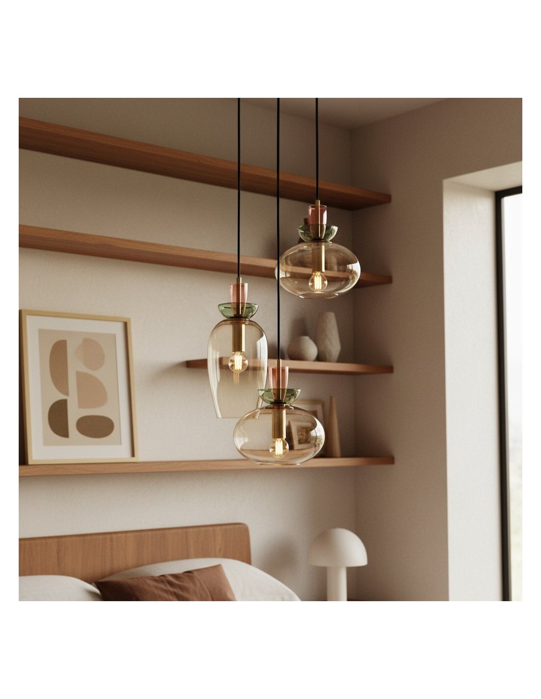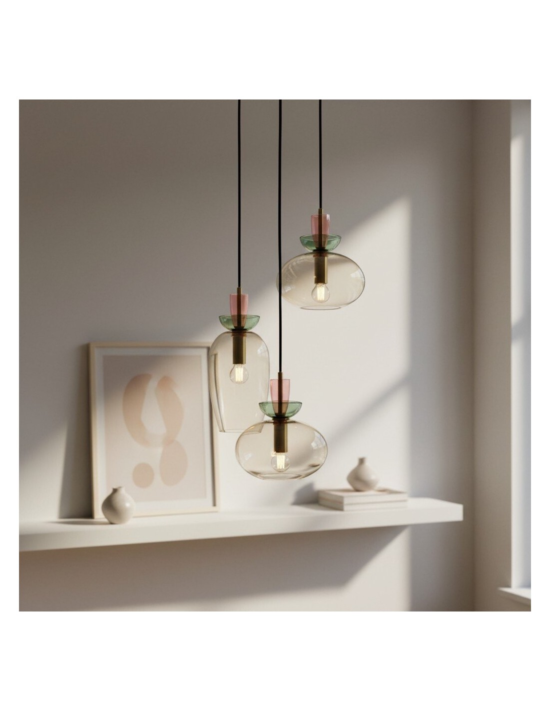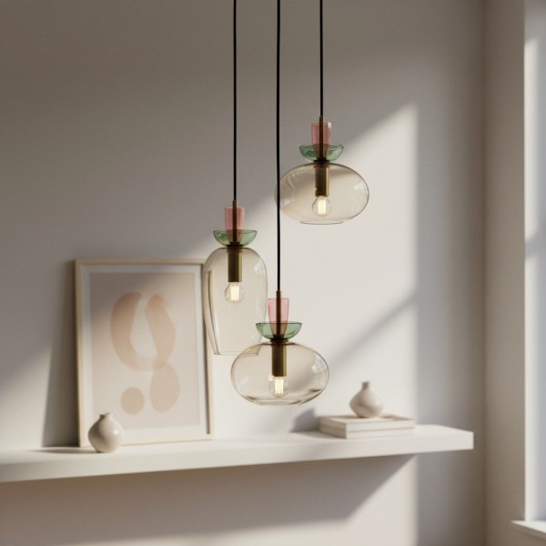 Esta exquisita lámpara colgante presenta una colorida pantalla esférica que se complementa a la perfección con elegantes detalles metálicos, creando un aspecto lujoso y sobrio. Con líneas limpias y una forma minimalista, la Tintora es una pieza central versátil que se adapta a islas de cocina, comedores o salas de estar.