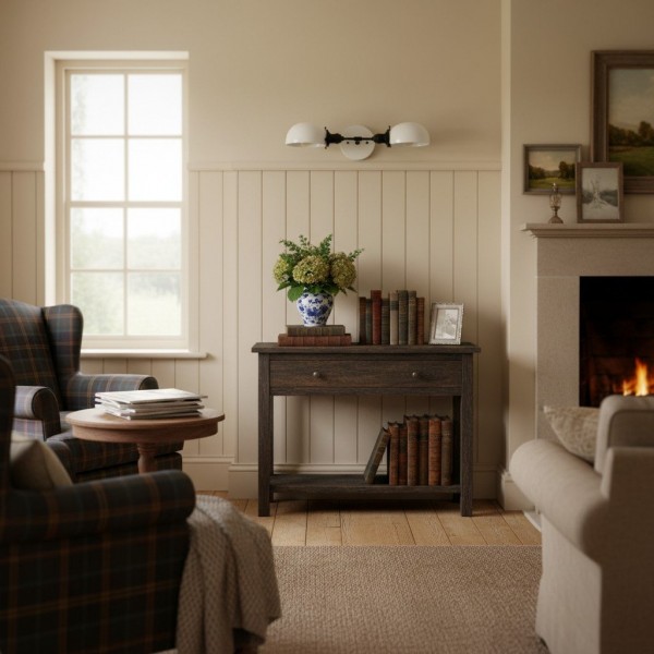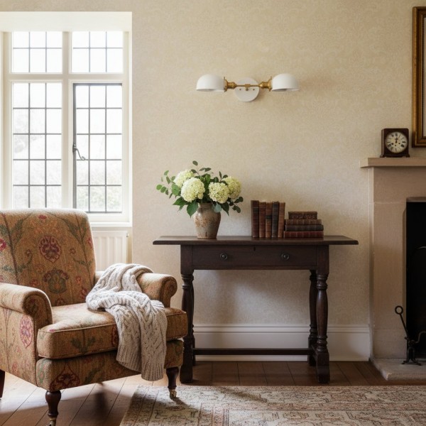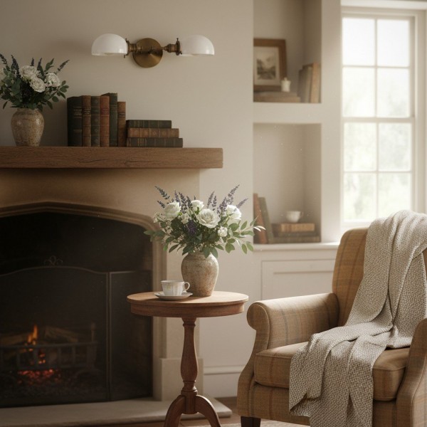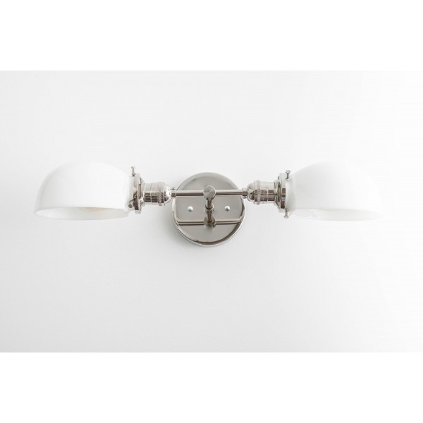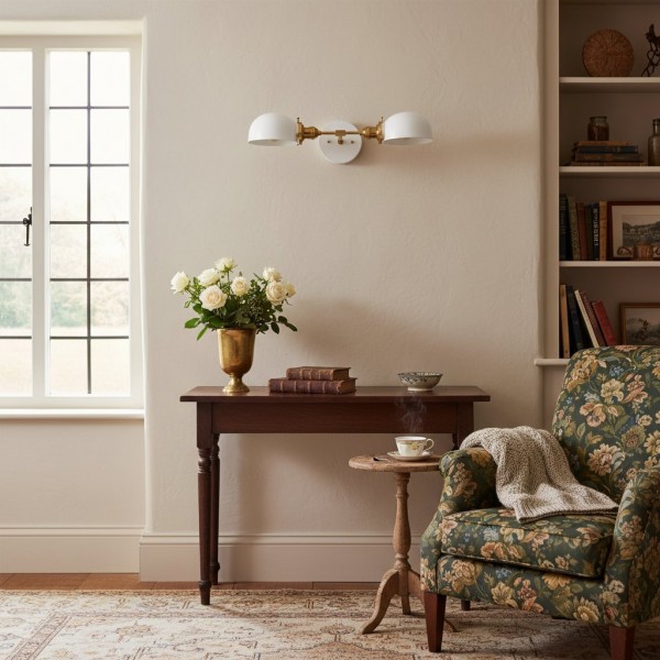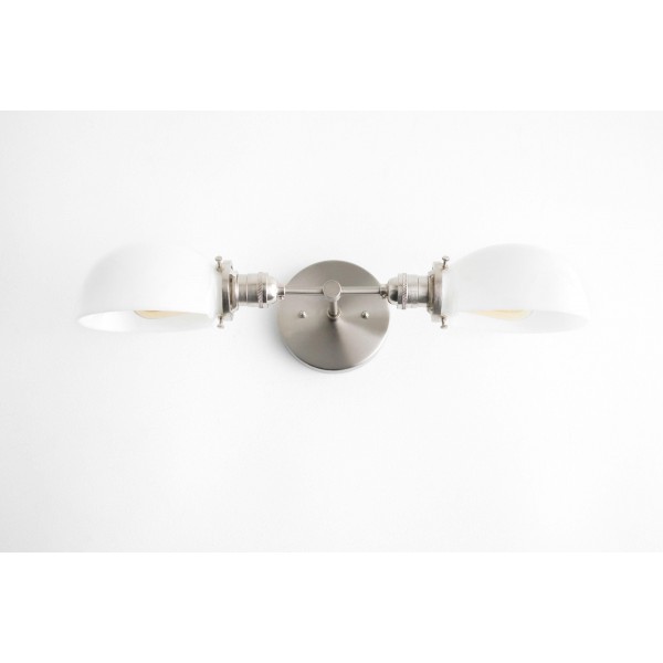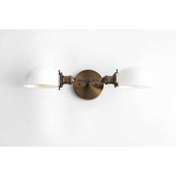 Combina el encanto vintage con la funcionalidad moderna. Esta lámpara de inspiración Art Déco cuenta con una construcción de latón de calidad y pantallas de vidrio opalino que distribuyen la luz uniformemente. Perfecta para baños, vestidores o cualquier espacio que necesite una iluminación elegante para las tareas.