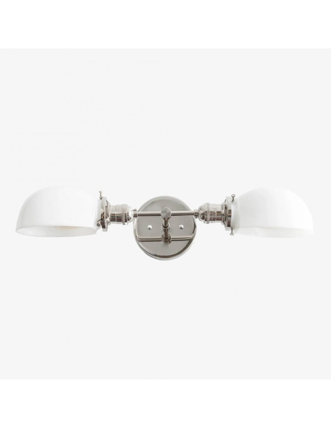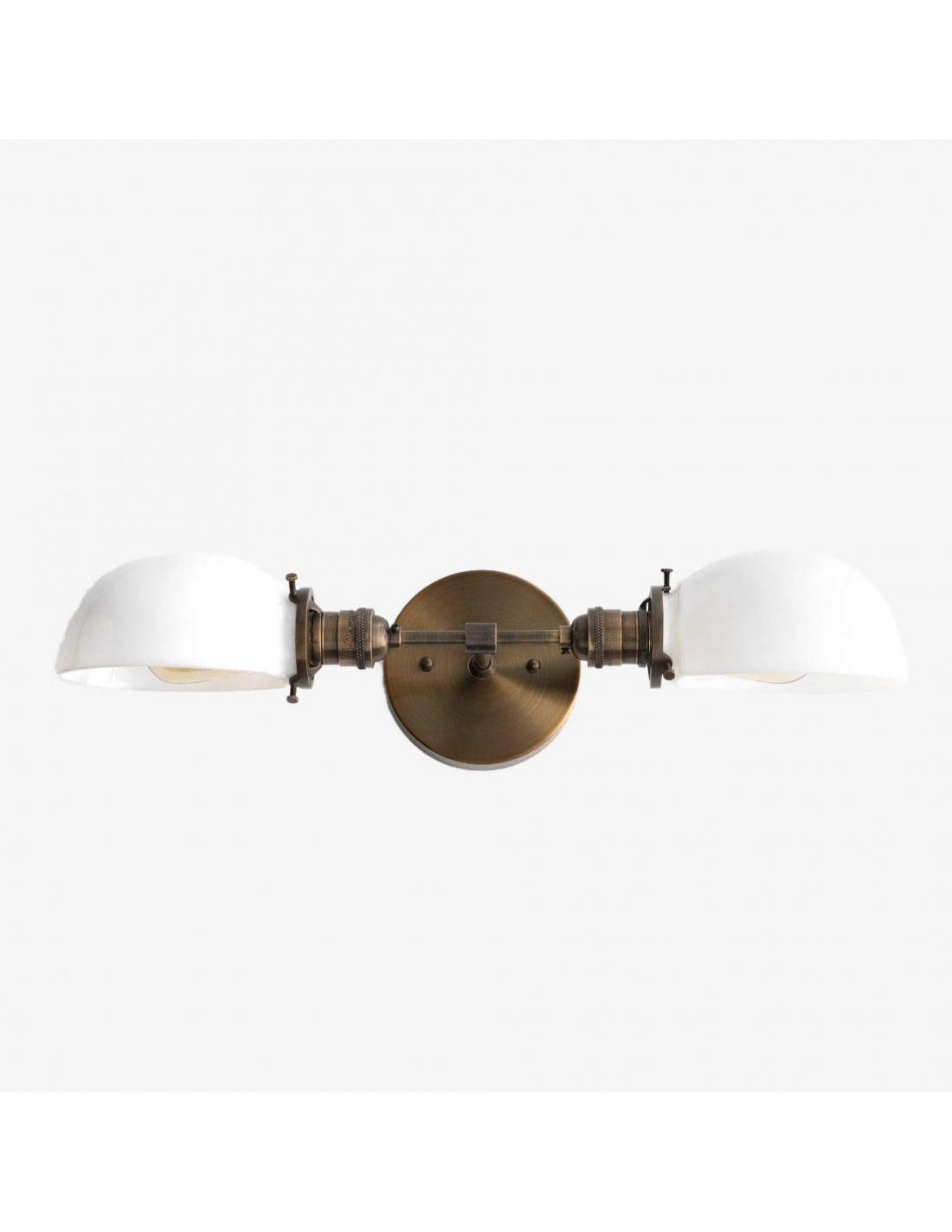 Combina el encanto vintage con la funcionalidad moderna. Esta lámpara de inspiración Art Déco cuenta con una construcción de latón de calidad y pantallas de vidrio opalino que distribuyen la luz uniformemente. Perfecta para baños, vestidores o cualquier espacio que necesite una iluminación elegante para las tareas.