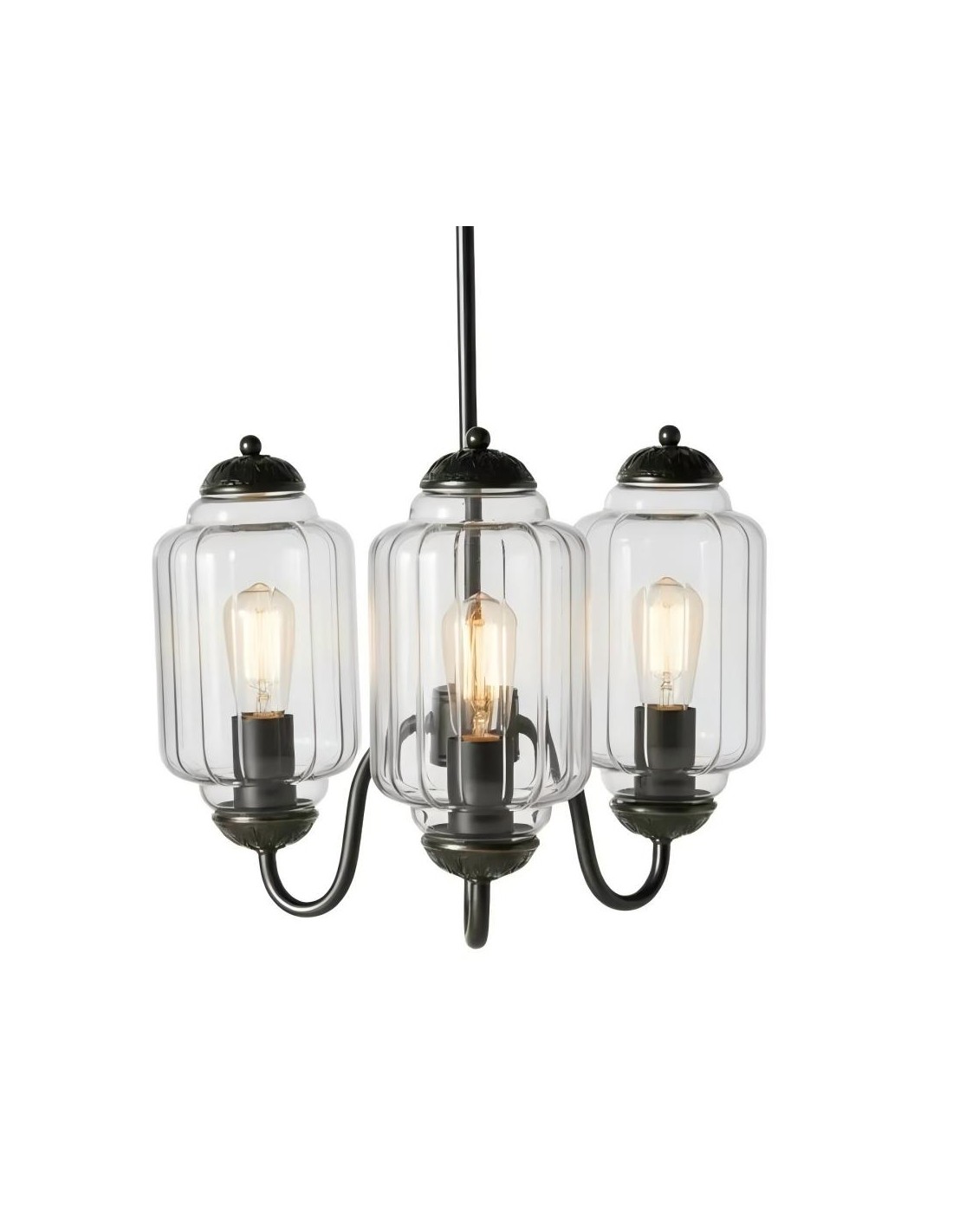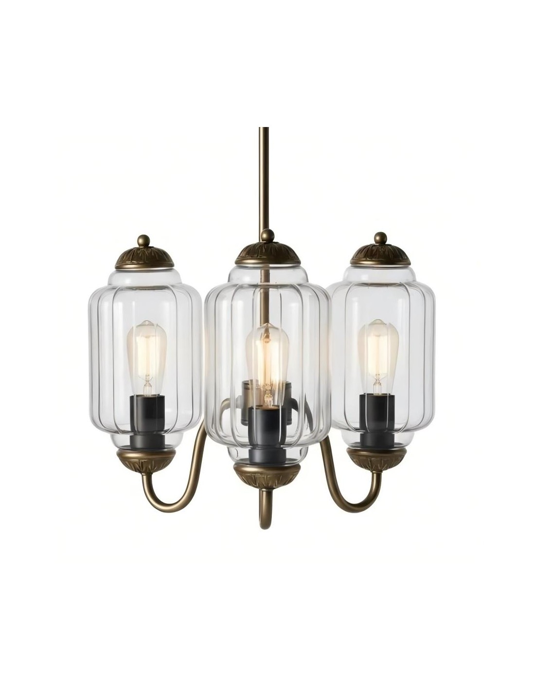 Con pantallas de vidrio lechoso y herrajes de latón aceitado, esta lámpara de inspiración vintage aporta encanto femenino a cualquier espacio.