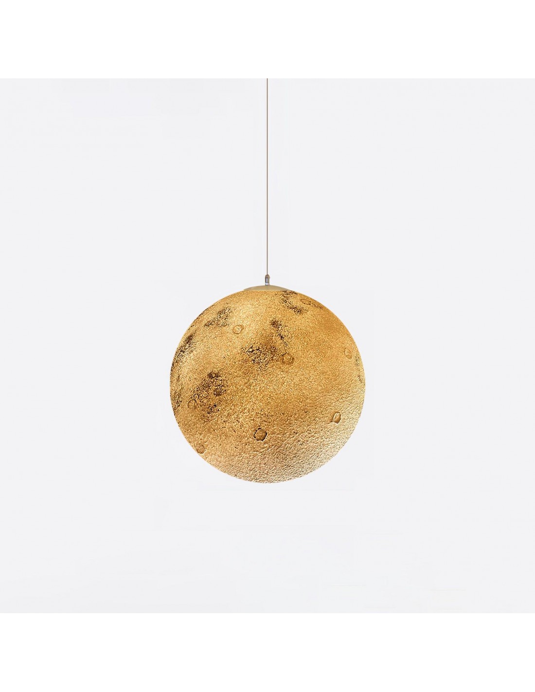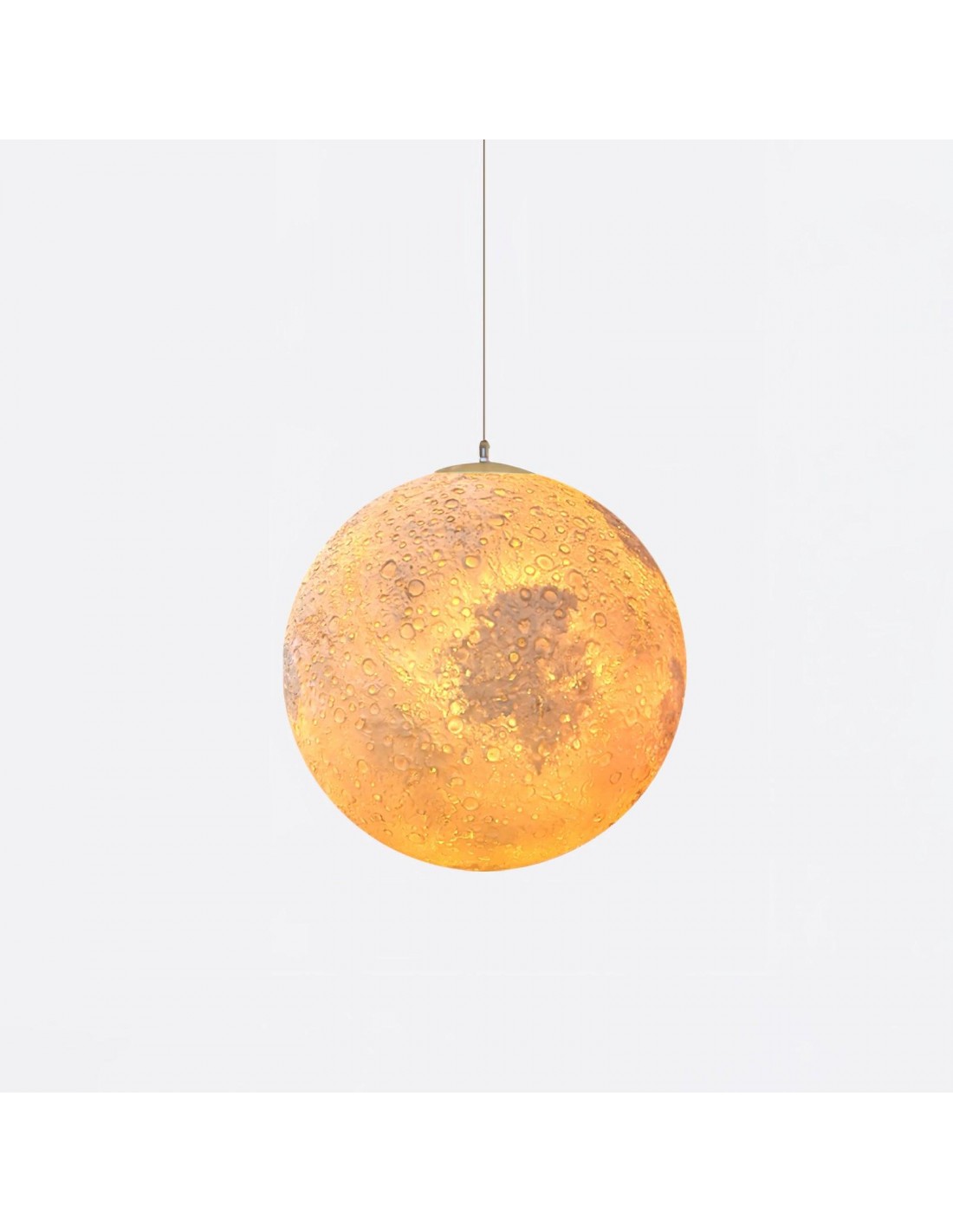 La superficie della lampada presenta una topografia 3D dettagliata e realistica di un pianeta mitologico, che risplende con tonalità dorate e ambrate che evocano il fascino misterioso di mondi inesplorati.