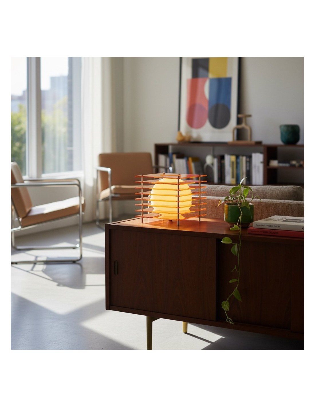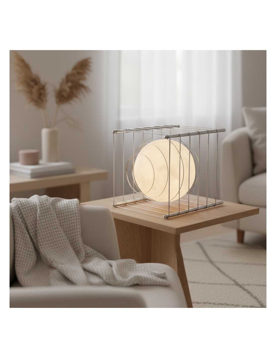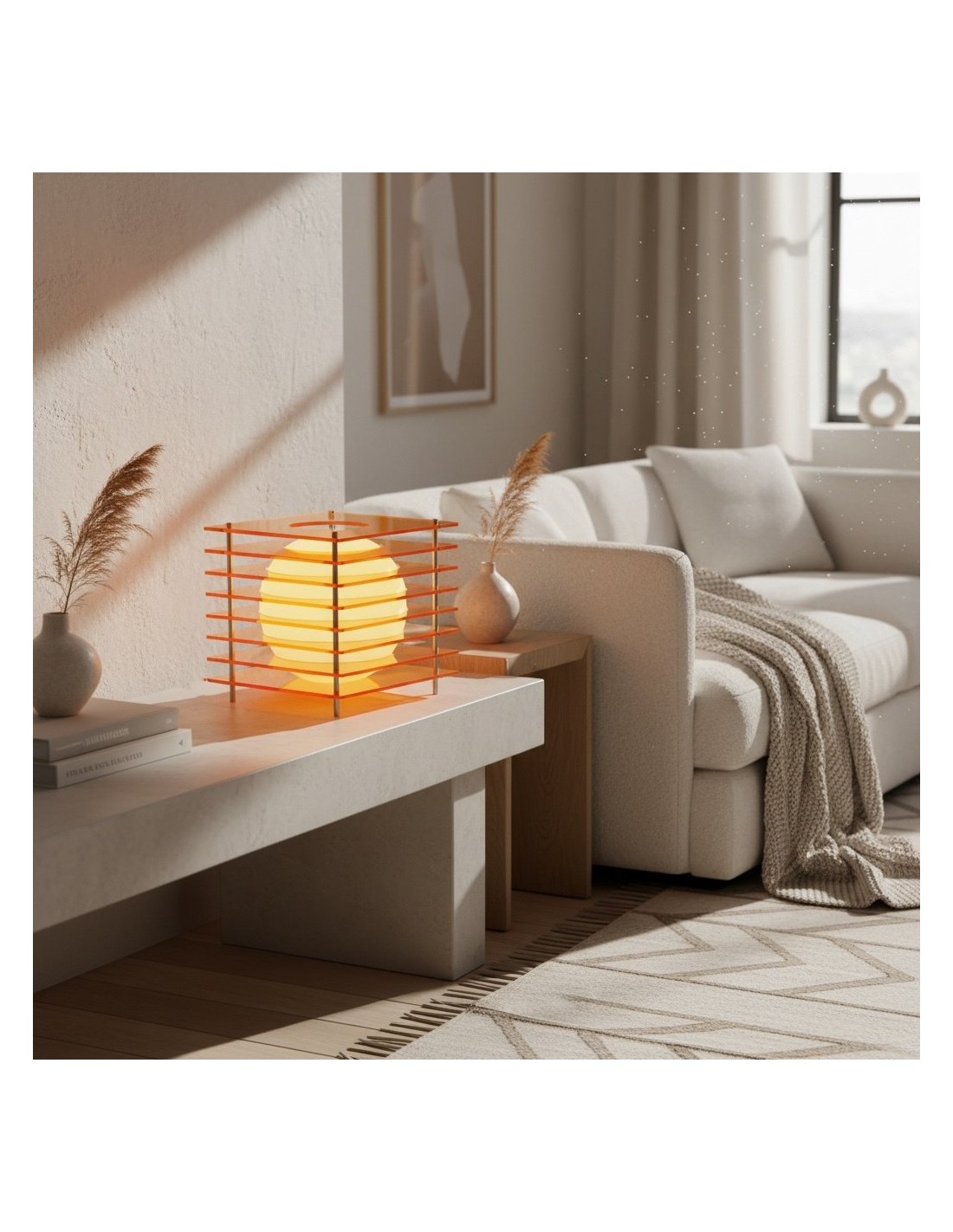 Questa lampada da tavolo scultorea Afterglow presenta una struttura cubica geometrica che incornicia una sfera, creando un sorprendente equilibrio tra forma e atmosfera. Ispirata alle forme lunari, funge sia da illuminazione d'ambiente che da elemento decorativo, ideale per camere da letto, soggiorni, studi o spazi creativi.