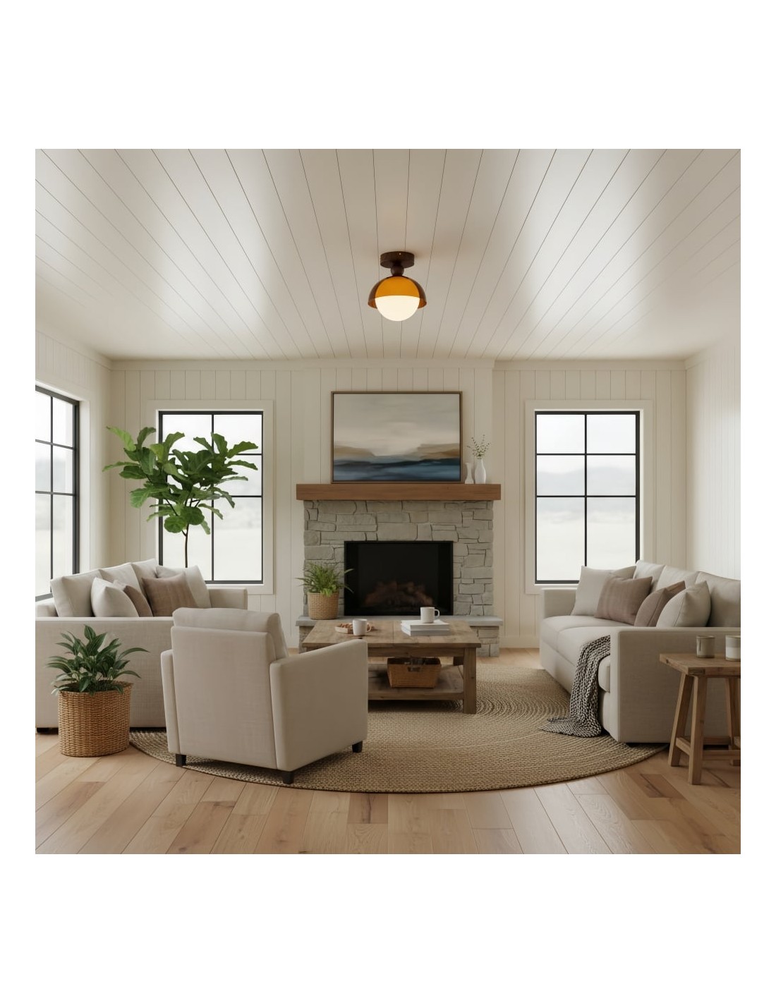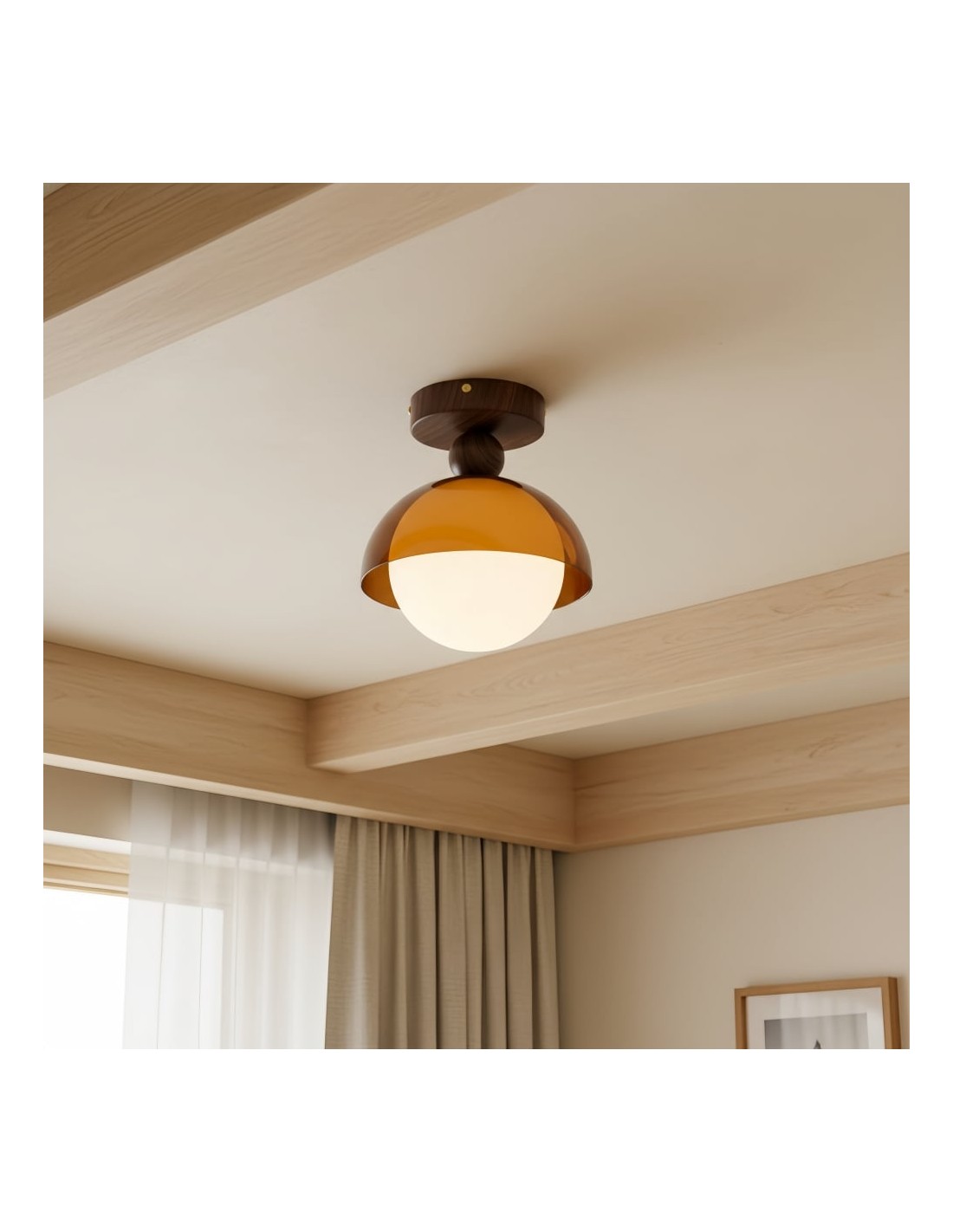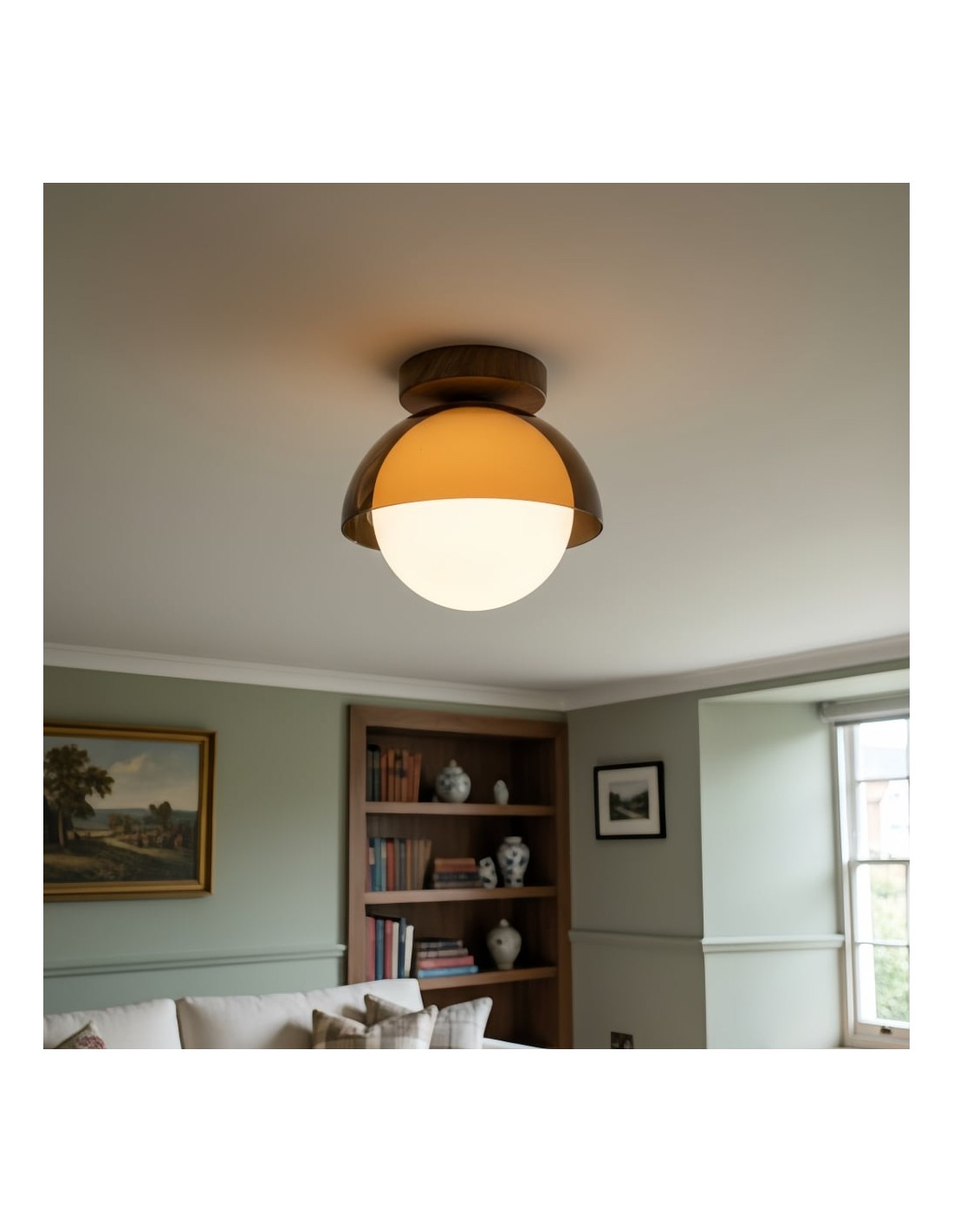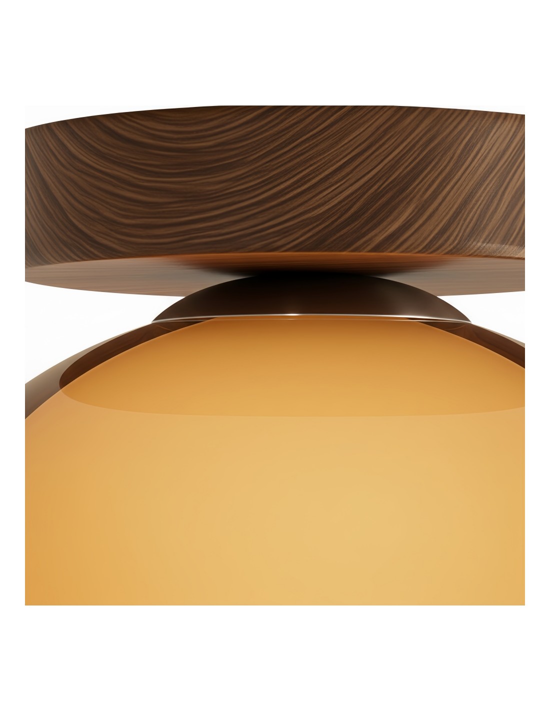 Questa plafoniera Afterglow, ispirata alle calde tonalità del tramonto, dona una luce soffusa e suggestiva a qualsiasi spazio interno. Unendo un'estetica moderna a elementi vintage, questa lampada è sia un pratico strumento di illuminazione che un accattivante elemento decorativo.