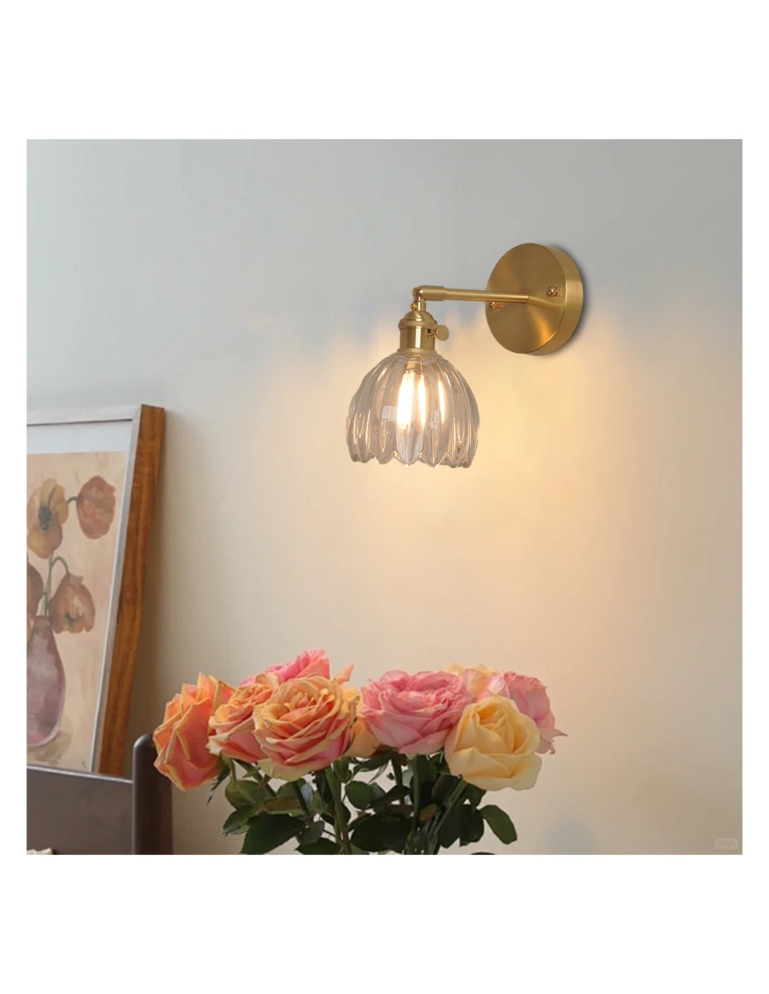 La texture del vetro della lampada da parete a forma di fiore è trasparente e riesce a penetrare bene la luce. I diversi colori del vetro non solo conferiscono alla lampada una lucentezza calda e profonda, ma ammorbidiscono anche la luce, creando un'atmosfera confortevole ed emozionante.