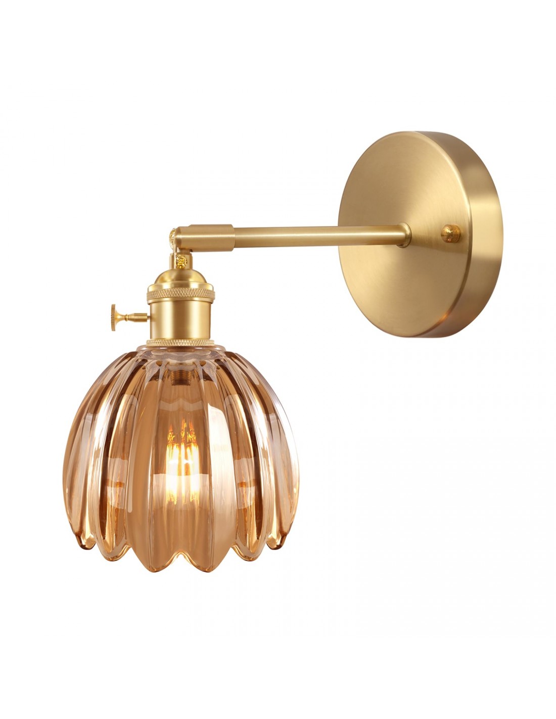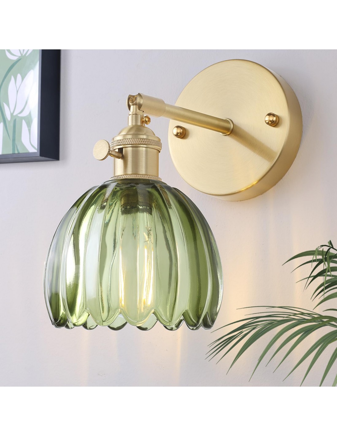 La lampada da parete in vetro Tulip in ottone antico ha linee pulite e uniche, delicati lavori in metallo e colori caldi, l'applique floreale può facilmente fondersi con qualsiasi stile di arredamento moderno. Il design di questa lampada da parete in vetro Tulip ha vantaggi significativi. L'applique in ottone antico utilizza raccordi in ottone di alta qualità e un paralume in vetro morbido e altamente trasmissivo, rendendo questa lampada da parete vintage durevole e con una lunga durata.