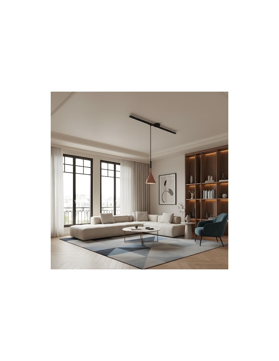 Questo sistema di binari a soffitto regolabili offre un modo flessibile per posizionare le lampade a sospensione, mantenendo un aspetto pulito e moderno. Il design aerodinamico del binario si integra perfettamente negli interni contemporanei, consentendo di adattare la disposizione dell'illuminazione a diverse esigenze. Ideale per soggiorni, sale da pranzo, cucine, studi e spazi commerciali in cui equilibrio visivo e adattabilità sono fondamentali.
