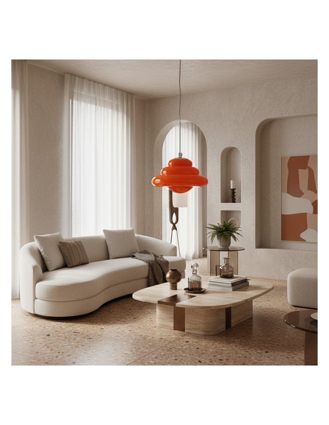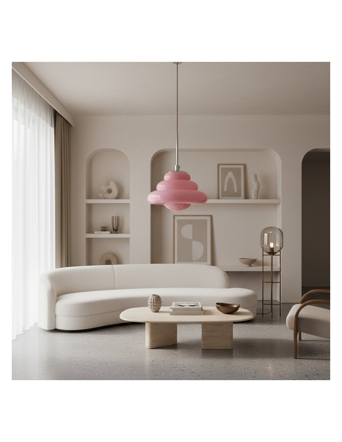 La lampada a sospensione Bomiello coniuga una silhouette scultorea a strati con una luce calda e diffusa, creando un punto focale di grande impatto. Linee pulite e finiture tattili si adattano ad interni moderni, scandinavi o boho. Versatile per tavoli da pranzo, isole da cucina, soggiorni, camere da letto e spazi ricettivi.
