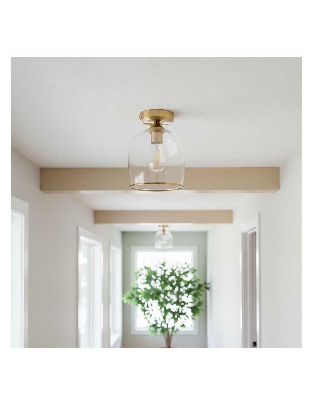 Questa plafoniera a cupola è caratterizzata da un paralume in vetro splendidamente lavorato, con una ricca finitura in ottone anticato che aggiunge un tocco di calore e raffinatezza. Progettata per spazi con soffitti bassi, il suo stile compatto e a filo la rende una soluzione di illuminazione ideale per corridoi, cucine, ingressi o qualsiasi altra area.