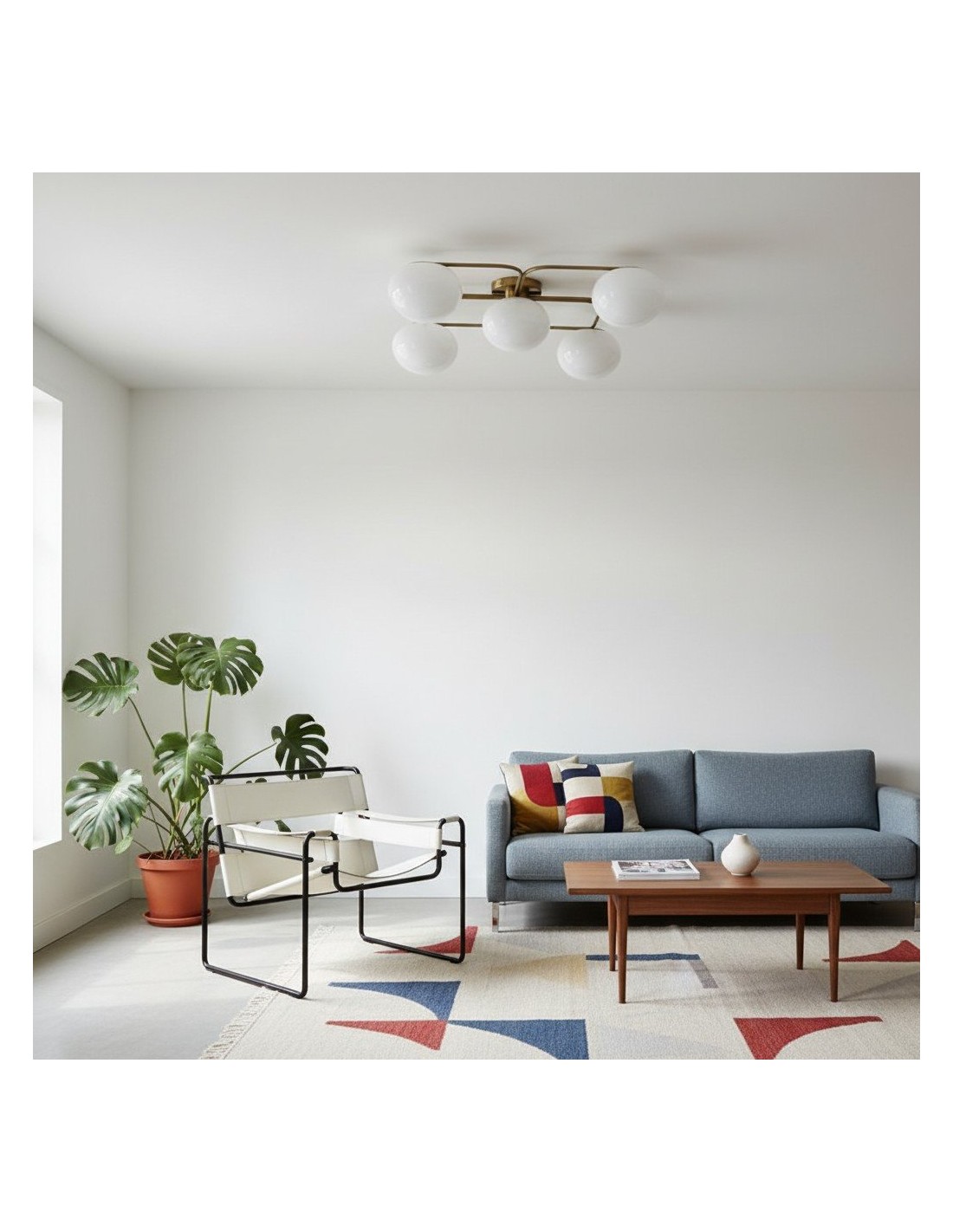 Questa moderna lampada da incasso è caratterizzata da cinque paralumi in vetro satinato che racchiudono una struttura metallica compatta, offrendo un'illuminazione equilibrata e diffusa. Le sue linee pulite si adattano agli interni contemporanei e la sua resistenza all'umidità la rende ideale per bagni, ingressi, corridoi o aree esterne coperte.