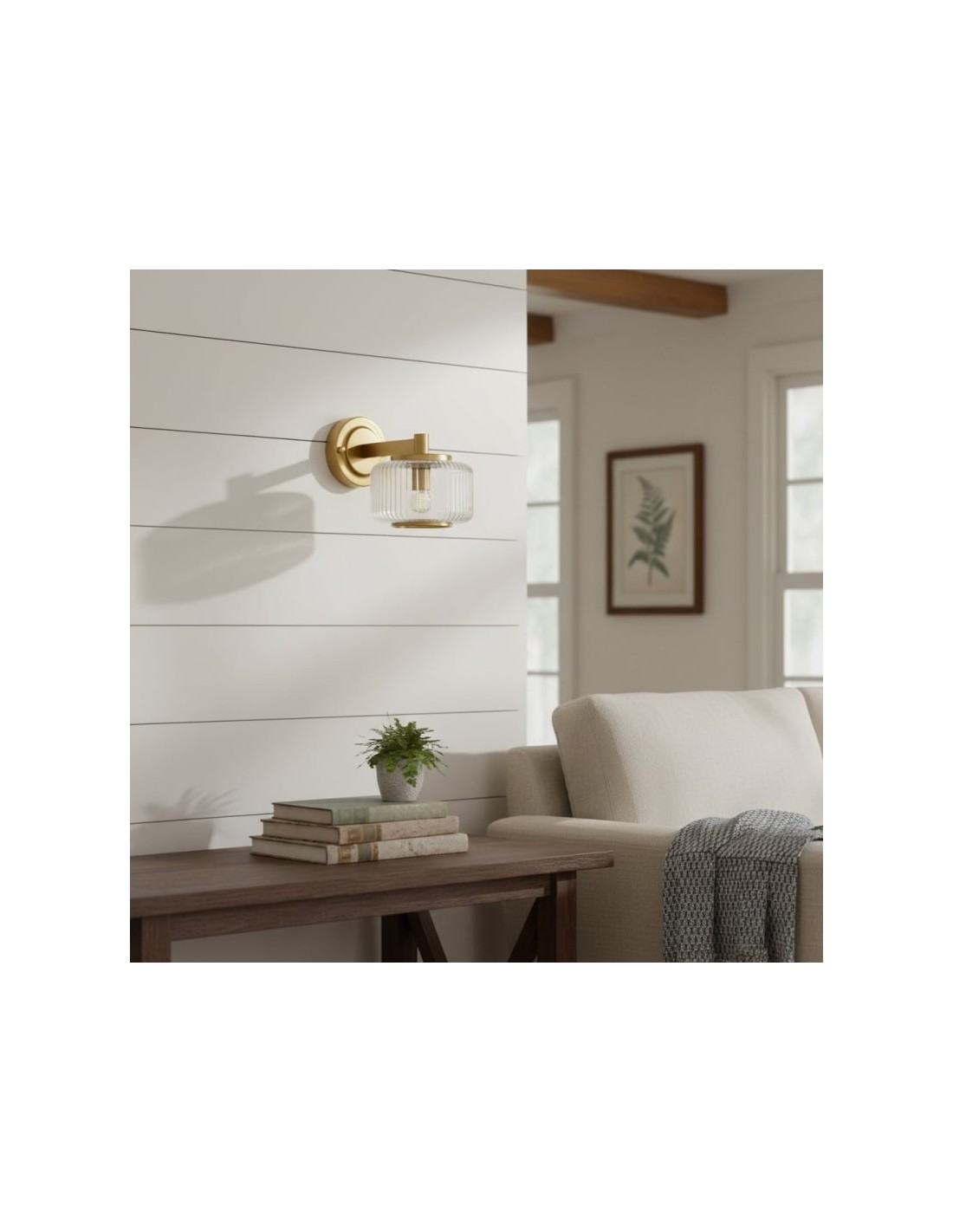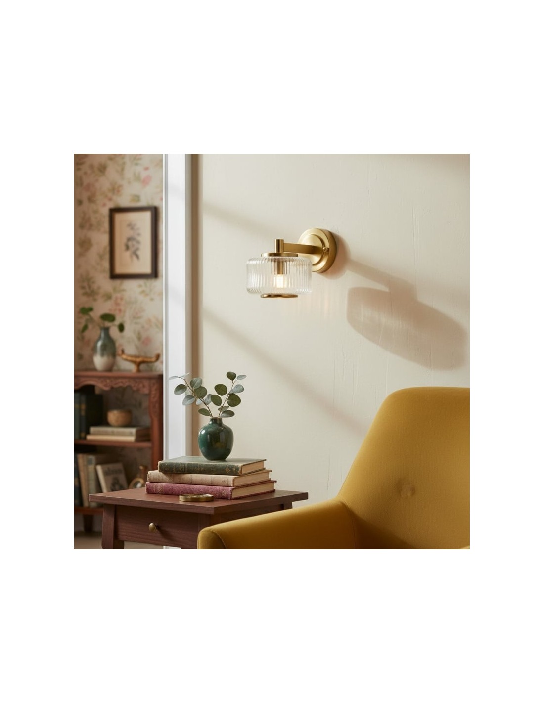 Scopri l'applique Canovus, dove il fascino vintage incontra il design industriale. Il suo elegante paralume in vetro scanalato proietta una luce morbida e diffusa, creando un'atmosfera calda. Abbinata a un elegante supporto in metallo, questa versatile applique è perfetta per corridoi, camere da letto o soggiorni.