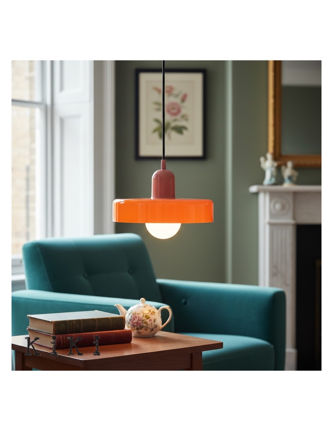 Ha una varietà di colori tra cui scegliere, che possono soddisfare le tue esigenze di decorazione per diversi spazi. Quando è accesa, la Glass Disc Pendant Light emette un bagliore caldo e invitante. La luce morbida e delicata crea un'atmosfera accogliente e confortevole, rendendola ideale per il relax, la cena o il lavoro concentrato. Oltre ai suoi aspetti funzionali, questa Disc Glass Orb Pendant Light trasuda eleganza e funge da accento perfetto per camere da letto, sale da pranzo, isole della cucina o uffici.