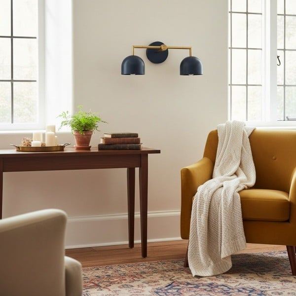 La nostra applique da parete Farmhouse Vanity, un perfetto mix di design moderno e fascino rustico. Caratterizzata da bracci ad angolo retto e paralumi a cupola profonda, questa applique è realizzata in un'elegante finitura in metallo. Ideale per bagni, camere da letto o corridoi, offre un'illuminazione funzionale e un tocco di stile. Le cupole profonde dirigono la luce con precisione, creando un'atmosfera calda e accogliente. Valorizza il tuo spazio con questa elegante lampada.