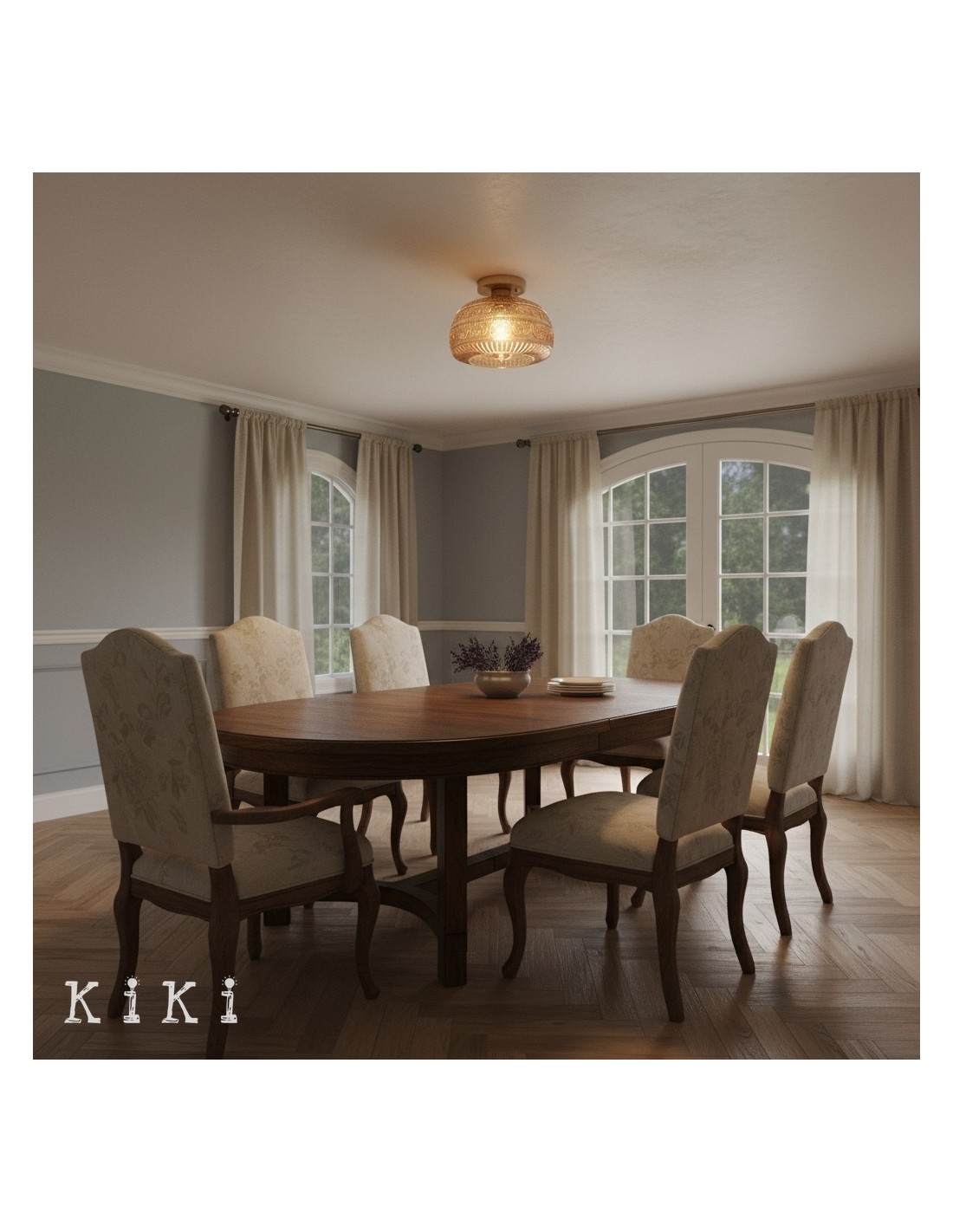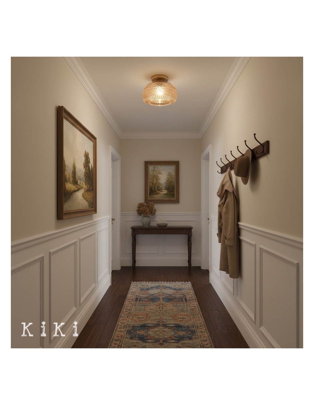 Caratterizzata da un design classico, questa plafoniera con motivo floreale inciso unisce eleganza e funzionalità, valorizzando sia gli interni moderni che quelli tradizionali. La plafoniera in vetro con montaggio a filo è perfetta per corridoi e camere da letto, aggiungendo un tocco di sofisticatezza nostalgica a qualsiasi ambiente.