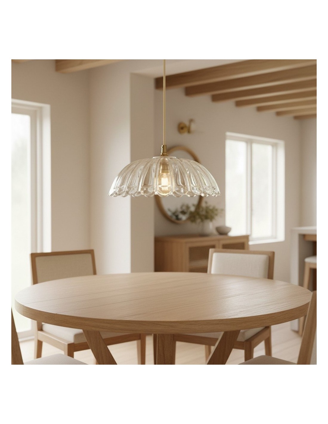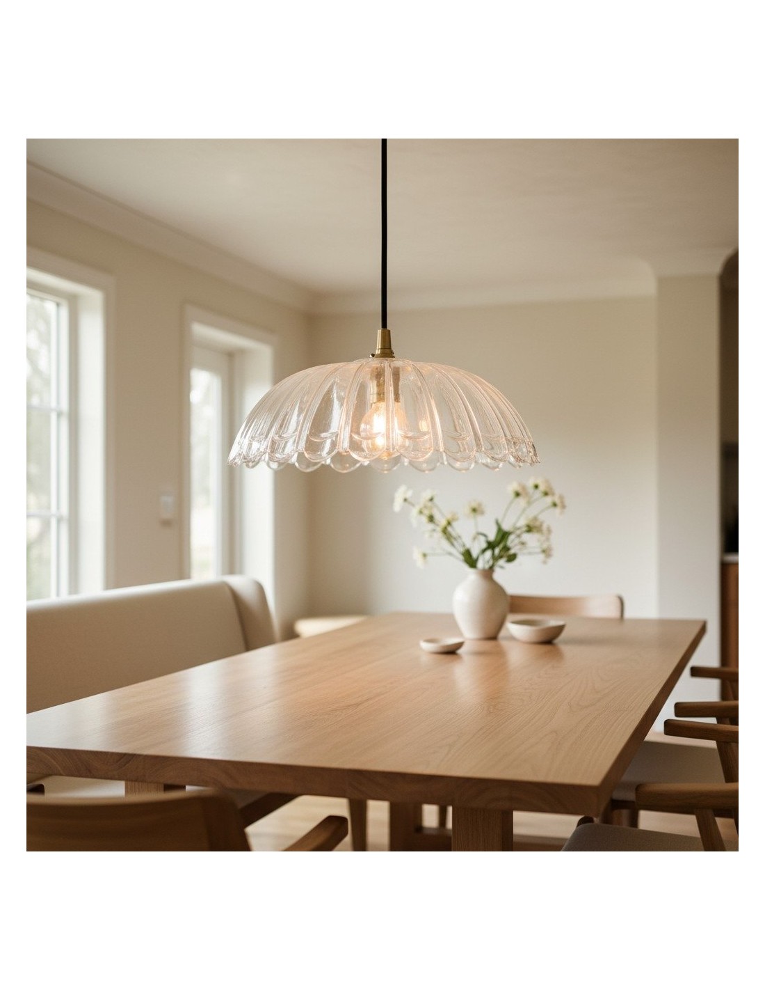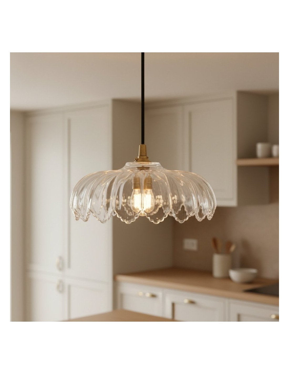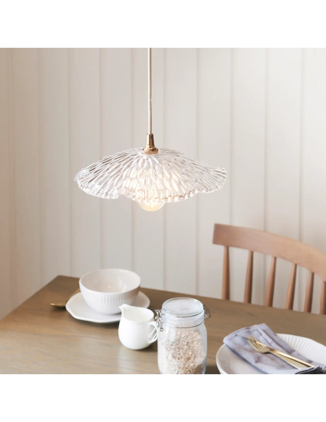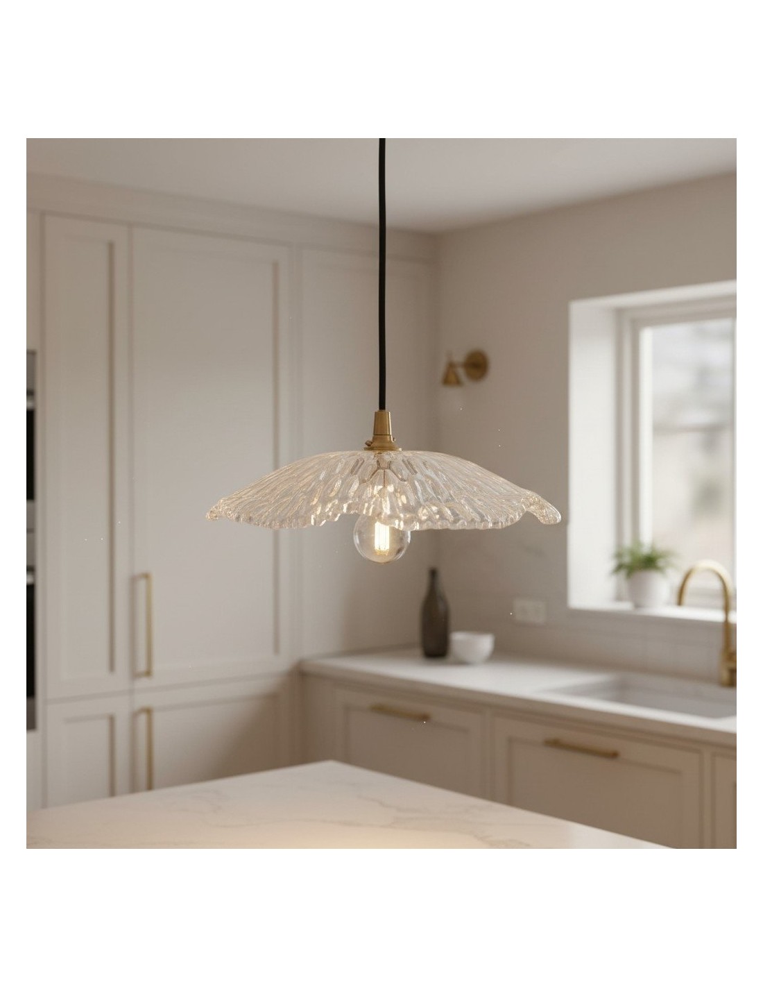 Una lampada a sospensione in vetro floreale Floriaxis che fonde forma decorativa e funzionalità quotidiana. Ogni modello presenta una forma a fiore abbinata a un cavo di sospensione intrecciato in tessuto (disponibile in colore naturale o nero). Versatile ed elegante, dona un fascino classico e artistico a cucine, sale da pranzo e ambienti dedicati all'ospitalità.