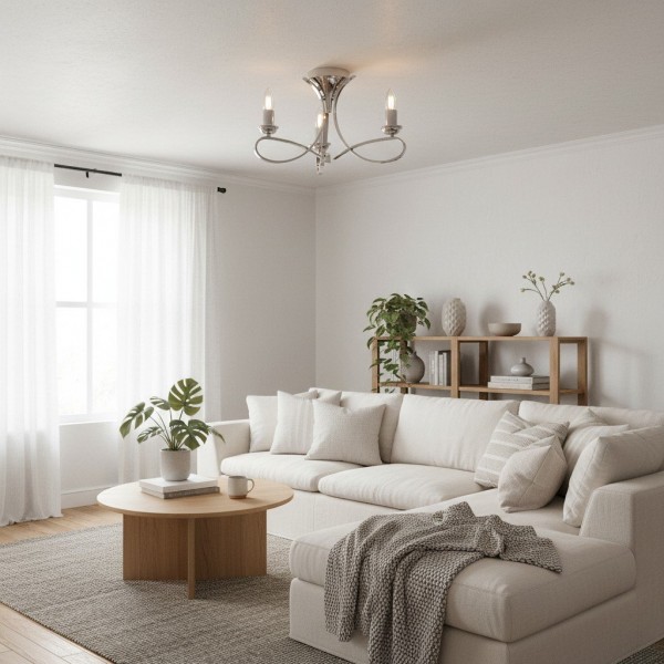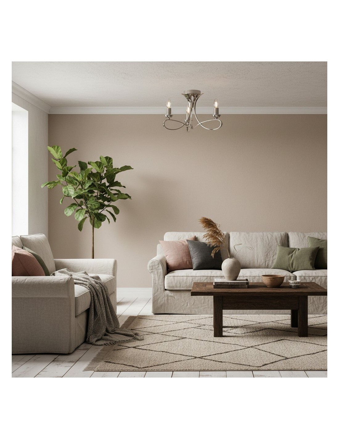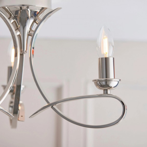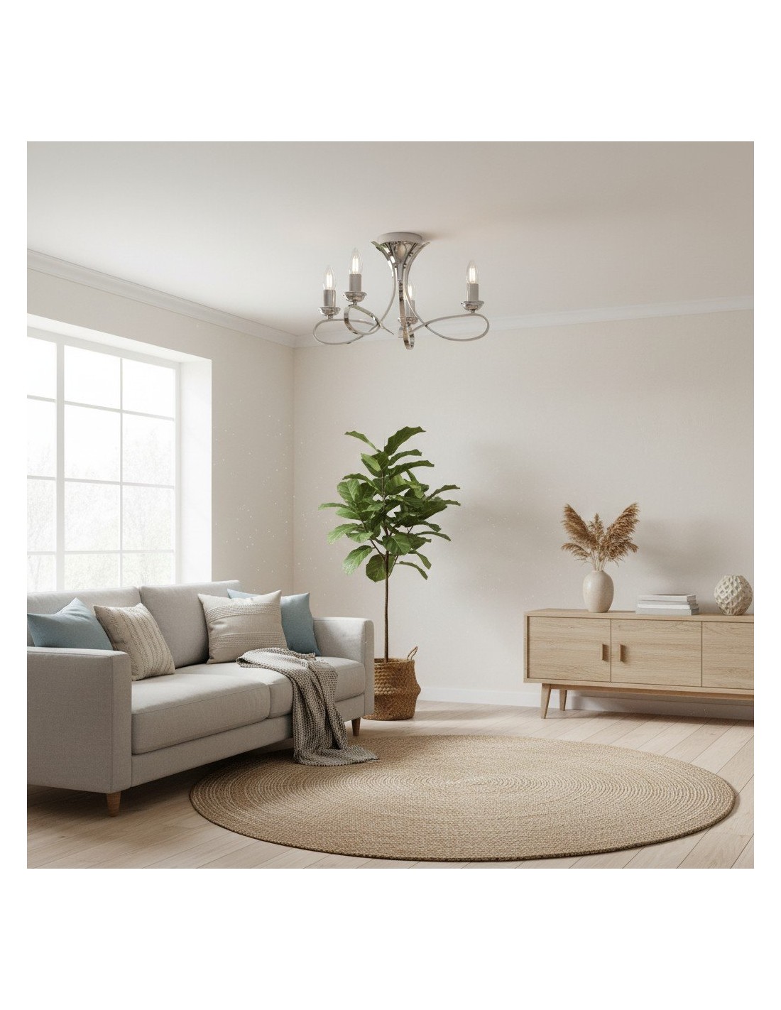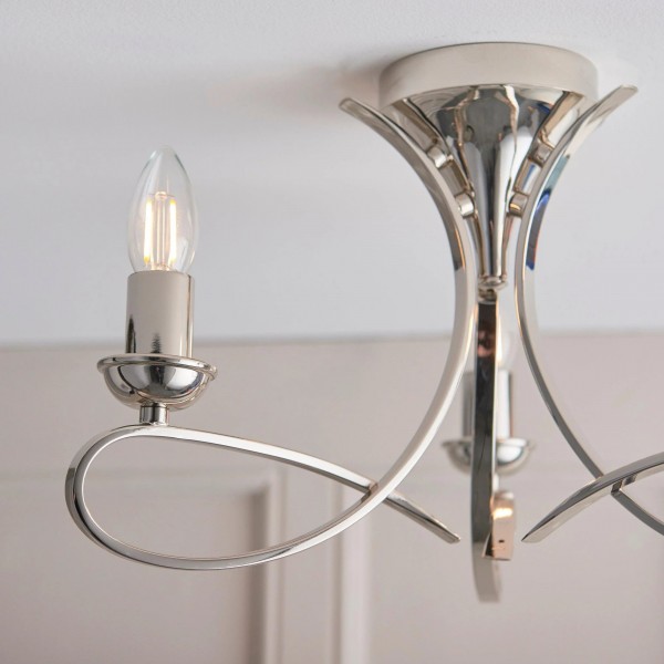 Valorizza il tuo spazio con la plafoniera semi-incassata Foline a 3 luci: un apparecchio elegante e raffinato, caratterizzato da ampi bracci curvi realizzati in acciaio con finitura nichel lucido. Grazie al montaggio a filo soffitto, la lampada mantiene un profilo discreto, pur aggiungendo una presenza decorativa e scultorea.