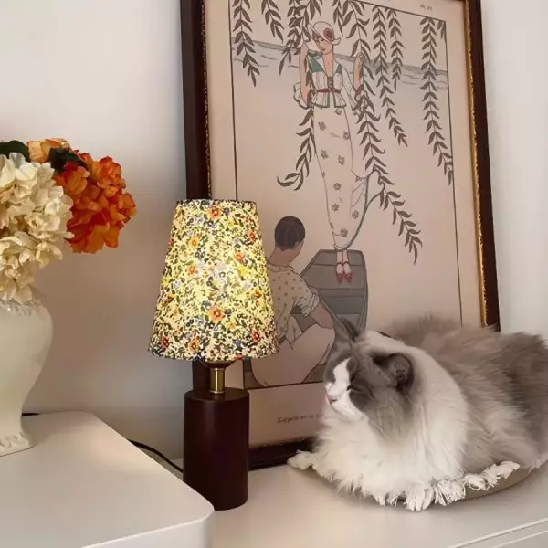 Questa piccola lampada da tavolo in tessuto francese con motivi floreali in legno dona un tocco di eleganza di ispirazione francese alla tua camera da letto! Questa squisita lampada da tavolo in stile francese presenta un paralume in tessuto decorato con delicati motivi floreali, che proietta una luce calda e invitante, perfetta per serate accoglienti. La robusta base in legno aggiunge un fascino rustico, mentre il design a fiori in tessuto fonde la raffinatezza di metà secolo con un romanticismo senza tempo. Ideale per comodini, cassettiere o scrivanie, questa lampada da tavolo in legno di metà secolo impreziosisce senza sforzo qualsiasi spazio con il suo fascino d'ispirazione vintage.