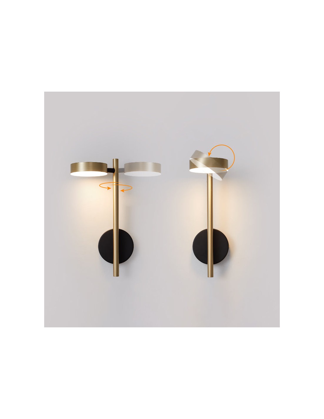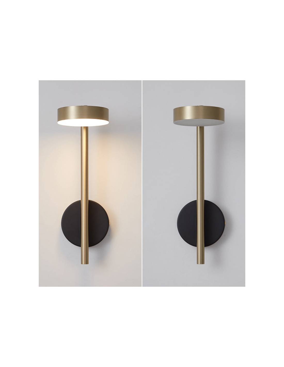 La lampada da parete abbina linee geometriche pulite a toni metallici caldi per un design contemporaneo sorprendente. Con il suo elemento centrale circolare e la sottile struttura lineare, questa lampada da parete offre sia un'illuminazione funzionale che un fascino scultoreo, rendendola perfetta per i corridoi o come lampada da comodino.