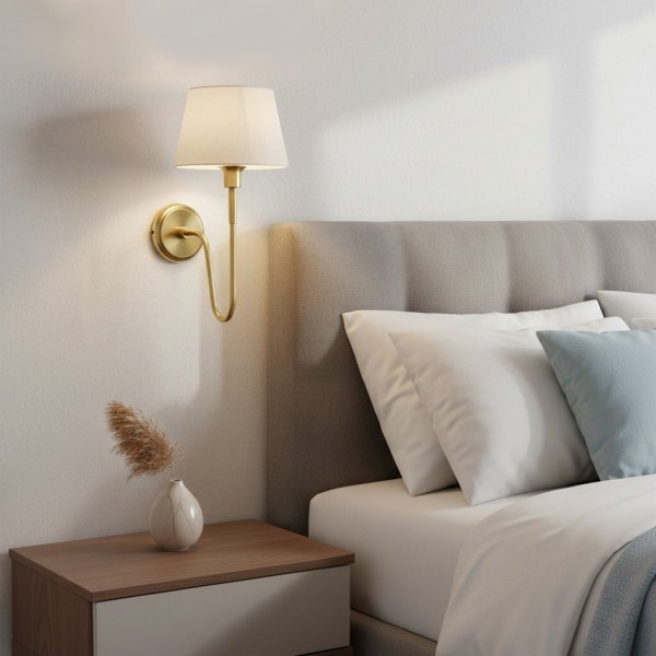 Un'applique Ivoralux che fonde curve raffinate e un paralume in tessuto affusolato per creare un'atmosfera morbida e accogliente. Adatta a camere da letto, corridoi, soggiorni e spazi ricettivi. Disponibile in diversi design e dimensioni per abbinarsi ad arredi classici o contemporanei.