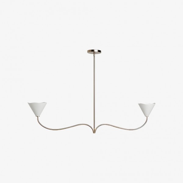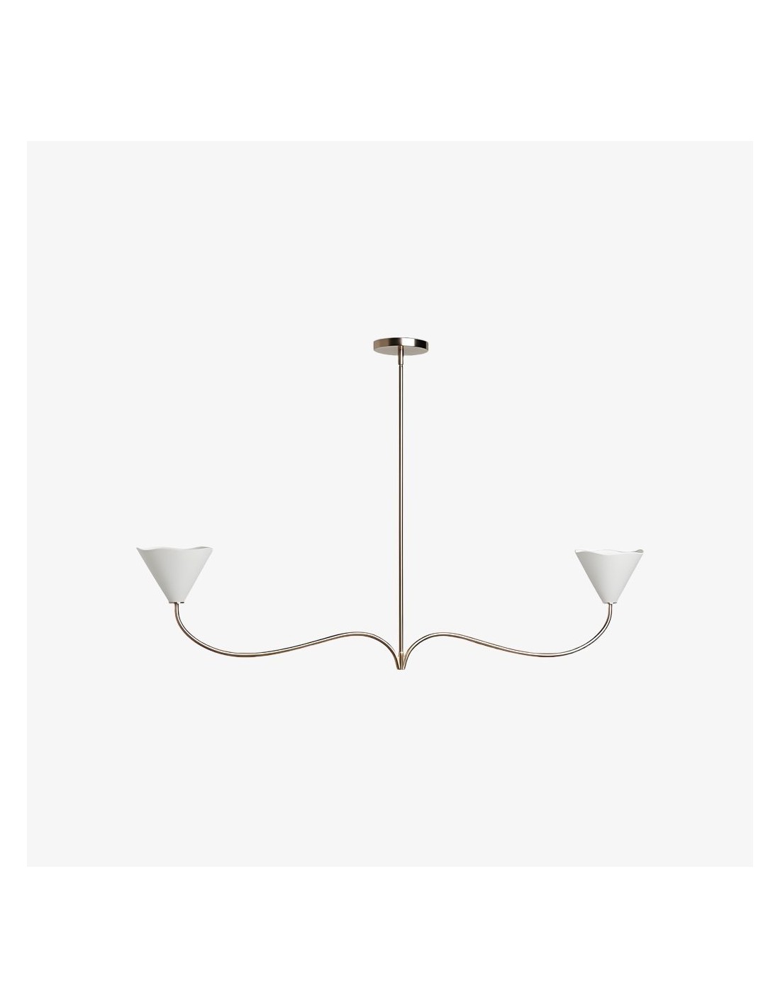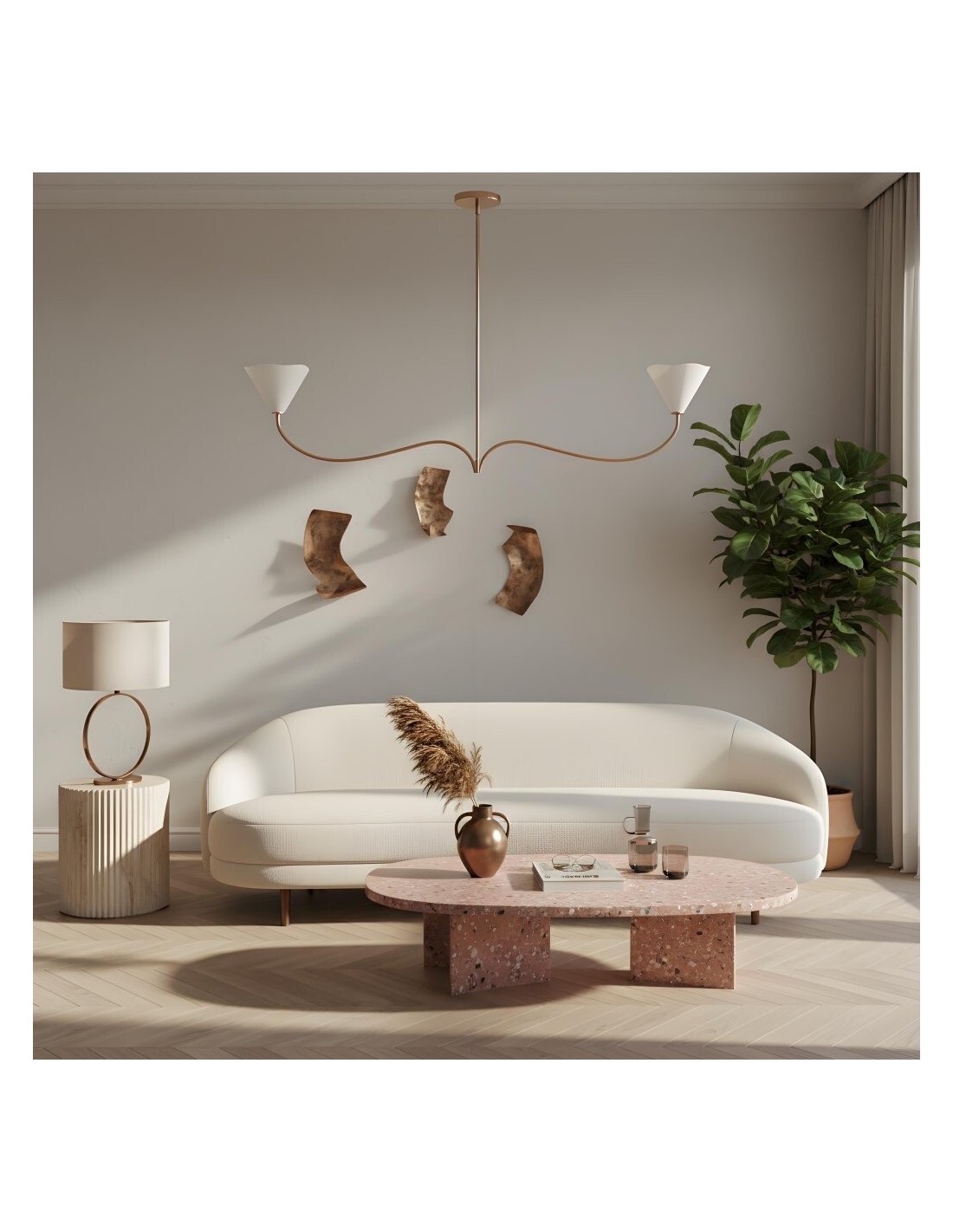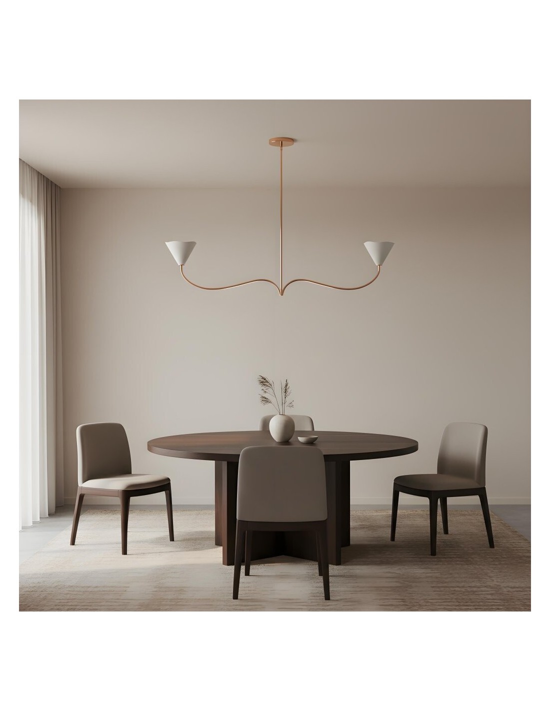 Questo lampadario Kysara presenta bracci sottili e curvi e un semplice paralume in tessuto, creando un elegante design geometrico floreale che si adatta perfettamente sia agli stili di arredamento classici che a quelli moderni. È la scelta ideale per tavoli da pranzo o ampi soggiorni.