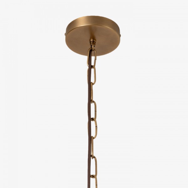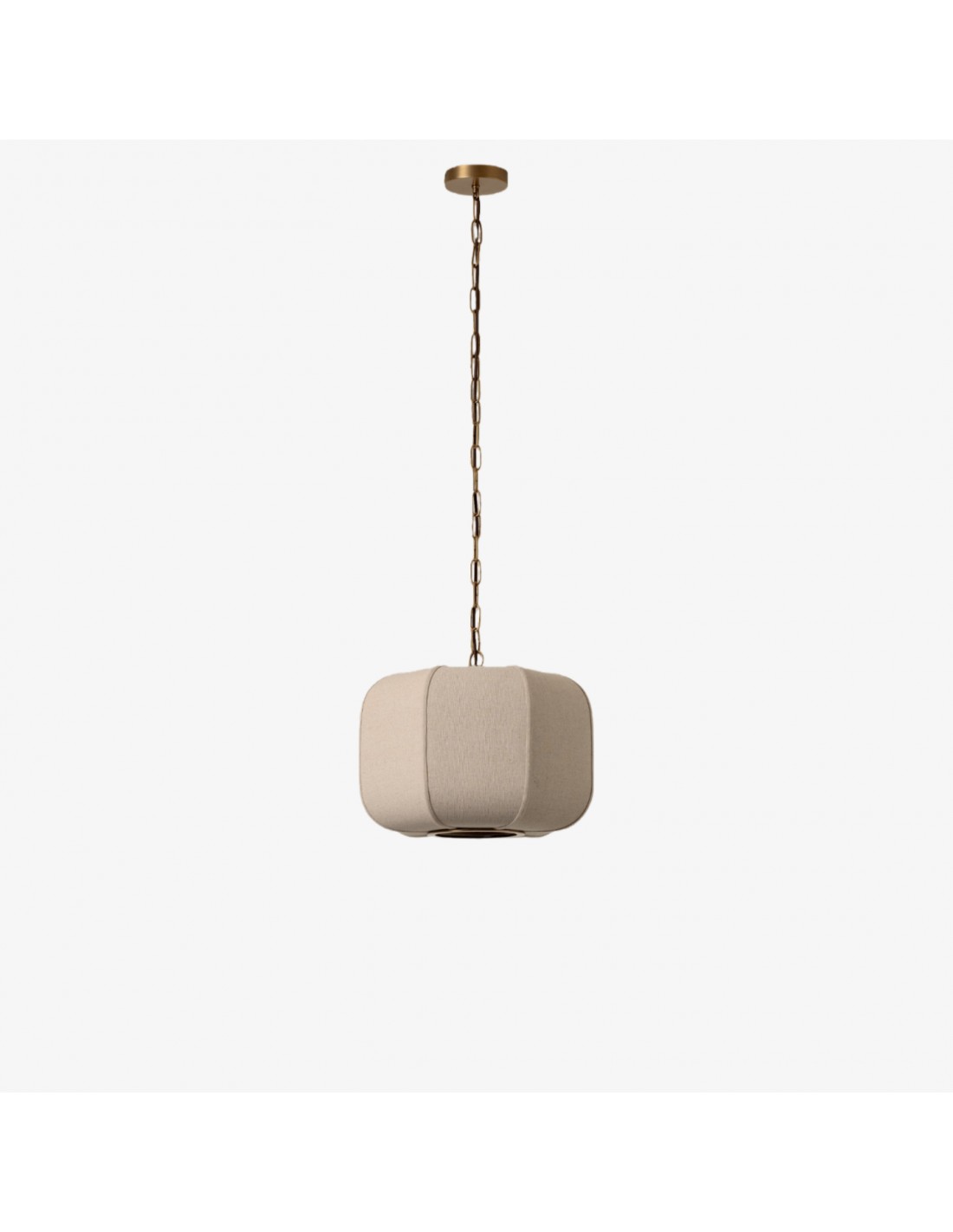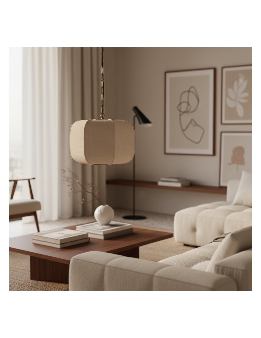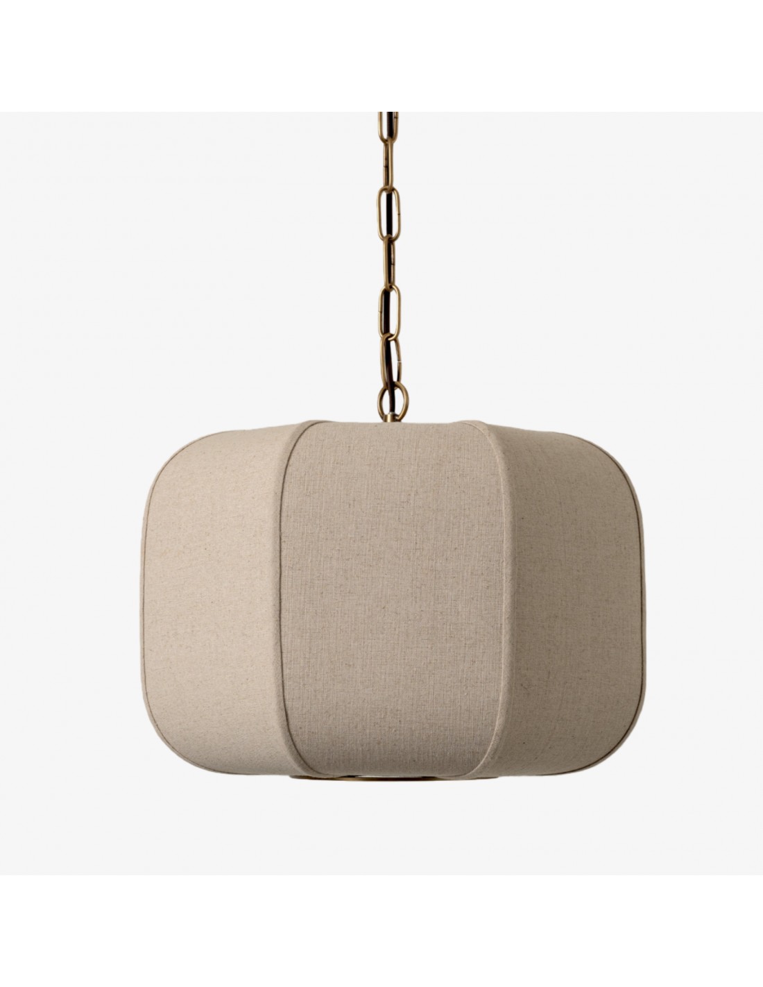 La lampada a sospensione alta Loomis dona eleganza e calore a qualsiasi spazio. Caratterizzata da un paralume rivestito in lino testurizzato e da una finitura in ottone anticato, questa moderna lampada a sospensione offre un'illuminazione d'ambiente e un design sofisticato. Regolabile in altezza, è perfetta per sale da pranzo, cucine, camere da letto o ingressi, creando un tocco di stile.