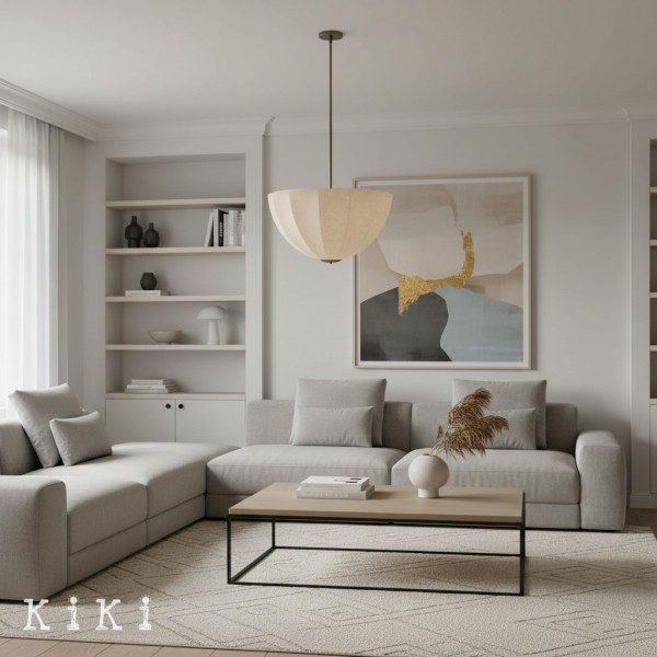 L'apparecchio di illuminazione fonde armoniosamente l'arte scultorea con le morbide texture di tessuti di alta qualità. Questo pezzo eccezionale presenta un paralume rivestito in lino ispirato alle forme organiche dei baccelli e dei rami. Disponibile come grande lampada a sospensione o come elegante lampada a filo.