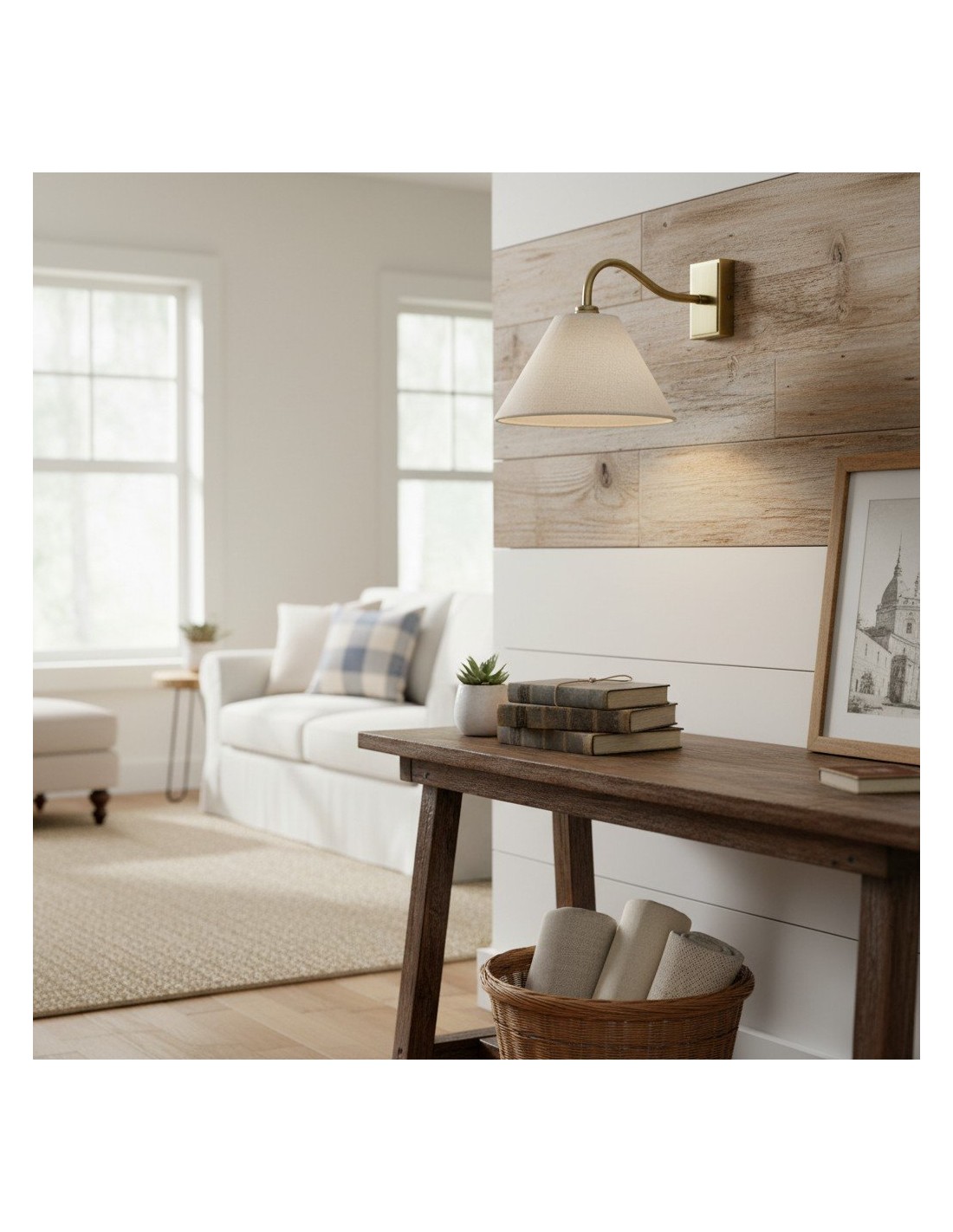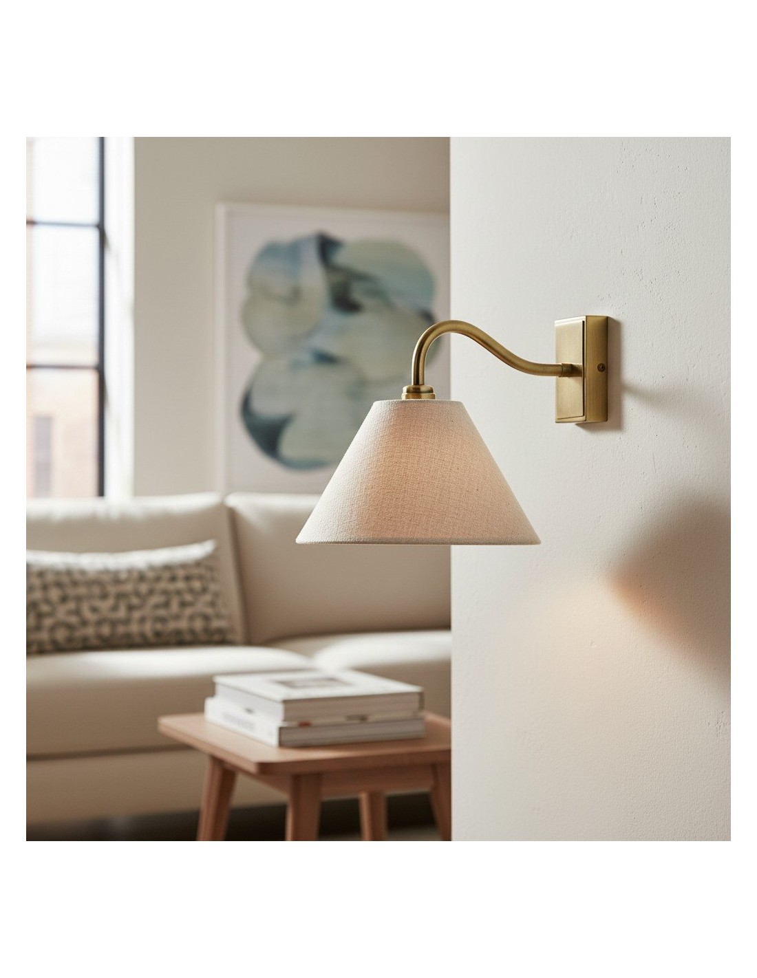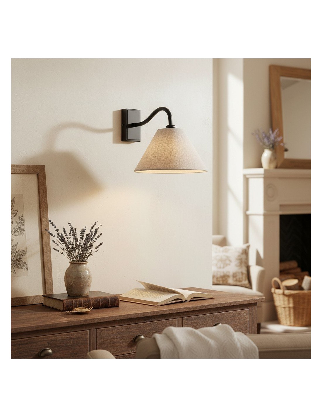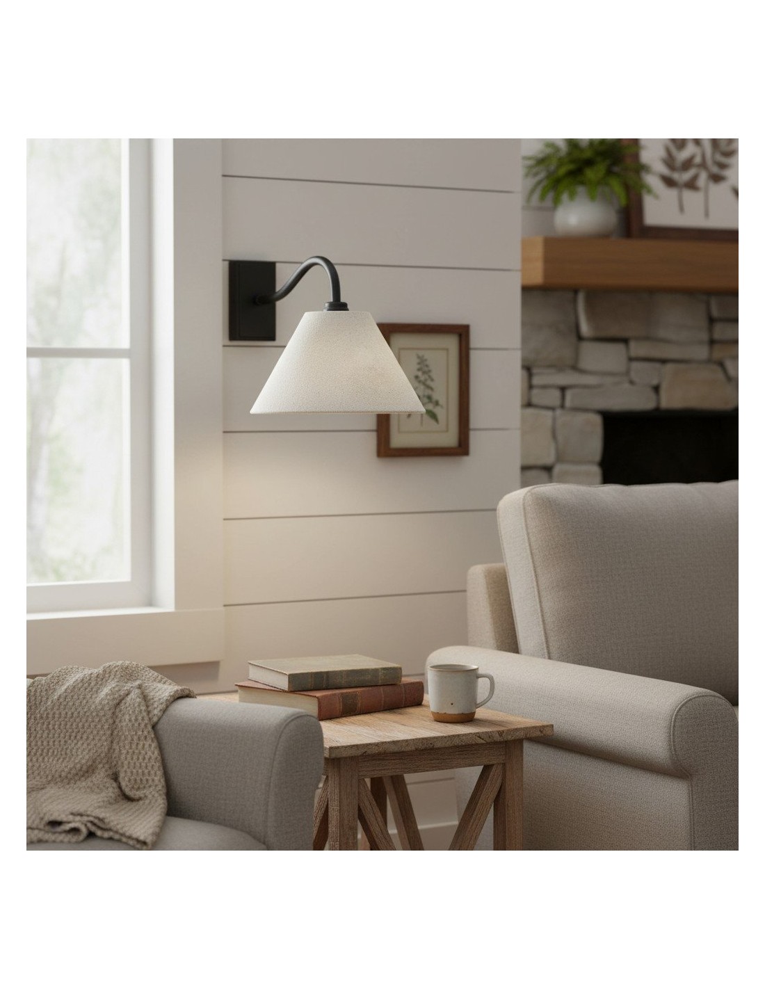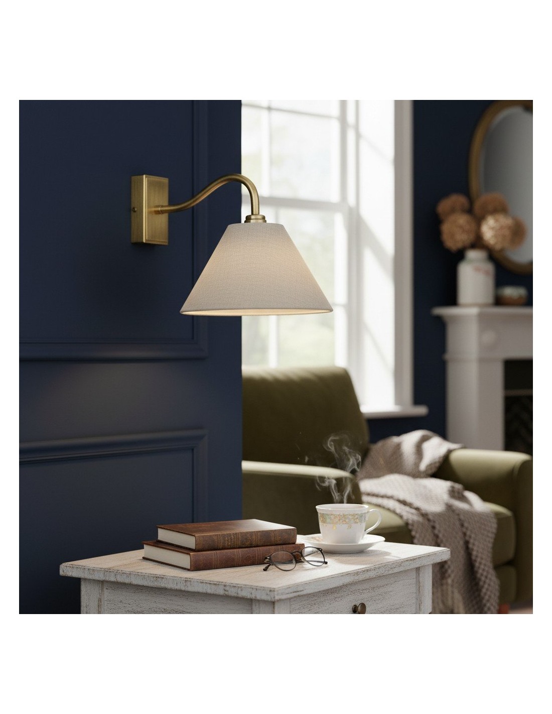 Una raffinata applique Lumweve con paralume in tessuto sintetico e braccio scolpito che aggiunge un tocco di eleganza classica a qualsiasi parete. Questa versatile applique si adatta ad interni tradizionali o contemporanei ed è ideale per camere da letto, corridoi, soggiorni, hotel e sale da pranzo.