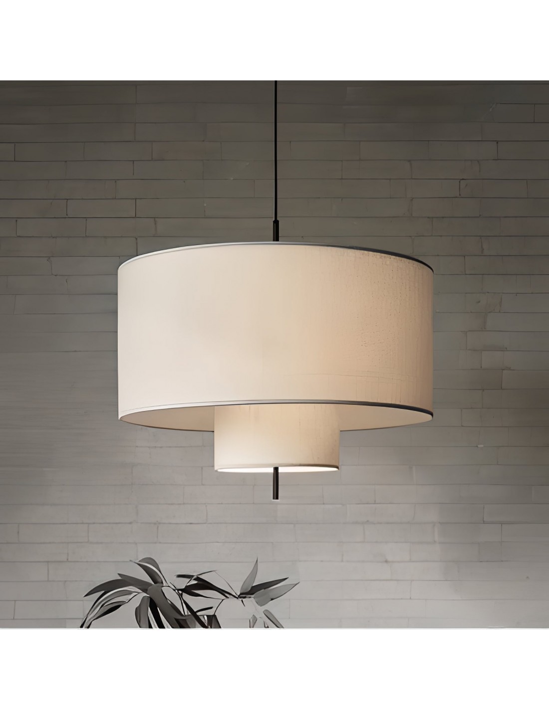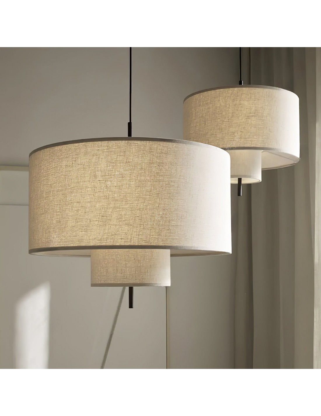 Ecco la lampada a sospensione, una tipologia di illuminazione a più livelli. Le sue tonalità intersecate diffondono una luce calda, creando un'atmosfera accogliente e tattile. Il tessuto morbido è controbilanciato da una silhouette pulita e grafica, aggiungendo volume e presenza a qualsiasi spazio. Dettagli come l'elemento lineare trasudano raffinatezza, rendendo la lampada un'aggiunta unica ed elegante a qualsiasi stanza.