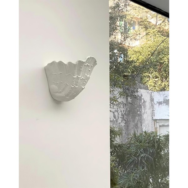 L'ispirazione per il design di questa lampada da parete in gesso Shell trae chiaramente ispirazione dalla forma naturale di una conchiglia. I bordi smerlati, le linee e le creste che ne richiamano la texture, e la forma organica a coppa, richiamano questa influenza marittima. La luce che emana dall'interno esalta ulteriormente questa immagine, suggerendo un bagliore soffuso che emana dall'interno di una conchiglia trovata sulla spiaggia. Evoca un senso di oceano, natura e bellezza organica, conferendo un tocco di estetica costiera o marina a qualsiasi spazio interno.