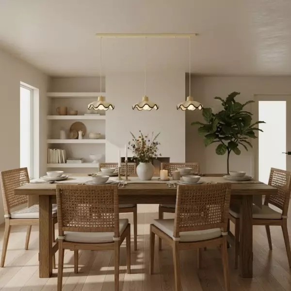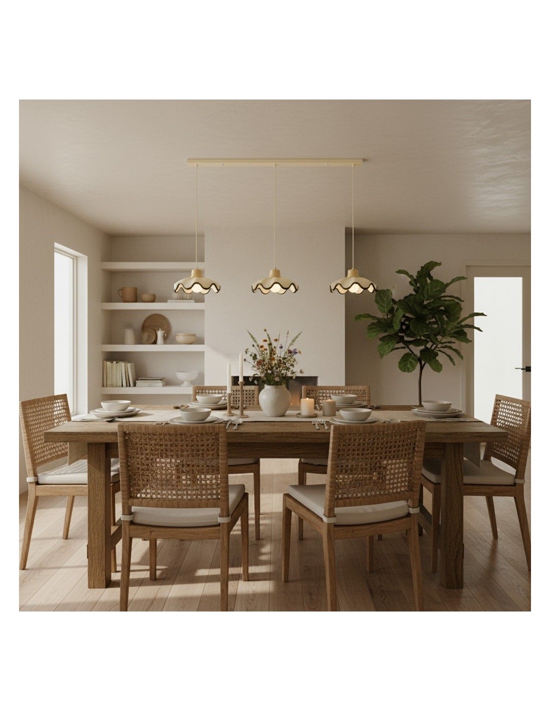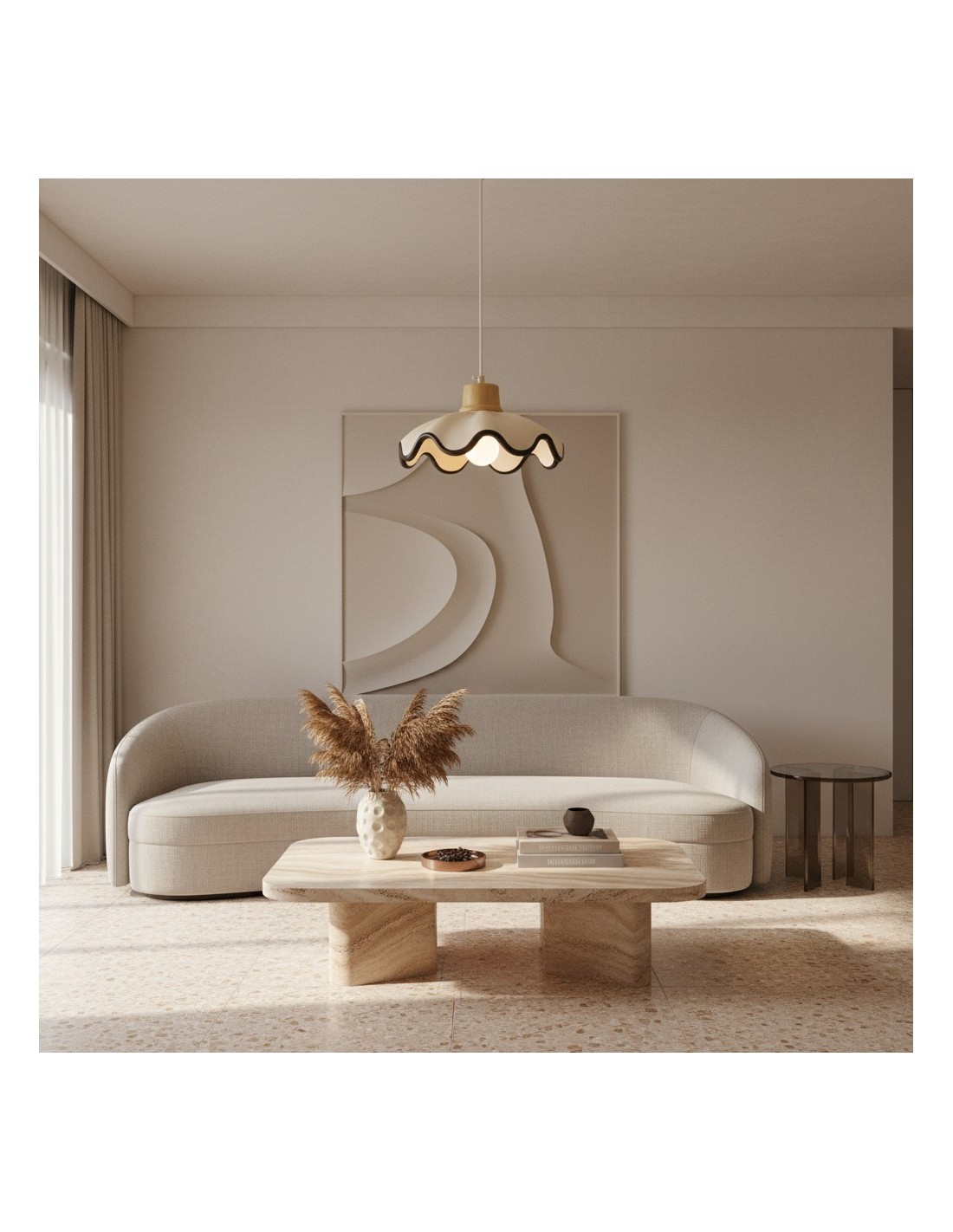 La lampada a sospensione Moliro, dal design minimalista, fonde linee pulite ed estetica contemporanea per creare un elegante punto focale in ogni ambiente. La silhouette fluida e ondulata proietta una luce morbida e diffusa, infondendo a ogni spazio calore ed eleganza moderna.
