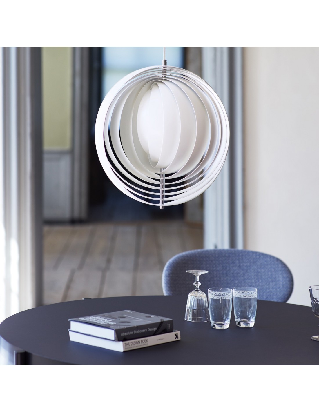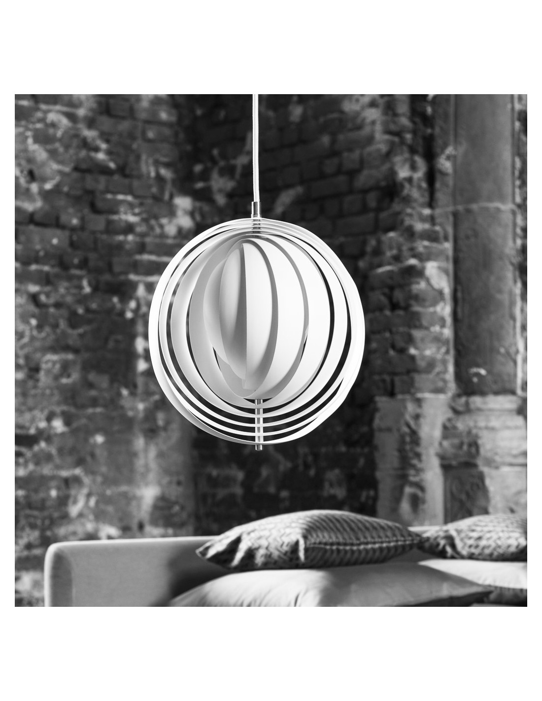 Ispirata alla forma della luna, la Moon Pendant Light è composta da fogli di acciaio annidati, che si aprono a ventaglio, riflettendo una luce morbida e confortevole. Regolando l'anello di acciaio in diverse posizioni, puoi giocare con il paralume di questa lampada e regolare diverse luci. Lampade uniche possono lasciare un'impressione profonda sui tuoi ospiti.