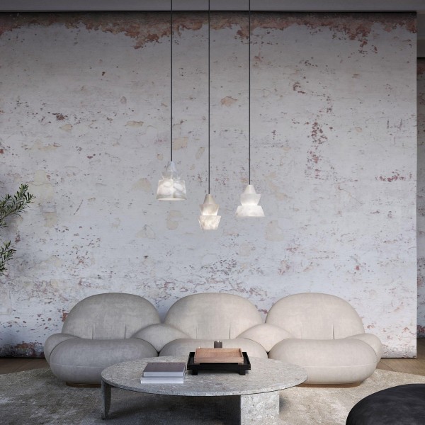 Con i suoi tre coni di volumi diversi, The light offre una geometria grafica. Una composizione armoniosa in alabastro dalle proporzioni perfette.