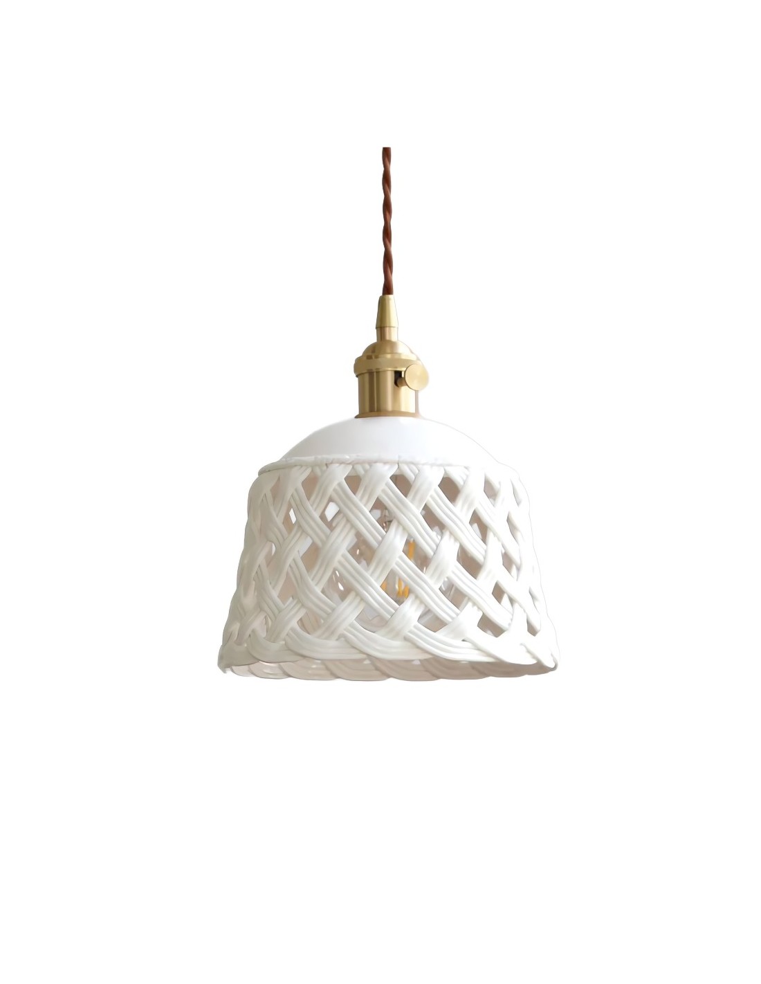 Tutte le parti in ceramica della lampada sono fatte a mano. Le ombre sono realizzate in ceramica intrecciata tecnicamente dall'autore e sono smaltate di bianco opaco. Tutti i collegamenti elettrici sono chiusi e ricoperti di smalto bianco opaco. Line twist - trama di seta marrone. Il design del paralume è una favolosa smaltatura bianca, con una trama intagliata a mano, che sembra incredibile. La lampada in ceramica traforata è molto popolare con il suo design dall'aspetto speciale. La luce che emette è calda e confortevole. Ideale per il soggiorno. Puoi scegliere il prodotto giusto in base alle tue esigenze.