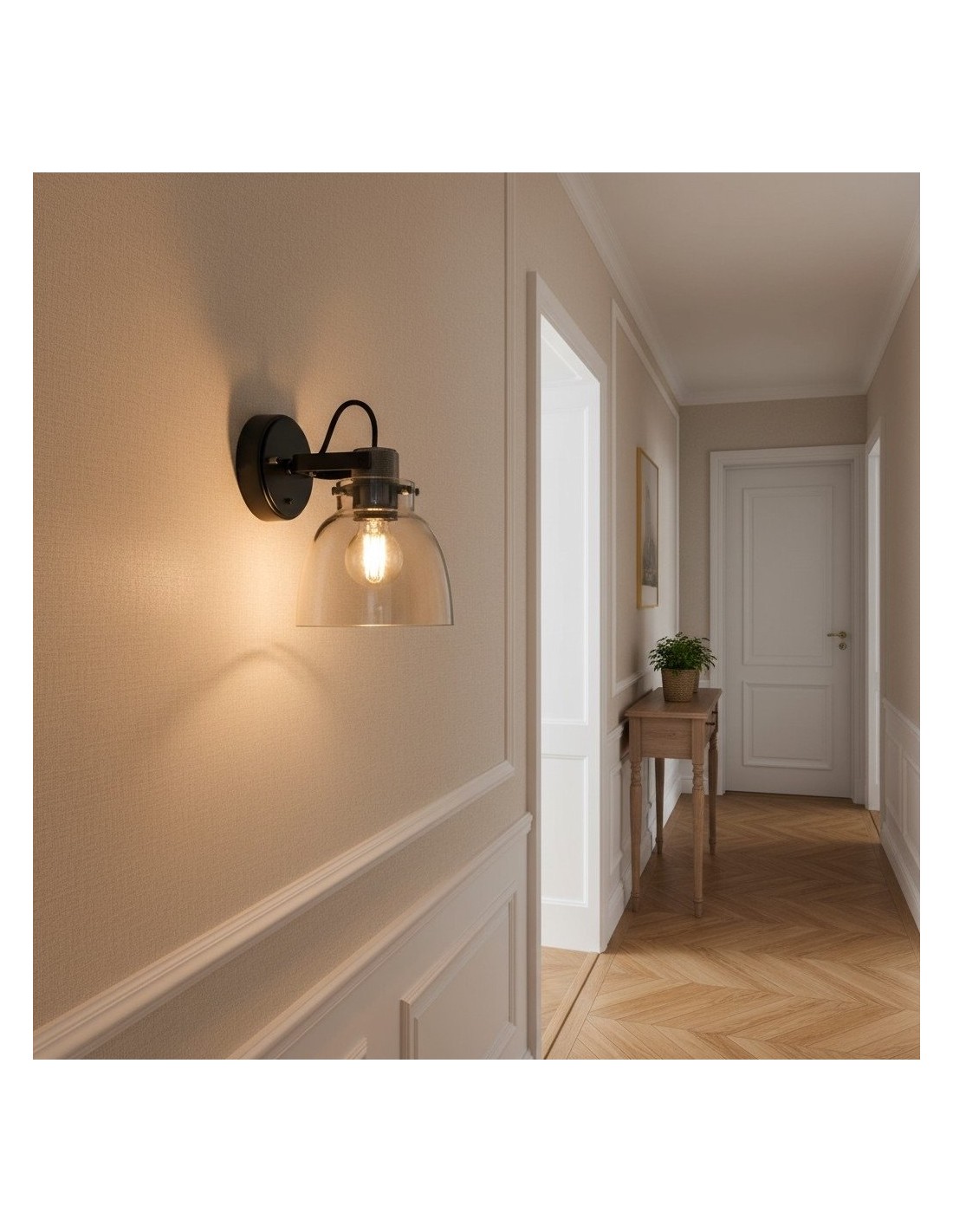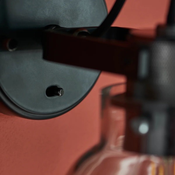 Questa lampada da parete di ispirazione industriale combina dettagli in metallo pulito con un paralume in vetro trasparente, per un equilibrio perfetto tra struttura e calore. La sua testa orientabile consente un'illuminazione flessibile per soggiorni, camere da letto e spazi contemporanei che ricercano funzionalità e stile.