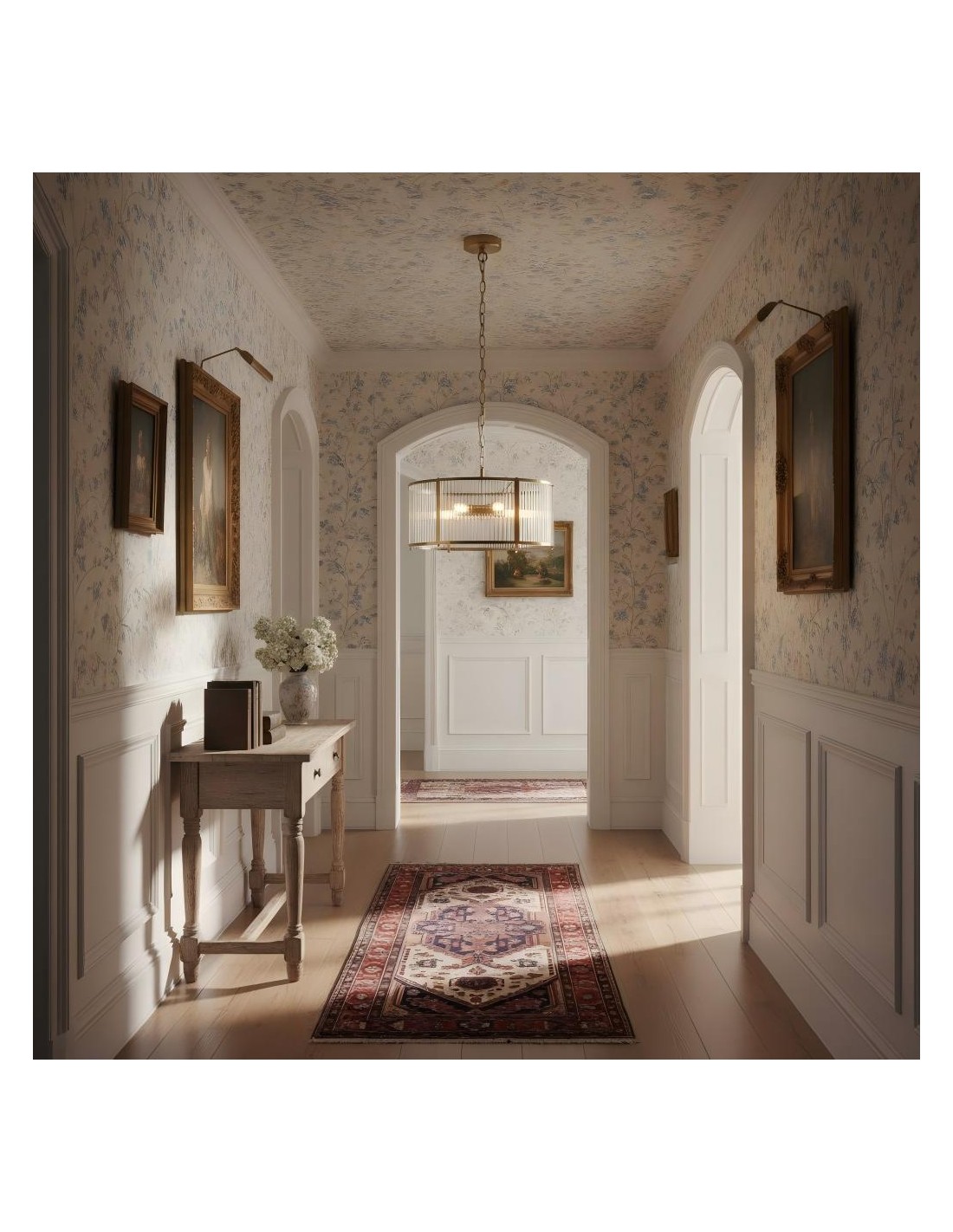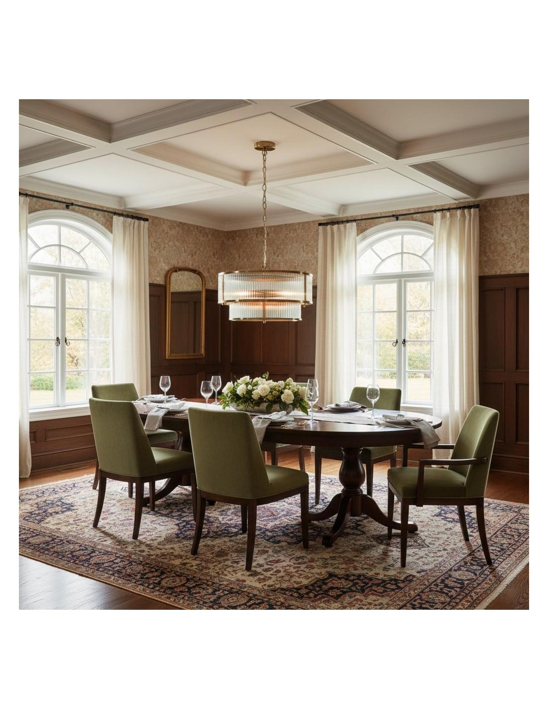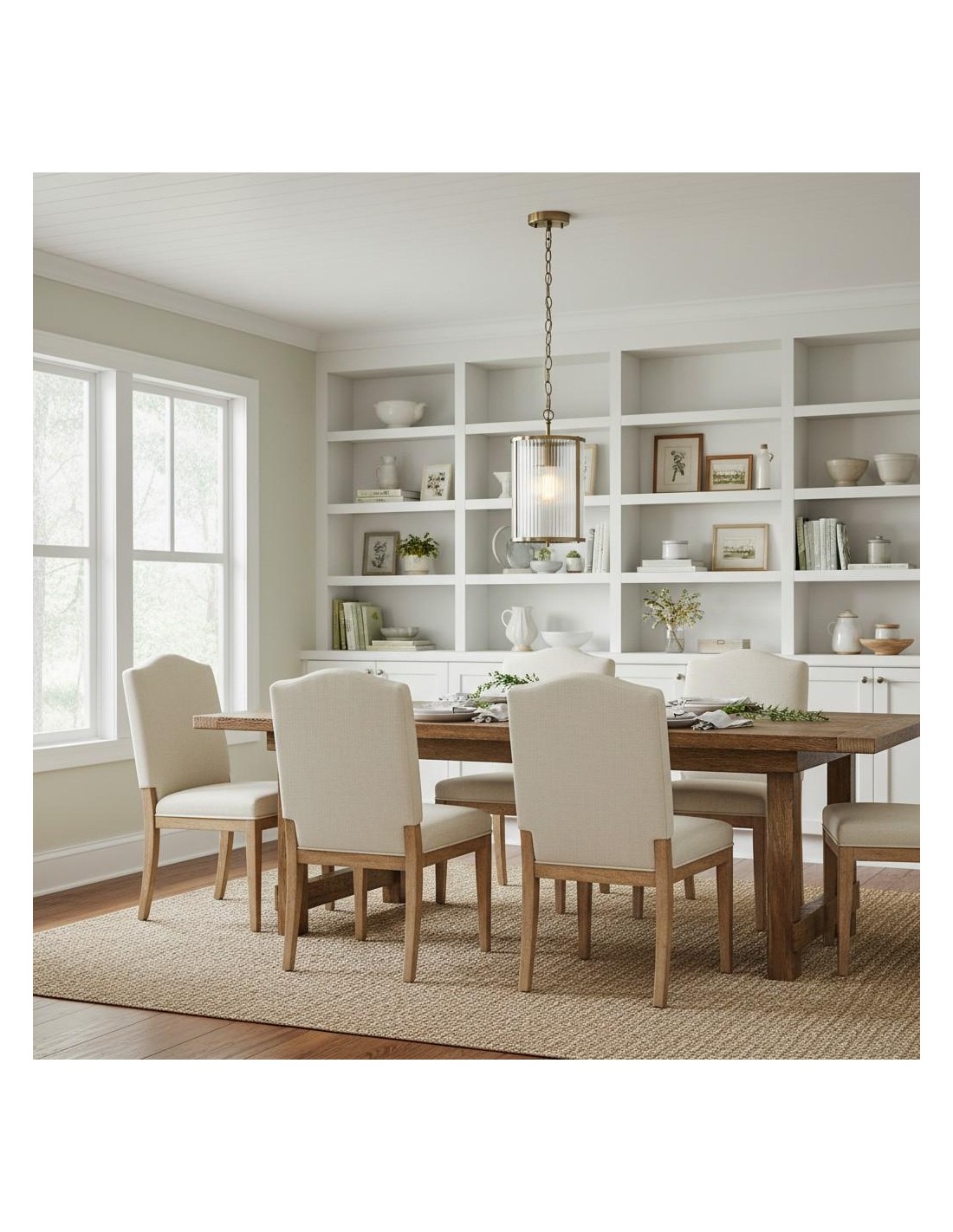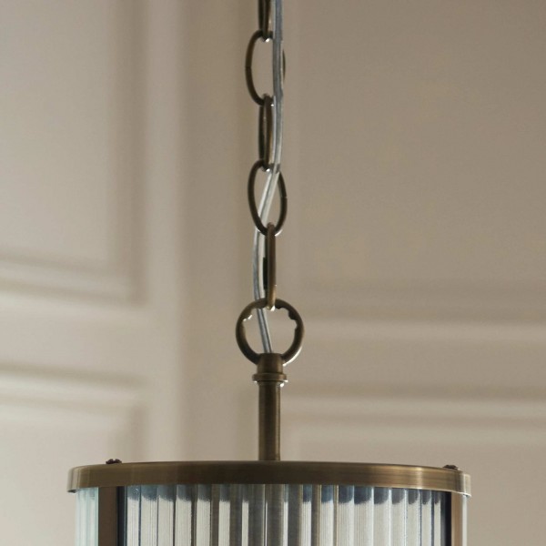 La lampada a sospensione abbina paralumi in vetro scanalato e testurizzato a un elegante rosone in metallo per creare una luce morbida e filtrata. Disponibile in configurazioni singole, a 3, 4 o 5 luci, ogni apparecchio è regolabile in altezza. Senza tempo ma contemporaneo, si adatta a isole cucina, sale da pranzo, bar e spazi dedicati all'ospitalità.