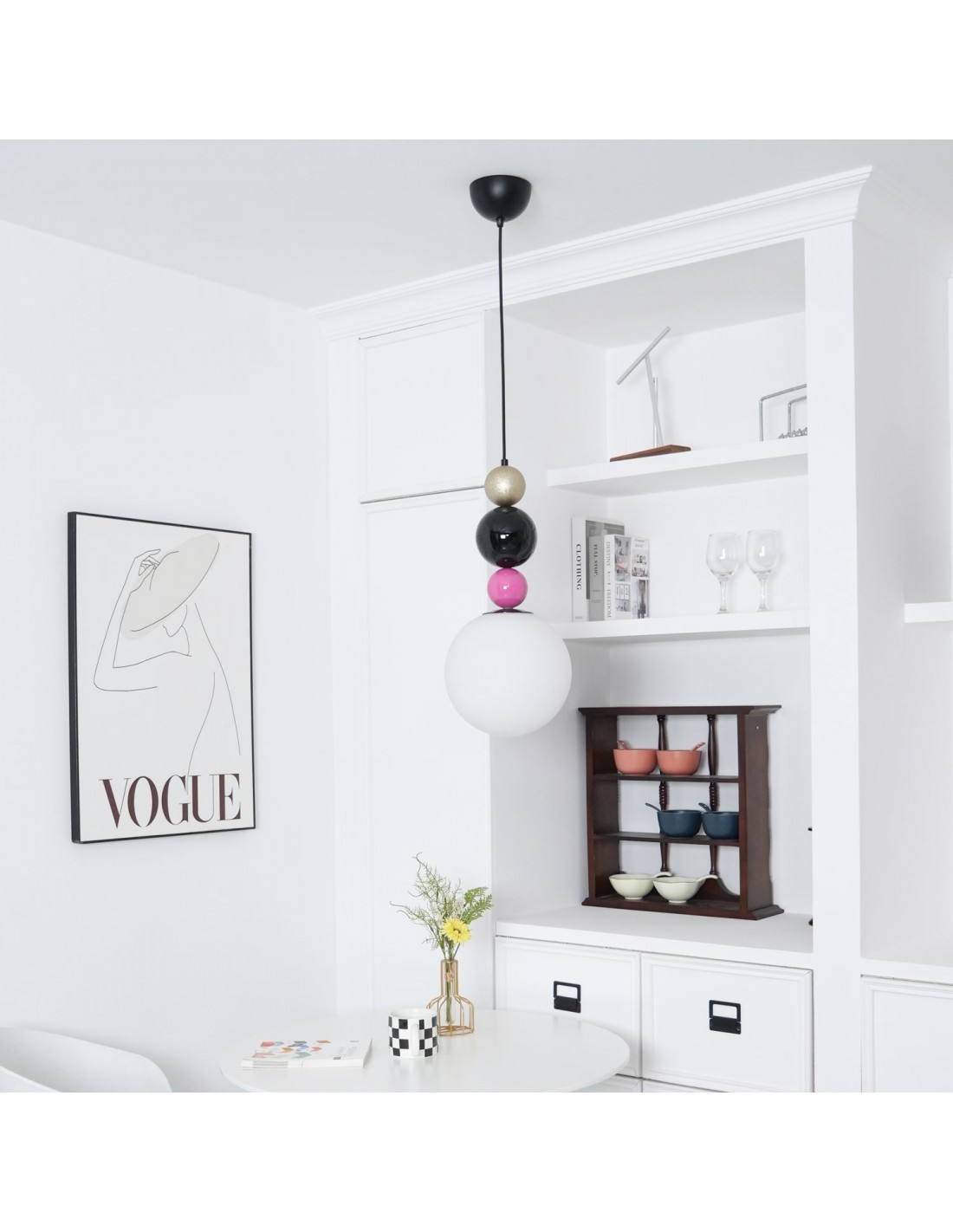 Accogli l'esclusiva ed elegante lampada a sospensione Round Balls Stacking Pink nel tuo spazio interno. Realizzata con materiali in metallo e vetro di alta qualità, il suo design accattivante offre un'illuminazione brillante. Aggiungi vibrazioni moderne ed eleganti, garantendo al contempo durata e stabilità.