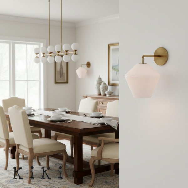 Lampada da parete geometrica scultorea in vetro di latte Merin KL1364