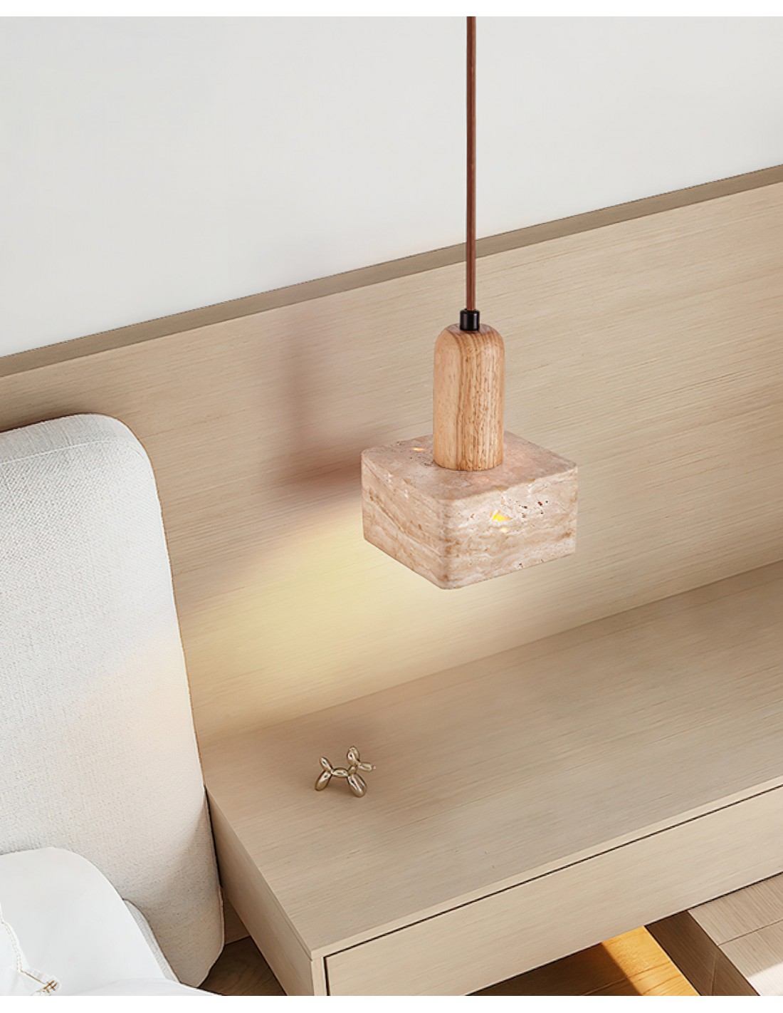 La lampada a sospensione dove il fascino rustico incontra il design contemporaneo. Questa lampada a sospensione presenta un blocco rettangolare sorprendentemente minimalista di pietra di travertino, sospeso sotto un elegante cilindro di legno. Il calore del legno completa la bellezza fredda e grezza della pietra, creando un equilibrato fascino visivo. Ideale per coloro che apprezzano l'arte della semplicità e l'atmosfera serena che porta in qualsiasi spazio.
